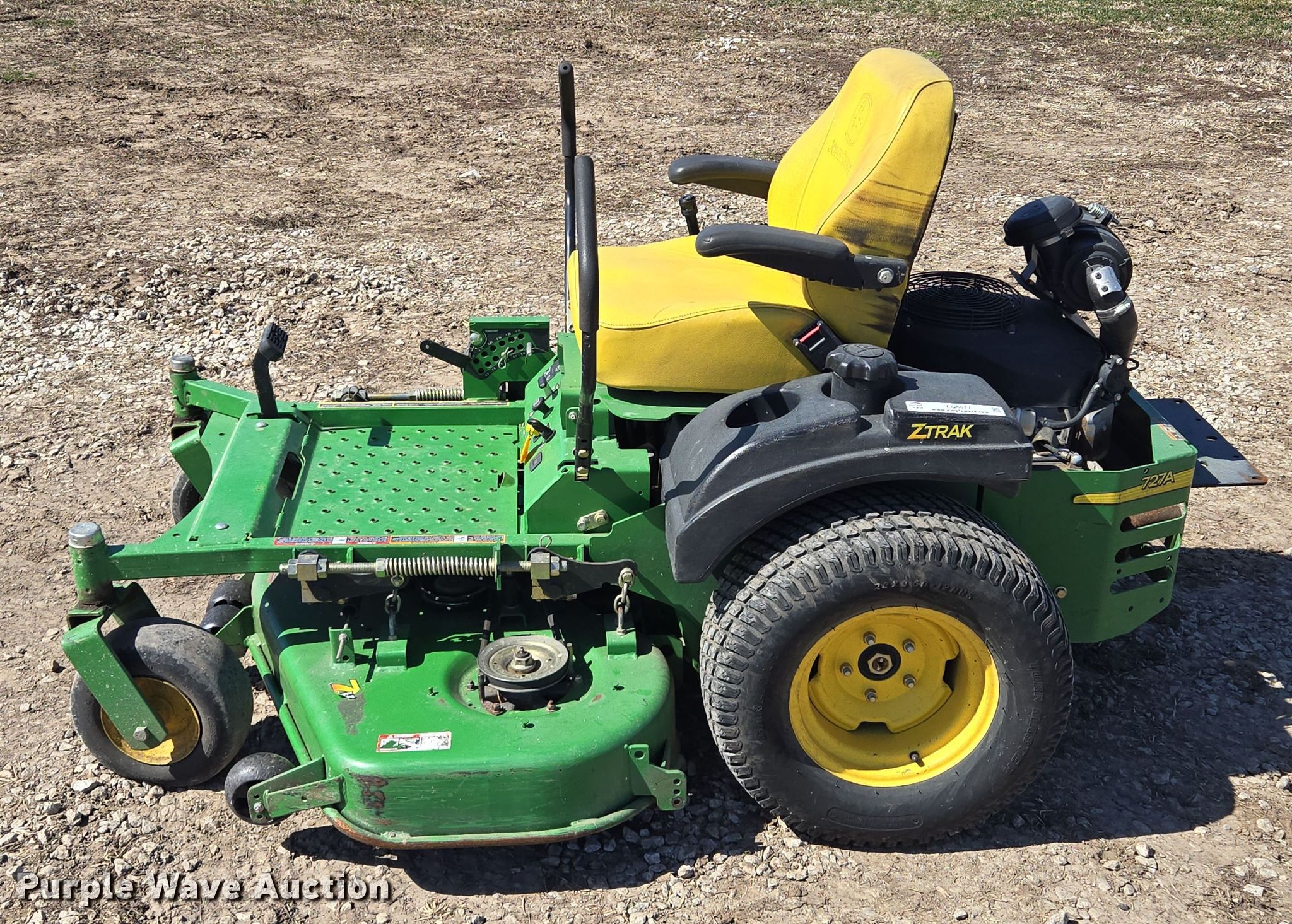 Purple Wave is selling a used Lawn Mower in Missouri. This item is a John Deere ZTrak 727A ZTR lawn mower with the following: Hours: 1,023 on meter, Cutting width: 54", Serial: TC727AX020650