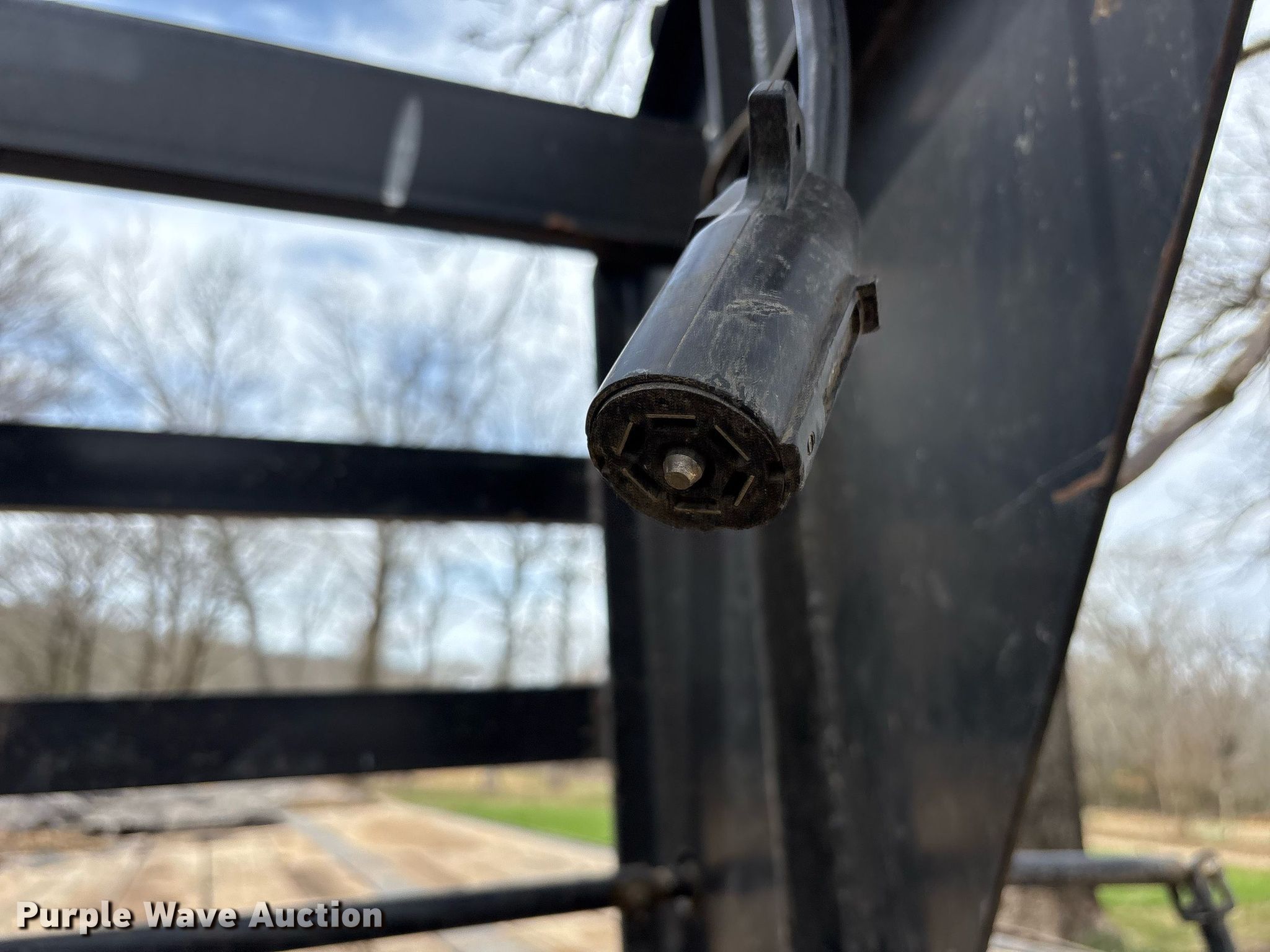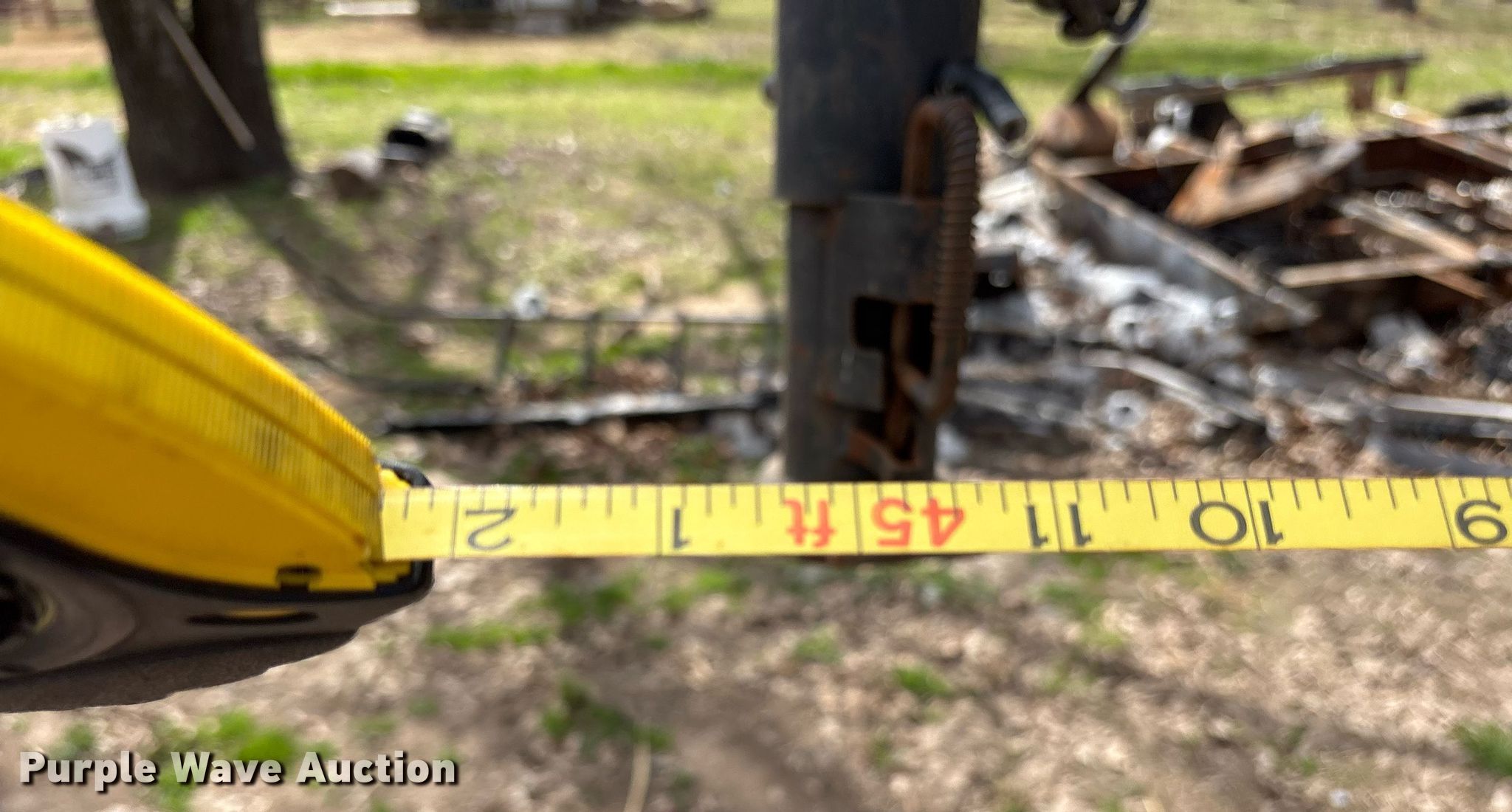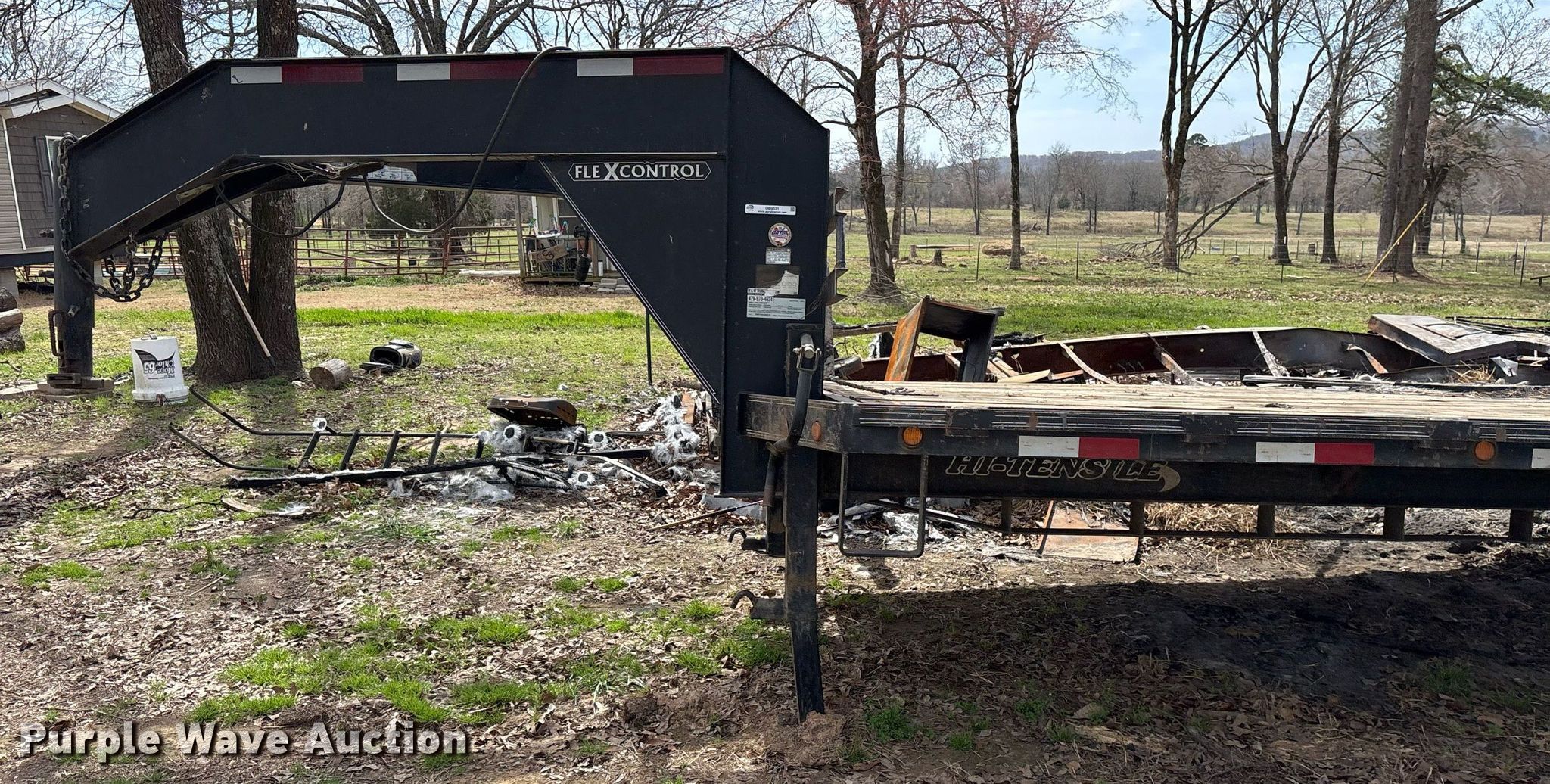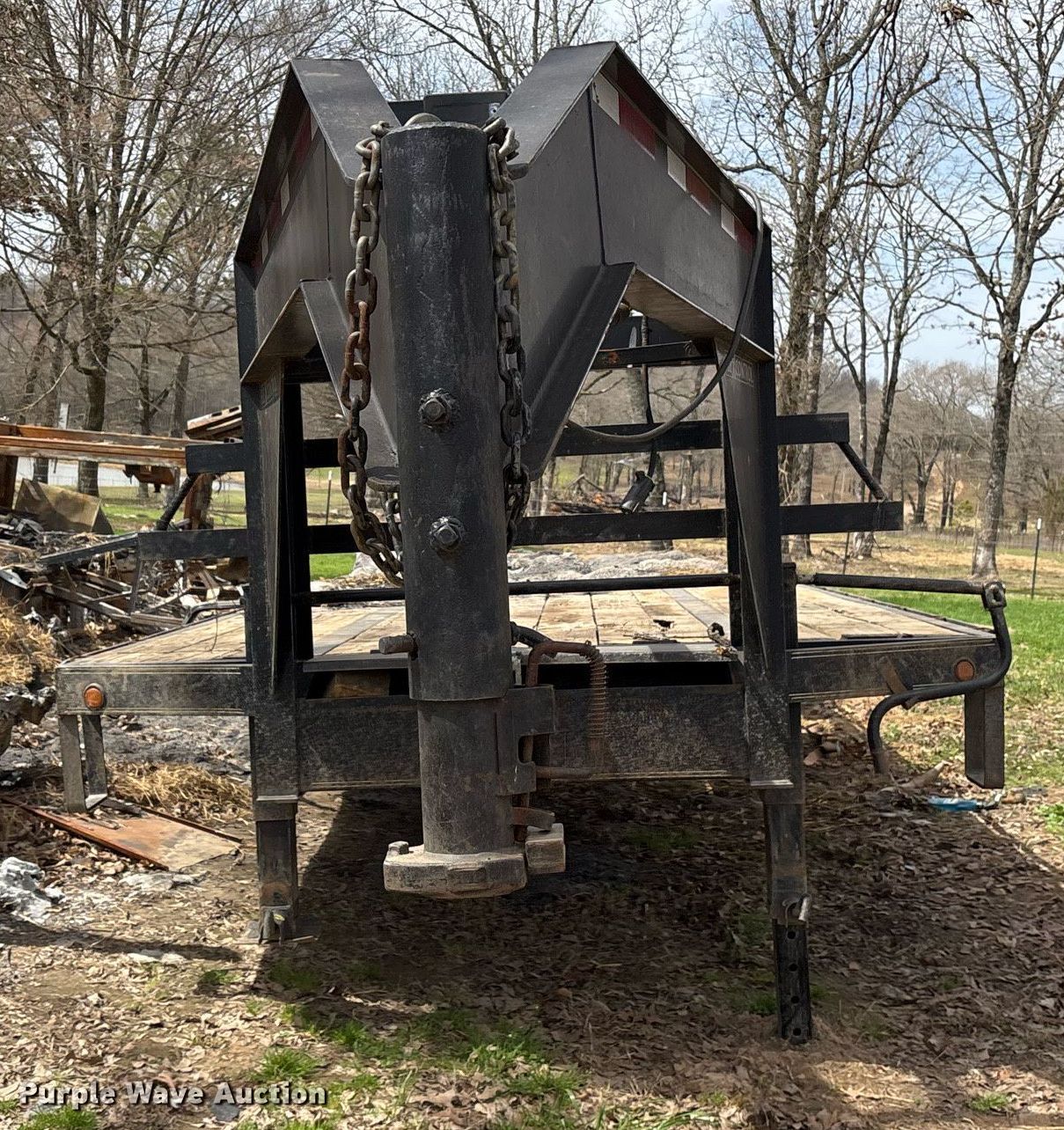 2018 Elite Cottage Builders Dovetail-36 equipment trailer. VIN: 1E9BF3629JS230174, Insurance salvage unit claim #: 5-801276. Dimensions Overall: 45' L x 8' 5" W, Deck: 31' L x 8' W, Deck height: 3', Tail length: 5', Ramps: Manual Length: 4' 6". Features Deck type: Wood. Chassis Hitch: Gooseneck, Landing gear: Dual, Suspension: Spring, Brakes: Electric, Axles: Tandem, Spread, GVWR: 24,000 lbs, GAWR: 12,000 lbs. Tires Steel wheels, Size: LT235/85R16. Notes Fire damage, Tires missing. Oklahoma title. Title distribution may be delayed up to 14 days from verification of funds. Oklahoma Farm Bureau. Muldrow, OK 74948