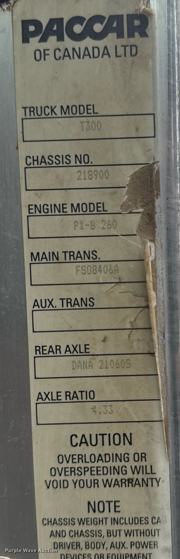 2008 Kenworth T300 winch truck. Miles: 108,117 on odometer, Hours: 6,389 on meter, VIN: 2NKMHN6X58M218900. Engine Paccar PX-8, Serial: 46738896, Displacement: 8.3L, Cylinders: 6, Fuel type: Diesel, HP: 260. Transmission Eaton Fuller, Manual, Speed: 6. Chassis Axles: Single, Suspension: Spring, Brakes: Air, Chelsea PTO, Wet kit, GVWR: 26,000 lbs. Interior AC, Heat, Heated mirrors, Power windows, Power locks, Cruise control. Features Flatbed Leland, 15' L x 95" W, Winch Tulsa, Gin poles 13' L, Rolling tailboard, Gooseneck. Tires Front: 295/75R22.5, Rear: 275/80R22.5. Notes Possible transmission issues. Oklahoma title. Title distribution may be delayed up to 14 days from verification of funds. Merriman Trucking. Cleveland, OK 74020