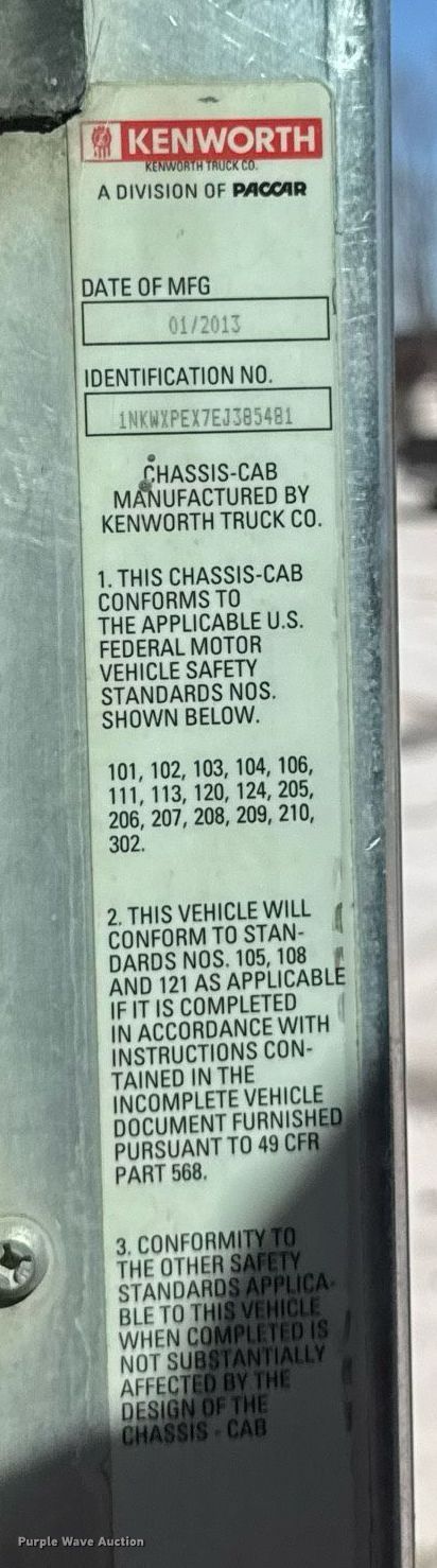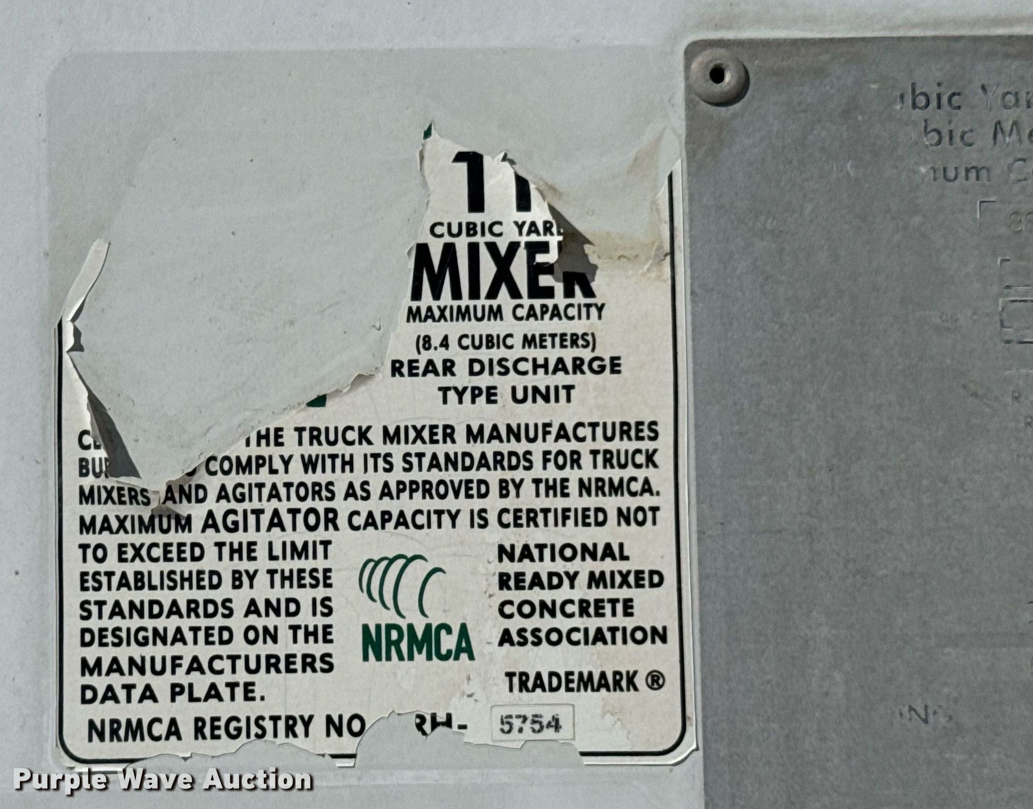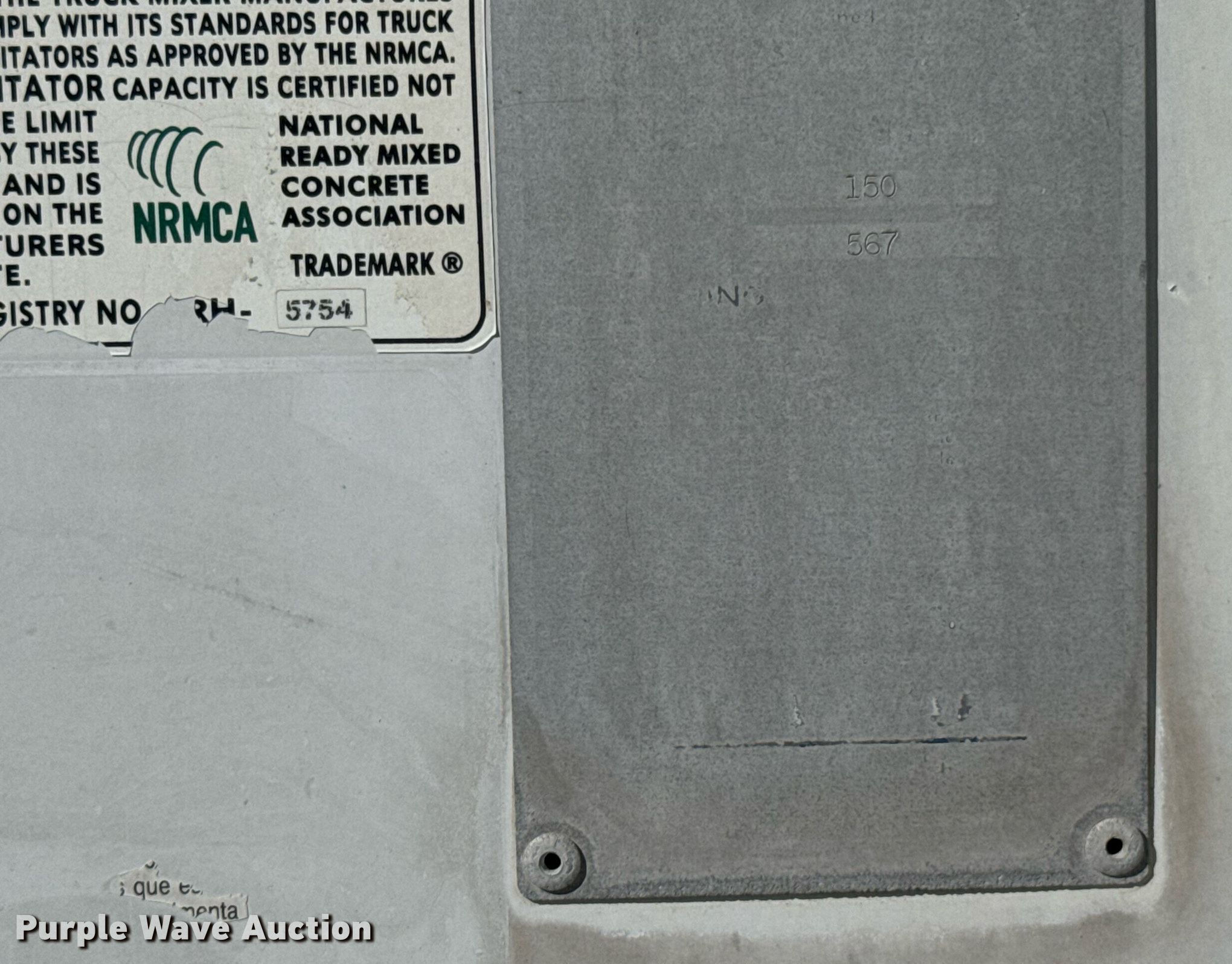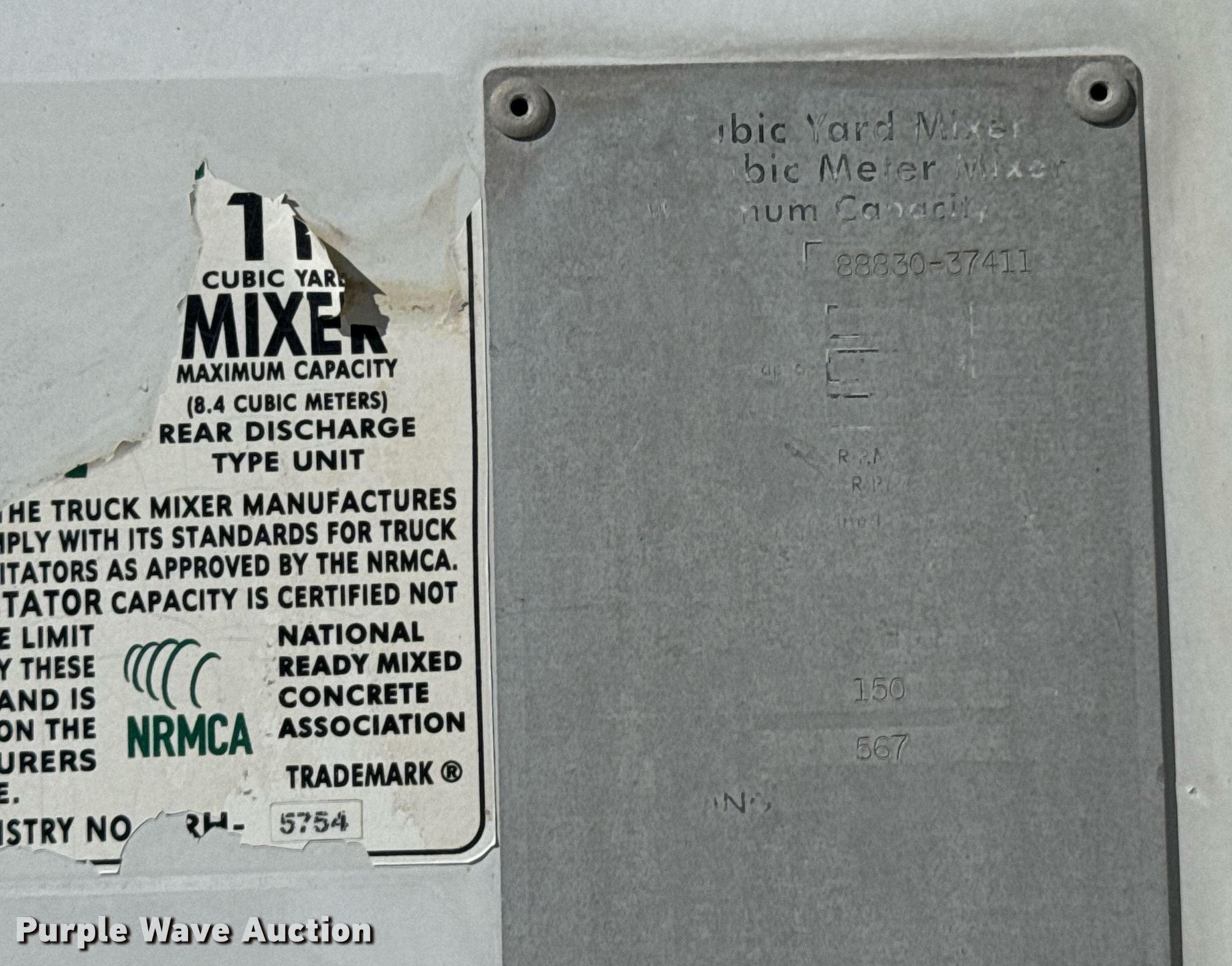 2014 Kenworth W900 ready mix truck. Miles: 143,617 on odometer, Hours: 2,236 on meter, VIN: 1NKWXPEX7EJ385481. Engine Paccar MX-13, Displacement: 12.9L, Cylinders: 6, Fuel type: Diesel, Engine brake. Transmission Eaton Fuller, Manual, Speed: 11. Chassis Axles: 4, Pusher axle, Tag axle, Gear ratio: 3.91, Differential lock: Full, Suspension: Spring over walking beam, Brakes: Air, PTO, GVWR: 77,020 lbs FAWR: 20,000 lbs, IAWR: 11,020 lbs, RAWR: 23,000 lbs. Interior AC, Heat, Heated mirrors, Power locks, Cruise control, Auxiliary controls. Features Mixer TMMB, Serial: 88830-37411, Capacity: 11 cu.yd., Discharge: Rear, In-cab controls, Rear drum controls, Water tank capacity: 150 gallons, Chute Extensions: 3, Chute type: Aluminum.. Tires Front: 425/65R22.5, Rear: 11R22.5, Lift axle: 225/70R22.5. Notes Dash warning indicator: Check engine. Missouri title. Title distribution may be delayed up to 14 days from verification of funds. The Monarch Cement Company (Joplin Concrete Company). Joplin, MO 64801