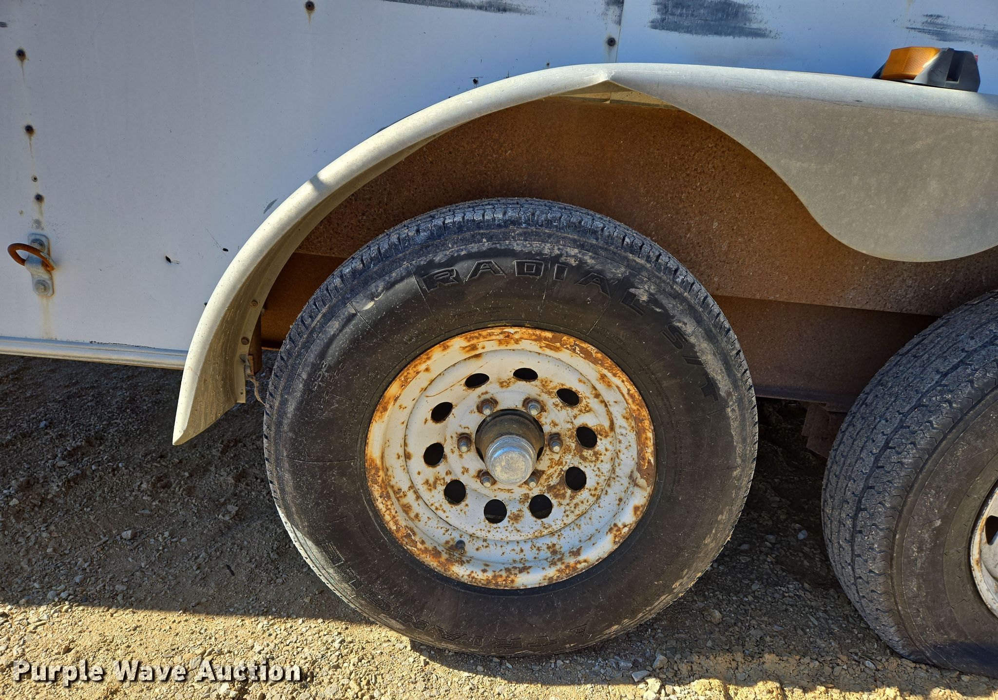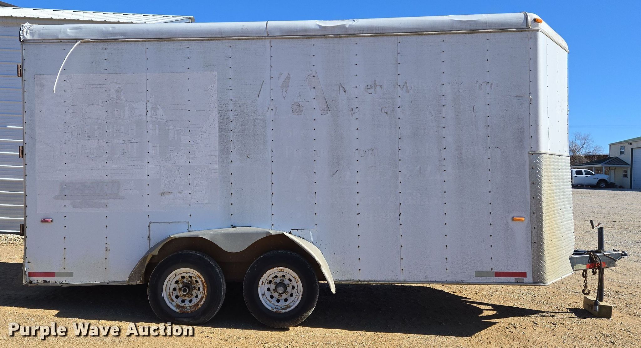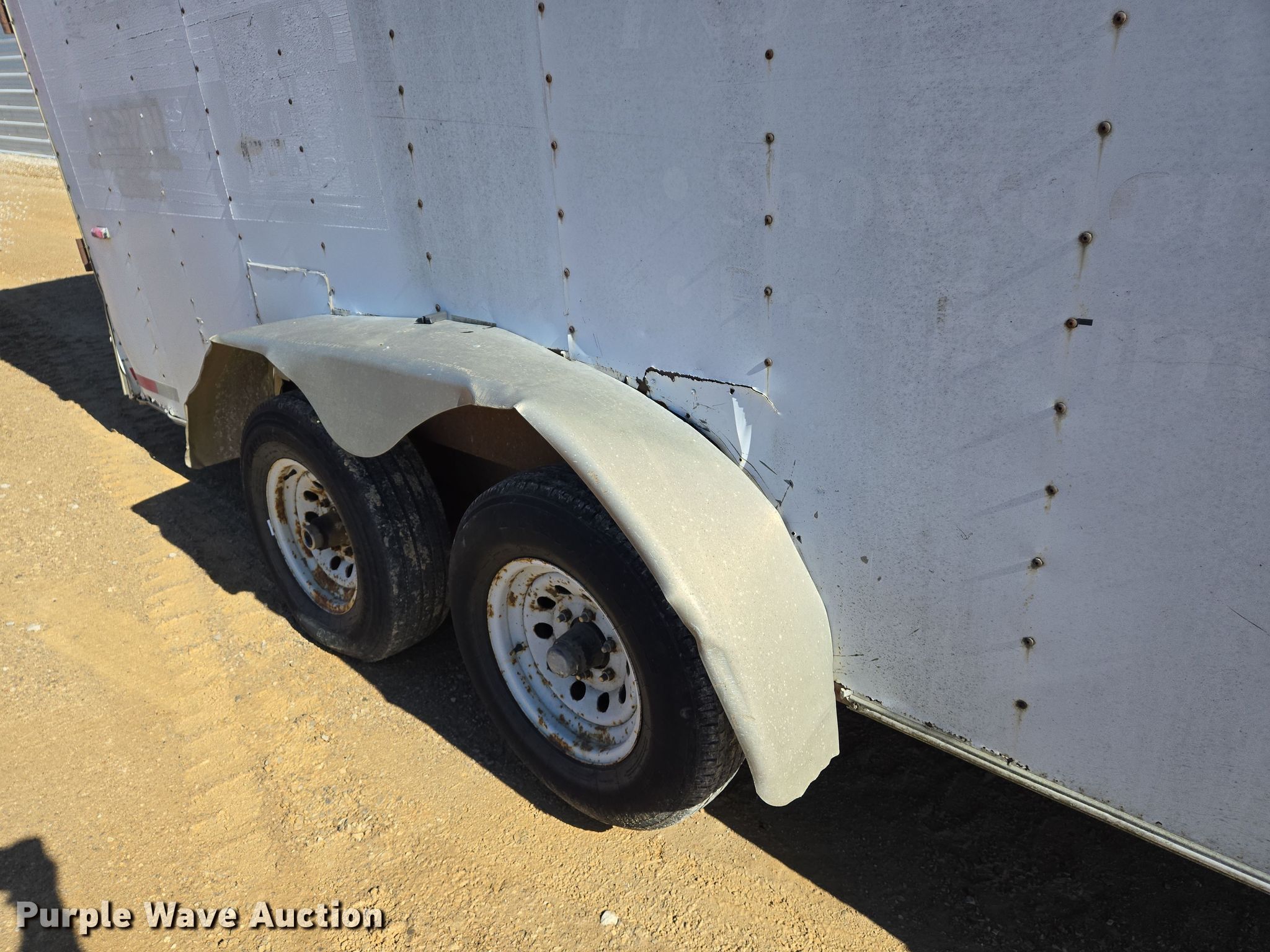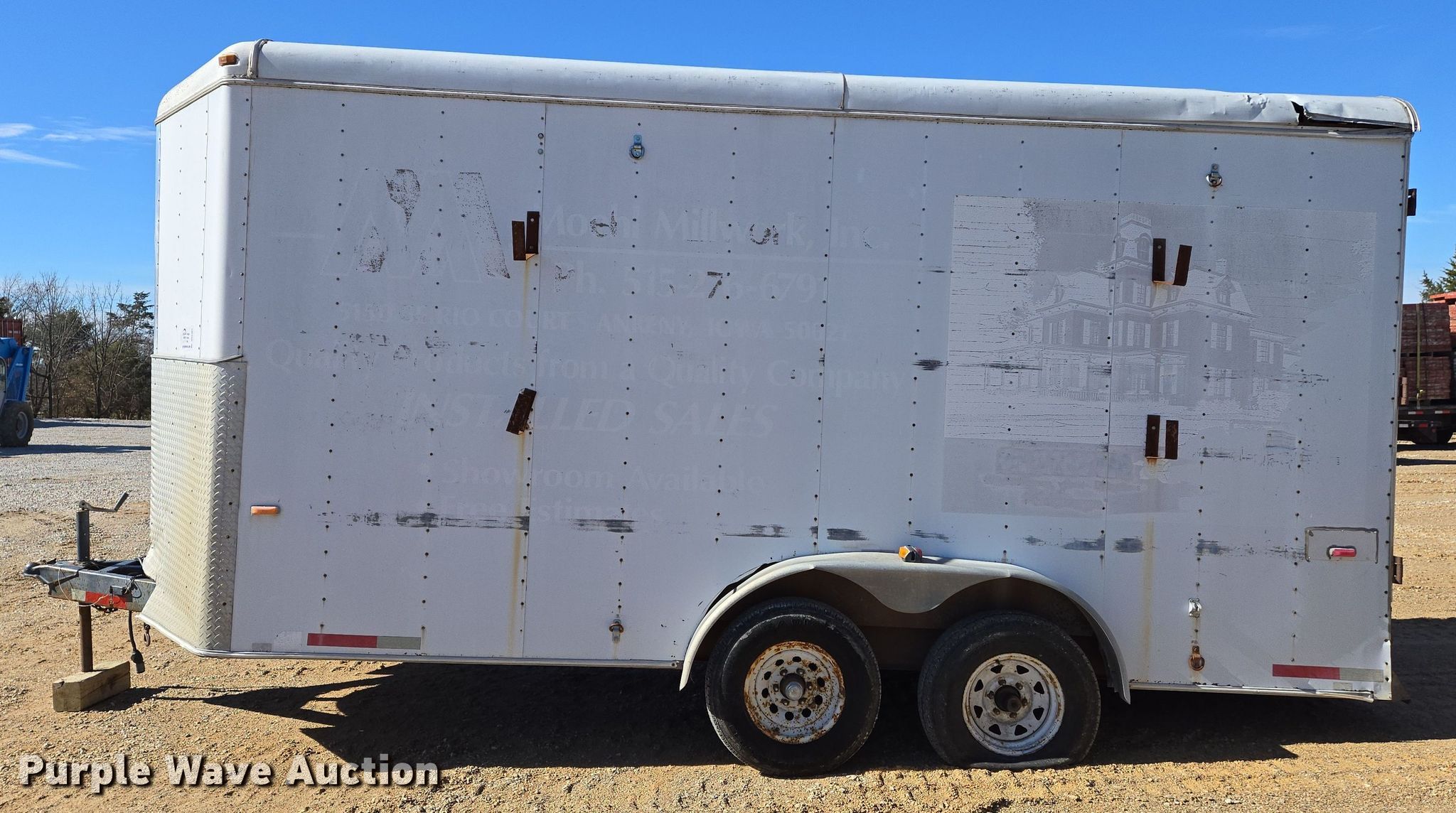 2002 Interstate enclosed cargo trailer. VIN: 1UK500G2421041172. Dimensions Overall: 21' x 8' 6" W, Body: 18' 6" L x 6' 8" W. Features Deck type: Wood, E-track rail system. Chassis Ball hitch: 2 5/16", Landing gear: Single, Suspension: Spring, Brakes: Electric, Axles: Tandem. Tires Steel wheels, Size: 225/75R15. Missouri title. Title distribution may be delayed up to 14 days from verification of funds. Geringer Construction. Perryville, MO 63775