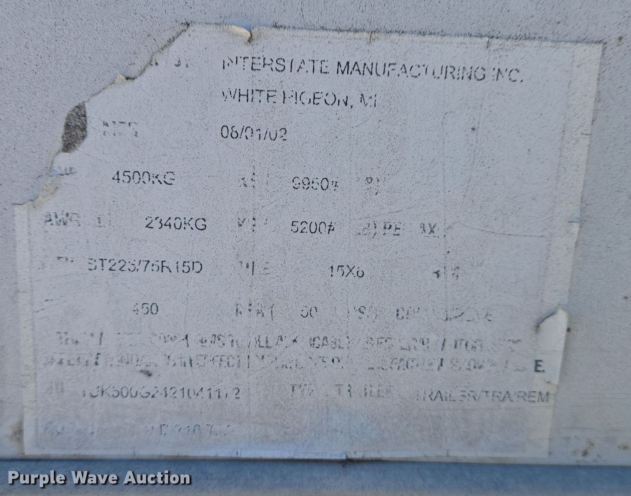 Purple Wave is selling a used Enclosed Cargo Trailer in Missouri. This item is a 2002 Interstate enclosed cargo trailer with the following: VIN: 1UK500G2421041172