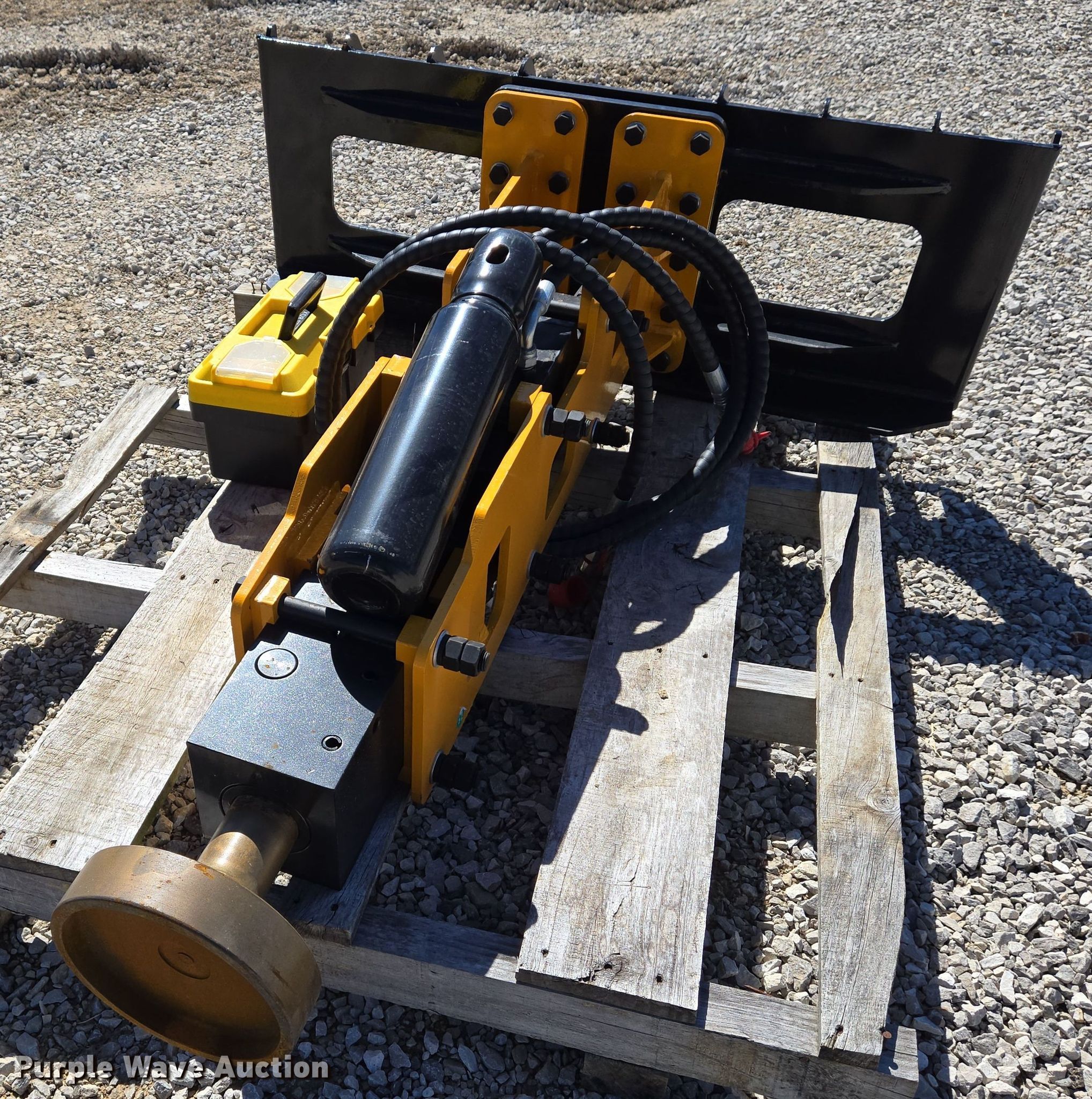 Purple Wave is selling a used Skid Steer Attach. in Missouri. This item is a Skid steer post driver with the following: Diameter: 8", Nitrogen bottle