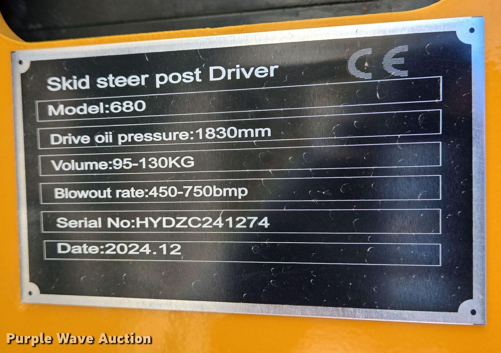 Purple Wave is selling a used Skid Steer Attach. in Missouri. This item is a 2024 GIYI 680 Post Driver with the following: Serial: NYDZC241274, Nitrogen bottle, Unused