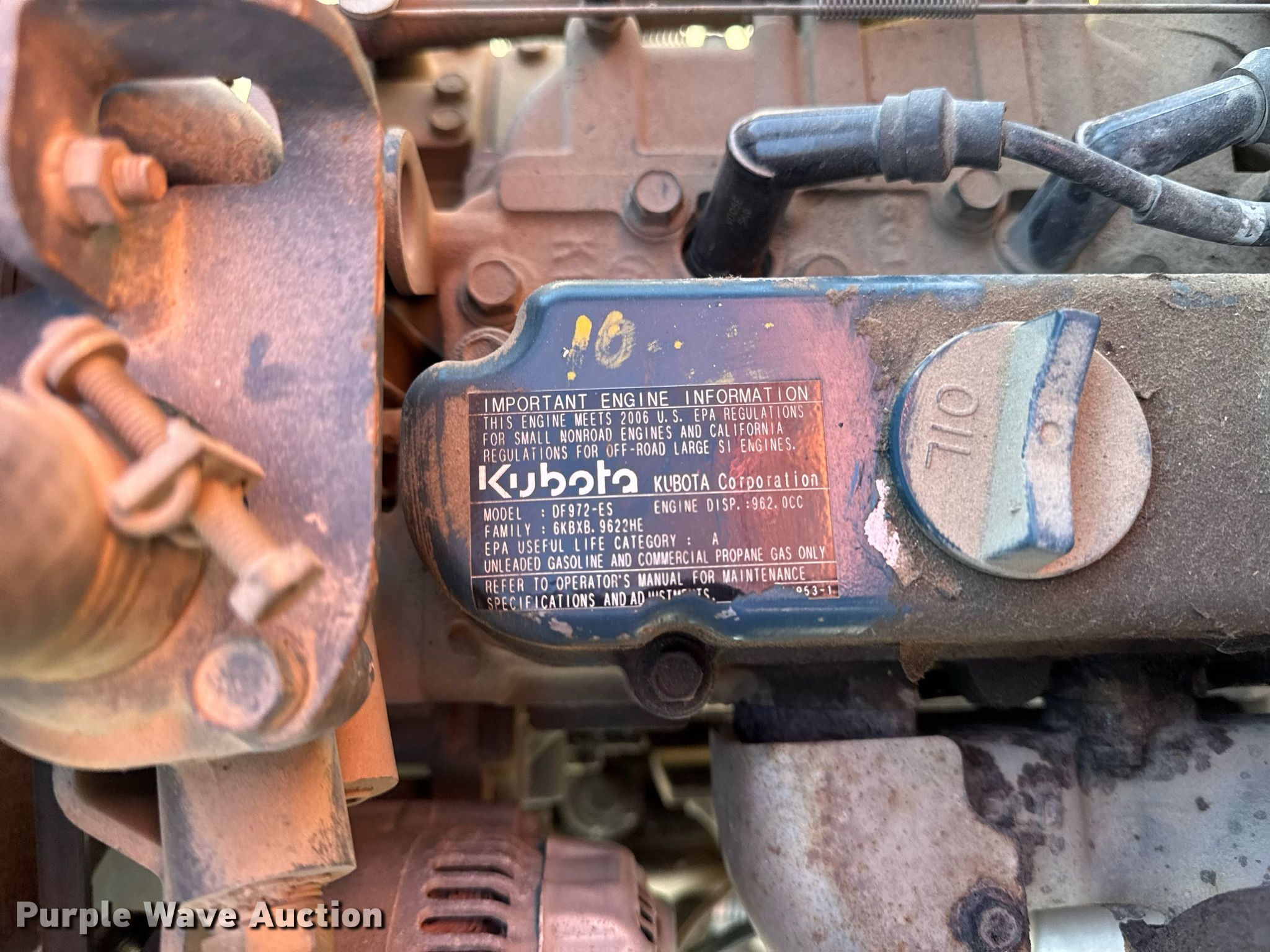 2006 Skyjack SJ7127 scissor lift. Hours: 3,304 on meter, Serial: 342699. Engine Kubota DF972-ES, Displacement: 962 cc, Cylinders: 3, Fuel type: Gas. Chassis Four wheel drive. Features Rough terrain, Maximum lift capacity: 1,500 lbs, Maximum lift height: 27', Hydraulic leveling, Platform: 118" L x 65" W, AC power outlet, Controls: Platform, Platform extensions: Manual, Safety alarm. Tires Tire size: 10-16.5. Davenport, IA 52804
