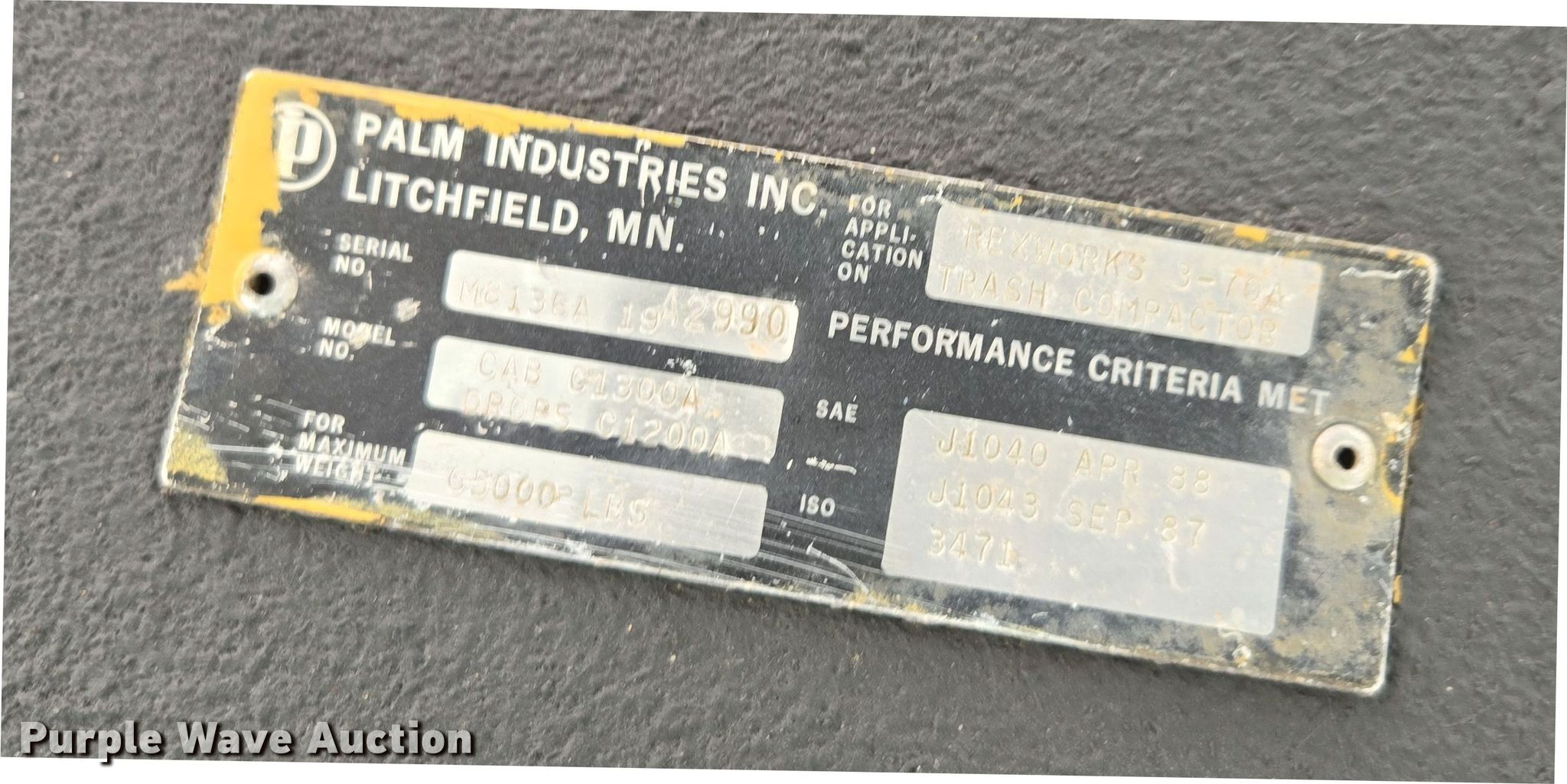 Purple Wave is selling a used Soil or Landfill Compactor in Colorado. This item is a Rex 3-35 soil compactor with the following: Hours: 6,190 on meter, Serial: HE-1373