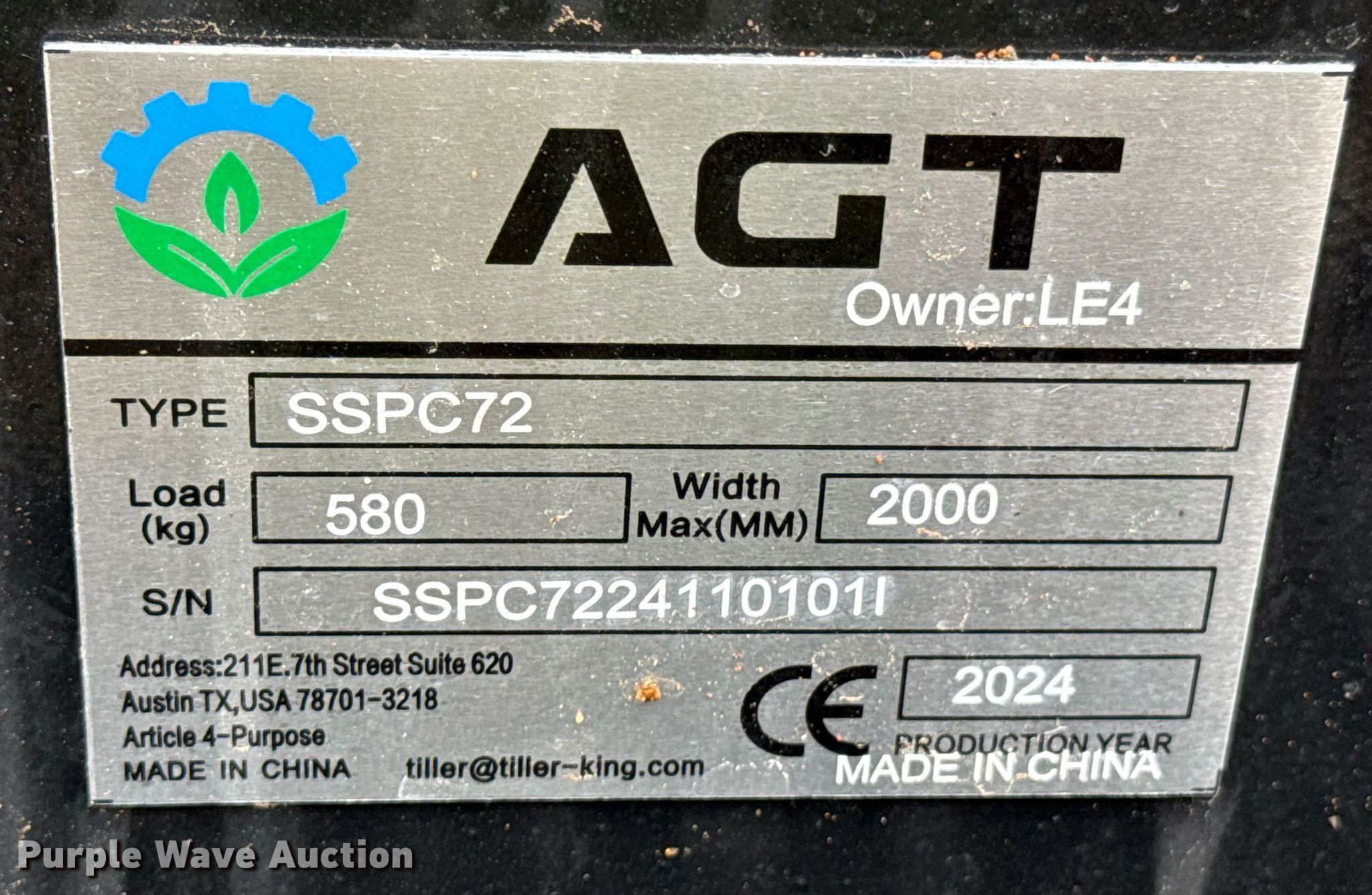 Purple Wave is selling a used Skid Steer Attach. in Kansas. This item is a 2024 AGT SSPC72 skid steer plate compactor with the following: Serial: SSPC7224110101I, Width: 72", Length: 26", Unused