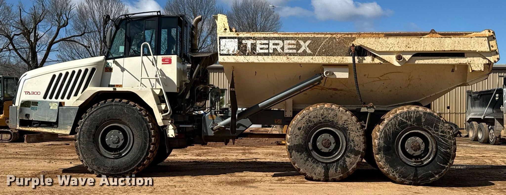 2016 Terex TA300 articulated haul truck. Hours: 177 on meter Actual hours unknown, Serial: A11861116. Engine Scania, Cylinders: 6, Fuel type: Diesel. Transmission Automatic. Interior AC, Heat, Backup camera. Features Dump bed Terex, Capacity: 30 tons. Tires Size: 23.5R25. S&K Dirtworks. Rogers, AR 72758