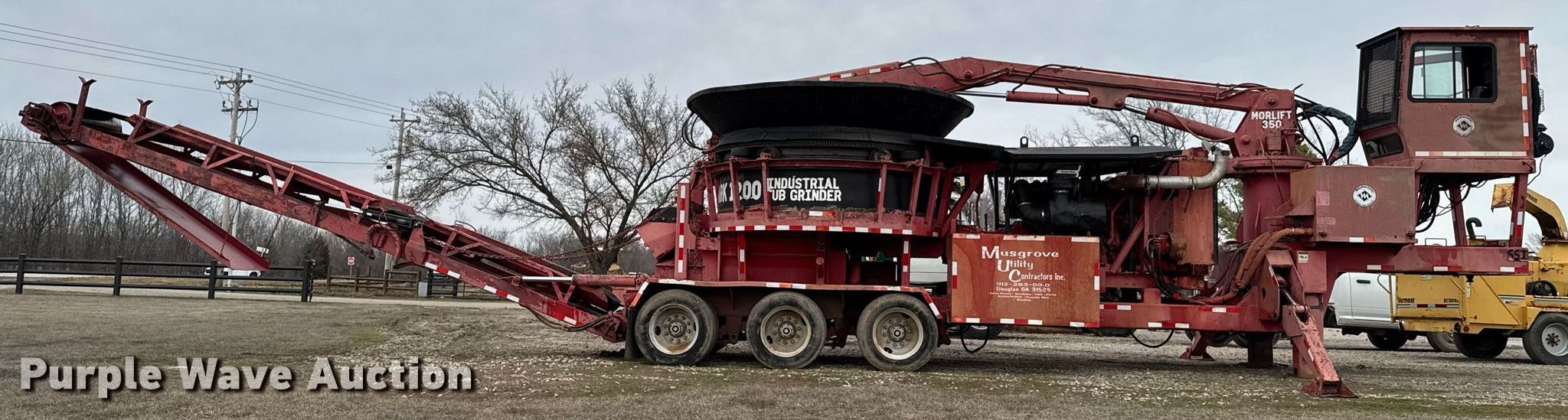 1997 Morbark 1200 tub grinder. Hours: 263 on meter, Serial: 565-441, 35� L x 102" W. Engine Cylinders: 6, Fuel type: Diesel. Features Conveyor 25' L x 36" W, Magnetic roller, Morlift 350 tree grabber Controls: Upper cab, Ground, Hydraulic stabilizers. Chassis Suspension: Walking beam, Brakes: Air, Axles: Triple. Tires Front: 255/70R22.5. This is worksite support equipment and will not come with a title. Transfer of ownership documentation will be a bill of sale. Weaver Excavating. Claremore, OK 74017