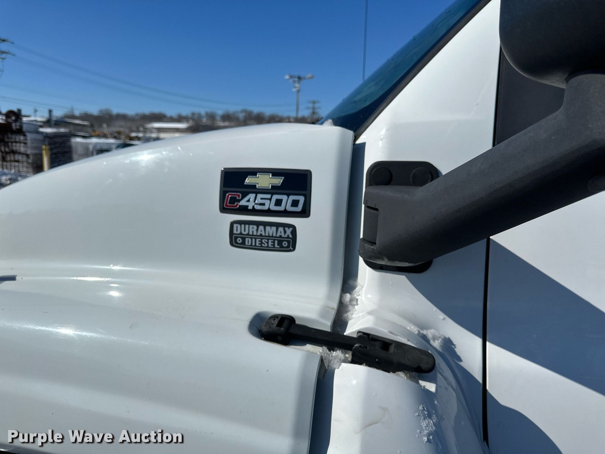 2003 Chevrolet C4500 dump truck. Miles: 105,826 on odometer, Hours: 64,662 on meter, VIN: 1GBE4F1183F500059. Engine Duramax, Displacement: 6.6L, Cylinders: 8, Fuel type: Diesel. Transmission Automatic. Chassis Axles: Single, Suspension: Air Dump valves, Brakes: Hydraulic, PTO, GVWR: 16,000 lbs. Interior AC, Heat, Heated mirrors, Power windows, Cruise control, Brake controller. Features Dump bed Henderson 11x18xQRS, 11' L x 8' W, Side height: 22", Side board height: 9.5", Bed type: Steel, Ram: Single, End gate: Manual. Tires Size: 225/70R22.5. Minnesota title. Title distribution may be delayed up to 14 days from verification of funds. Curbmasters. South Saint Paul, MN 55075