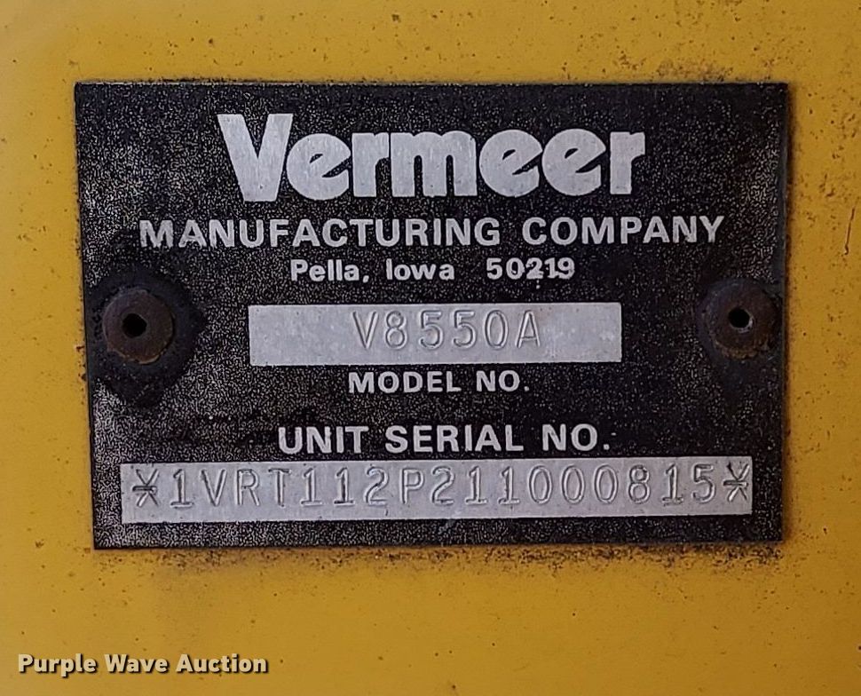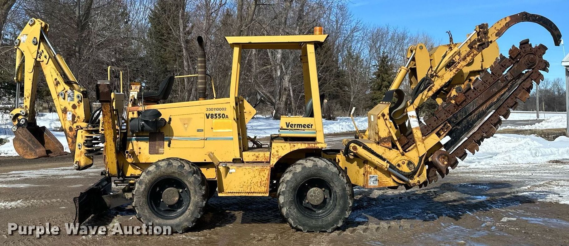 Purple Wave is selling a used Trencher or Rock Saw in Minnesota. This item is a 2001 Vermeer V8550A trencher with the following: Hours: 740 on meter, Serial: 1VRT112P211000815