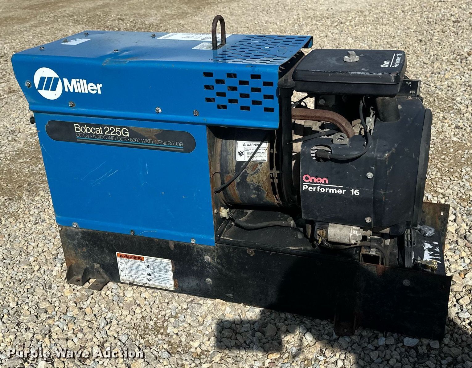 Miller Bobcat 225G welder/generator. Hours: 2,745 on meter. Engine Onan Performer 16, Cylinders: 2, Fuel type: Gas, HP: 16. Features Welder Capabilities: CC, CV, DC, AC, Fuel tank, Generator Watts: 8,000, Phase: Single, 240V outlets: 1, 120V outlets: 4. Mulvihill Irrigation. Farmington, MN 55024