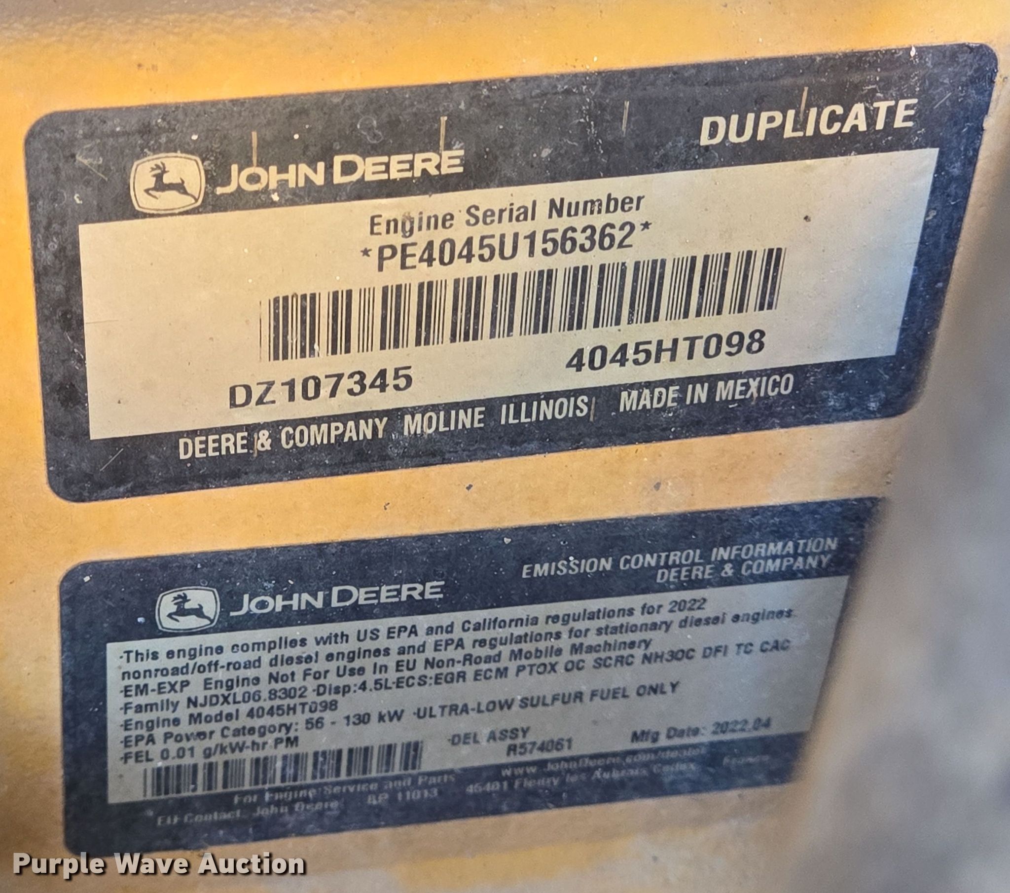 2022 John Deere 450K dozer. Hours: 1,703 on meter, Serial: 1T0450KXKNF423158. Engine John Deere 4045HT098, Serial: PE4045U156362, Displacement: 4.5L, Cylinders: 4, Fuel type: Diesel. Transmission Hydrostatic. Operators station OROPS, Steering: Joystick. Features Dozer blade Blade type: 6-way, Blade shape: Straight, Width: 123". Tracks Width: 24", Grouser pads: Single, Bottom rollers: 6. Summit Equipment Company Inc. Houston, TX 77066
