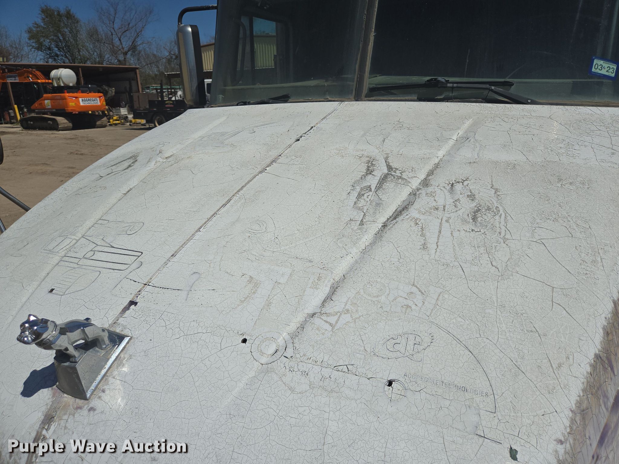 2001 Mack CX613 dump truck. Miles: 781,640 on odometer, Hours: 30,134 on meter, VIN: 1M1AE05Y51W006721, Unit #: 25. Engine Mack E7-330/335, Serial: OJ2544, Displacement: 12.0L, Cylinders: 6, Fuel type: Diesel, Engine brake. Transmission Eaton Fuller, Manual, Speed: 10. Chassis Axles: Tandem, Differential lock: Inter-axle, Suspension: Air Dump valves, Brakes: Air, PTO, GVWR: 52,000 lbs FAWR: 12,000 lbs, IAWR: 20,000 lbs, RAWR: 20,000 lbs, Wheelbase: 209". Interior AC, Heat, Heated mirrors, Power windows, Cruise control. Features Dump bed HilBilt, 16' L x 96" W, Side height: 55", Bed type: Steel, Roll tarp, Ram: Single, End gate: Hydraulic operated. Tires Size: 295/75R22.5. Notes Dash warning indicator: electrical system, Windshield chipped or cracked, Bed had to be forced down after lifting. Texas title. Title distribution may be delayed up to 30 days from verification of funds. Aggregate Technologies Inc. Houston, TX 77070