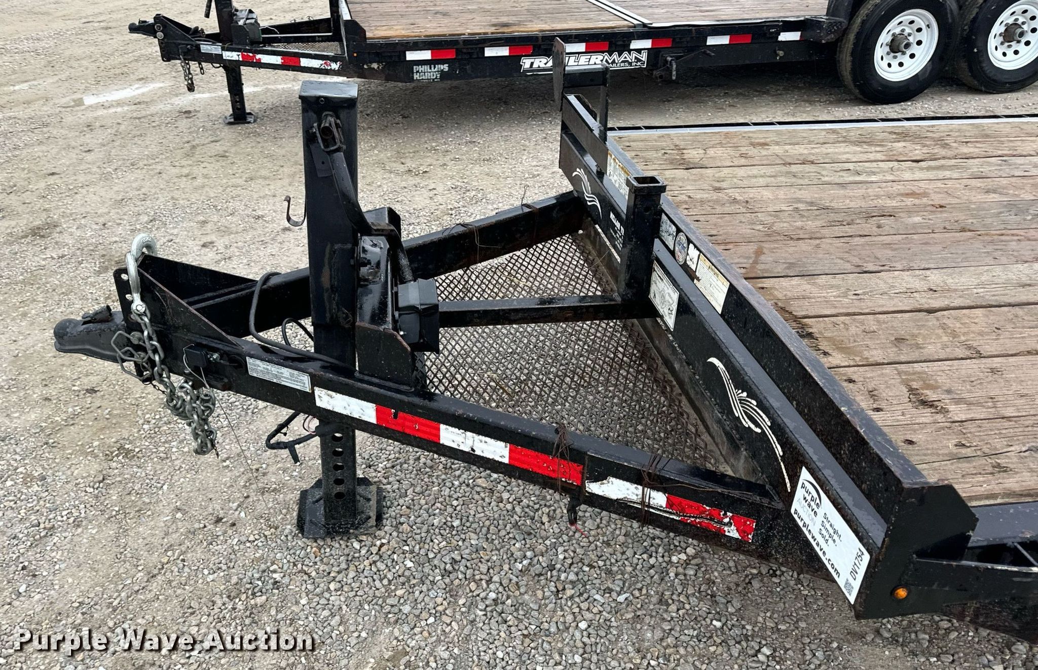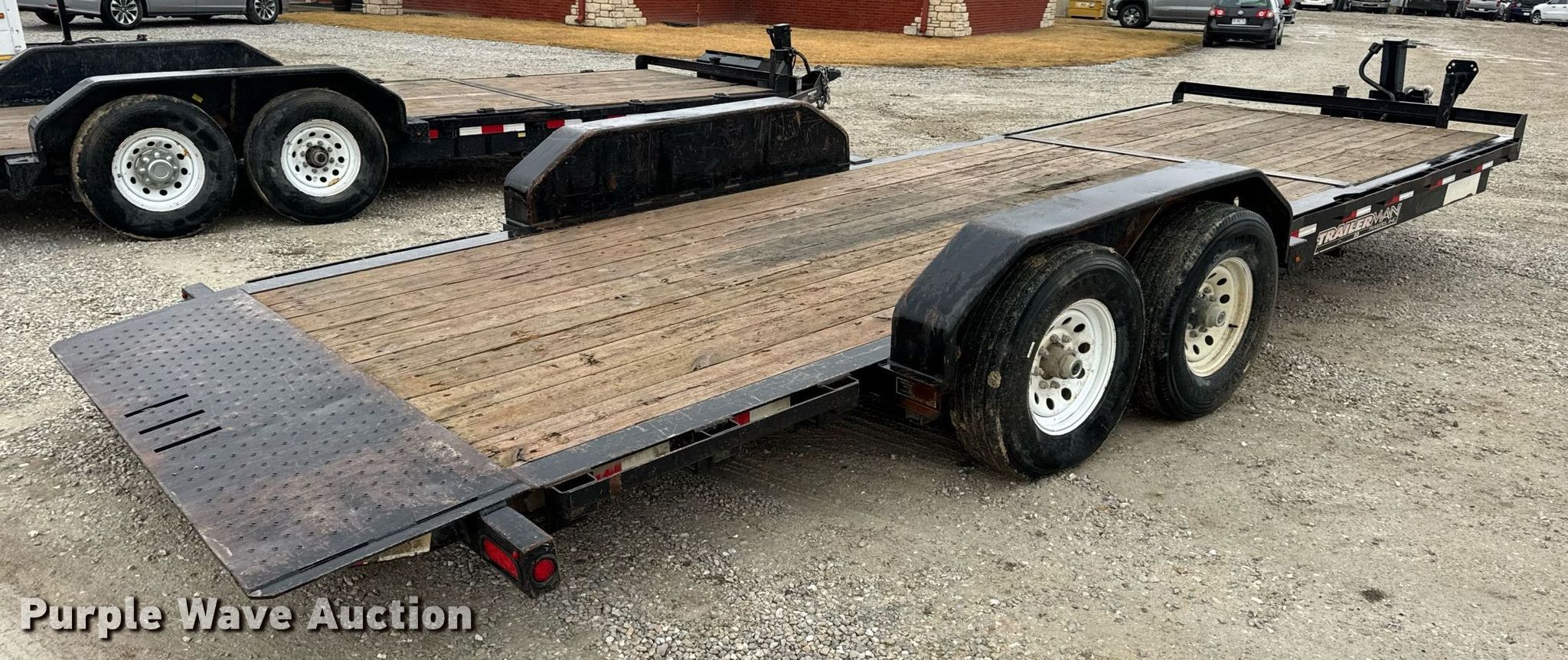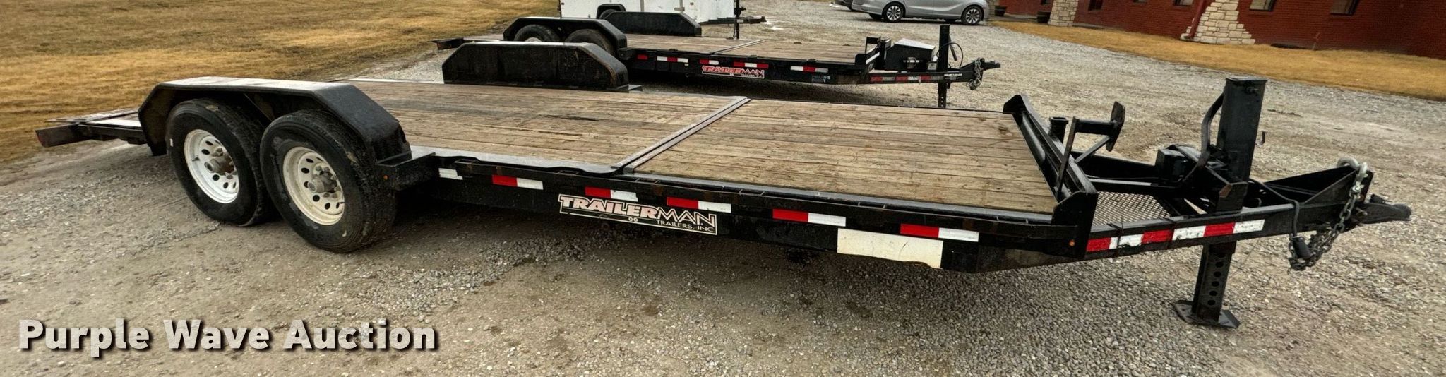 2016 Trailerman tilt deck equipment trailer. VIN: 5L3CX2221GL000484. Dimensions Overall: 27' 2" L x 102" W, Deck: 20' L x 83.5" W, Tail length: 24". Features Deck type: Wood. Chassis Ball hitch: 2 5/16", Landing gear: Single, Suspension: Spring, Brakes: Electric, Axles: Tandem, GVWR: 14,000 lbs, GAWR: 7,000 lbs. Tires Steel wheels, Size: ST235/80R16. Missouri title. Title has a lien that will be released following the close of the auction. Title distribution may be delayed up to 30 days from verification of funds. Hardy Holding Group. Boonville, MO 65233