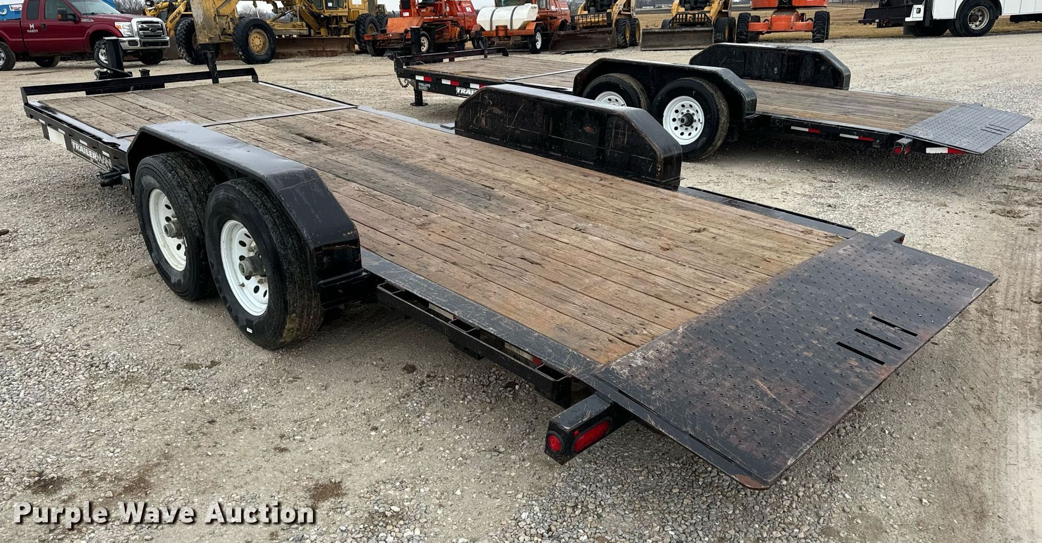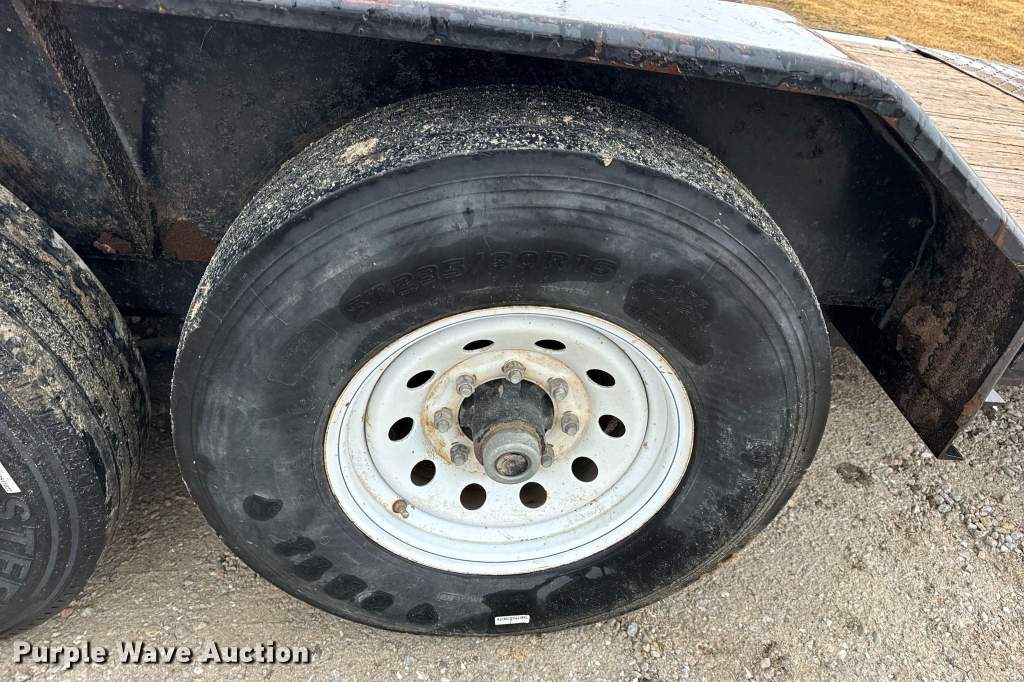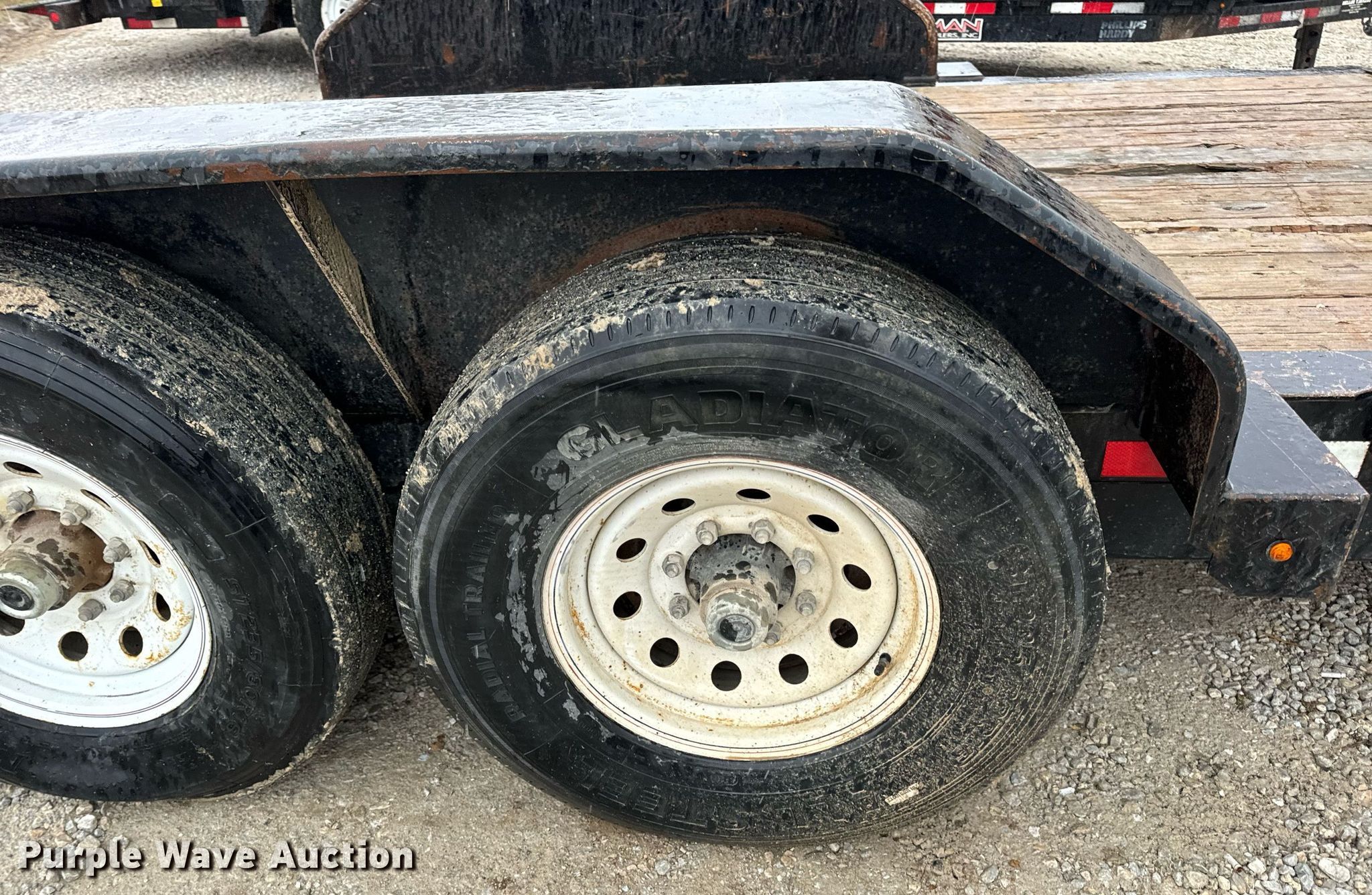 2016 Trailerman tilt deck equipment trailer. VIN: 5L3CX2221GL000484. Dimensions Overall: 27' 2" L x 102" W, Deck: 20' L x 83.5" W, Tail length: 24". Features Deck type: Wood. Chassis Ball hitch: 2 5/16", Landing gear: Single, Suspension: Spring, Brakes: Electric, Axles: Tandem, GVWR: 14,000 lbs, GAWR: 7,000 lbs. Tires Steel wheels, Size: ST235/80R16. Missouri title. Title has a lien that will be released following the close of the auction. Title distribution may be delayed up to 30 days from verification of funds. Hardy Holding Group. Boonville, MO 65233
