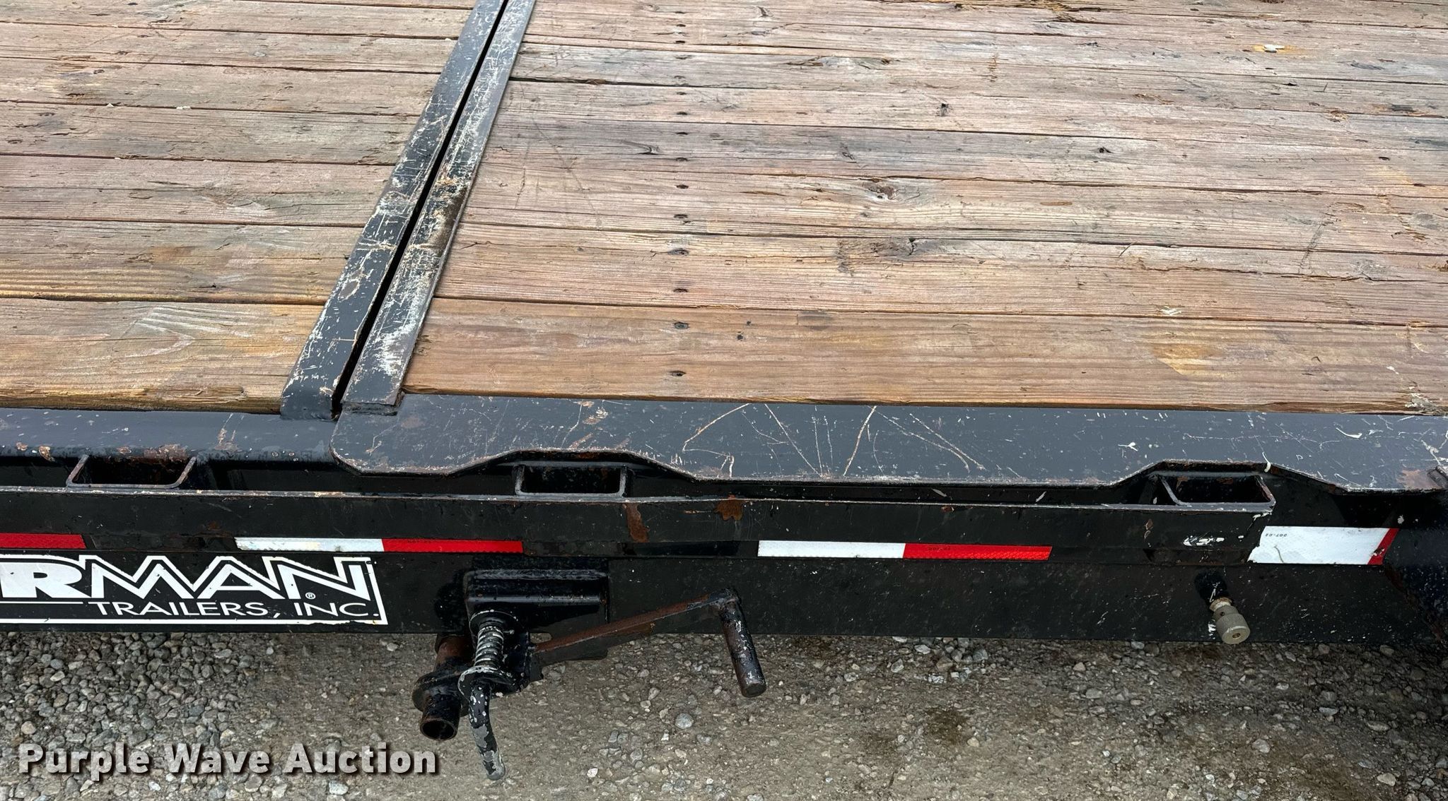 2016 Trailerman tilt deck equipment trailer. VIN: 5L3CX222XGL000483. Dimensions Overall: 27' 2" L x 102" W, Deck: 20' L x 82" W, Tail length: 24". Features Deck type: Wood. Chassis Ball hitch: 2 5/16", Landing gear: Single, Suspension: Spring, Brakes: Electric, Axles: Tandem, GVWR: 14,000 lbs, GAWR: 7,000 lbs. Tires Steel wheels, Size: ST235/80R16. Notes Wire harness issues, damaged. Missouri title. Title has a lien that will be released following the close of the auction. Title distribution may be delayed up to 30 days from verification of funds. Hardy Holding Group. Boonville, MO 65233
