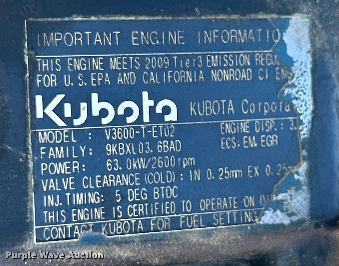 2010 Broce Broom KR350 sweeper. Hours: 2,633 on meter, Serial: 406818. Engine Kubota V3600-T-ET02, Displacement: 3.6L, Cylinders: 4, Fuel type: Diesel. Transmission Hydrostatic. Chassis Brakes: Hydraulic. Operators station Enclosed cab, AC, Heat. Features Broom Width: 96", Water spray system. Tires Size: 225/75R16. Notes Possible engine issues, smokes , Windshield chipped or cracked. Transfer of ownership documentation will be a bill of sale. Hardy Holding Group. Boonville, MO 65233