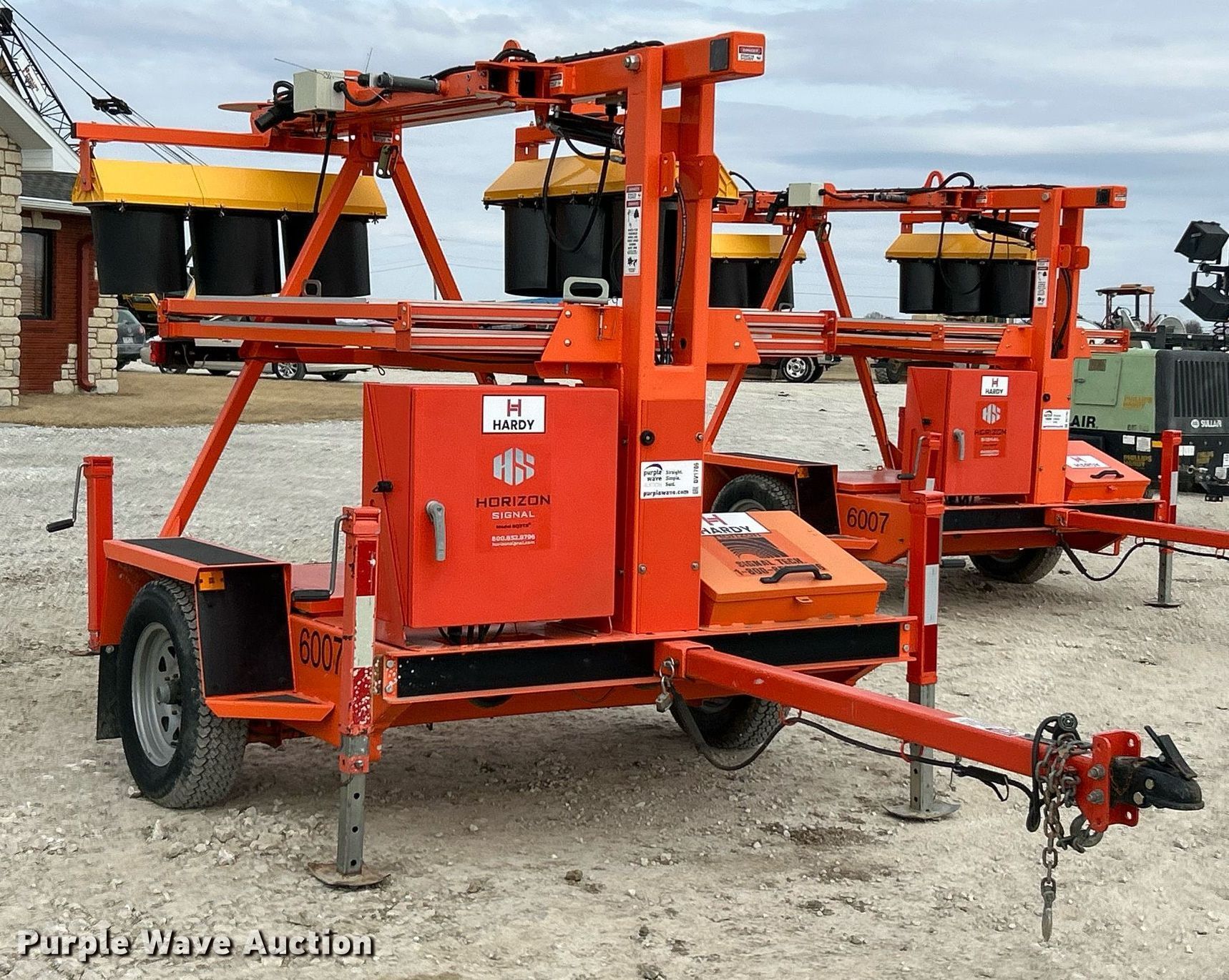 2007 Horizon SQ3TS traffic signal system. VIN: 16MPF0611AC057260. Features Solar power, Batteries: 16. Trailer Hitch: 2 5/16 ball, GVWR: 3,000 lbs. Tires Size: ST205/75D15. Notes Tornado damage Antenna damaged, Control box damaged. This is worksite support equipment and will not come with a title. Transfer of ownership documentation will be a bill of sale. Hardy Holding Group. Boonville, MO 65233