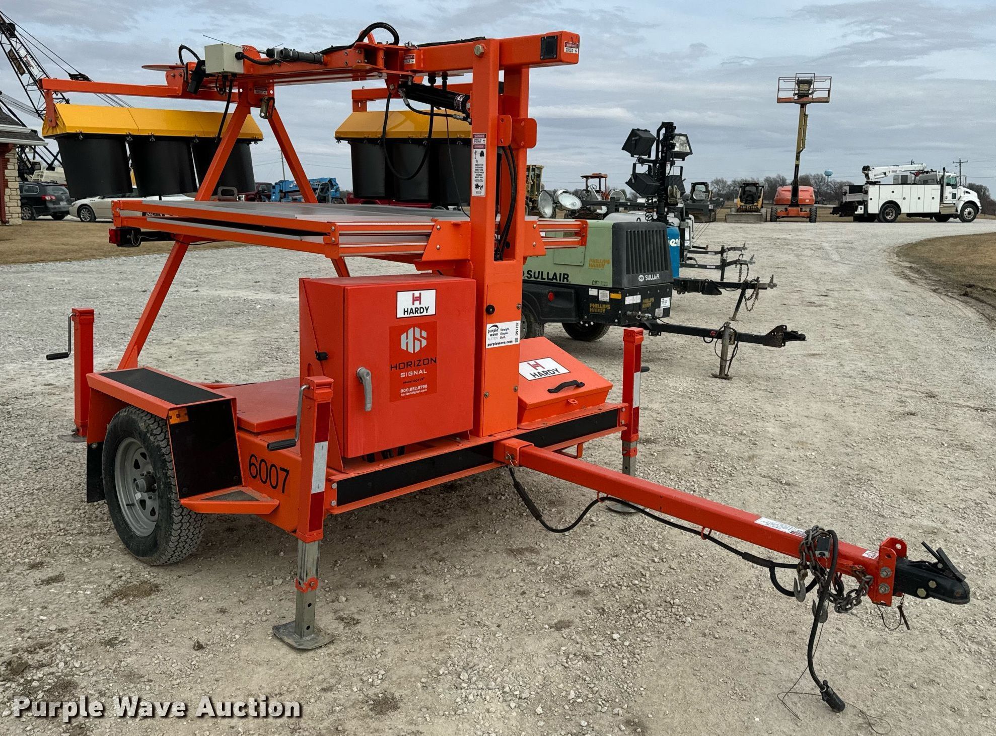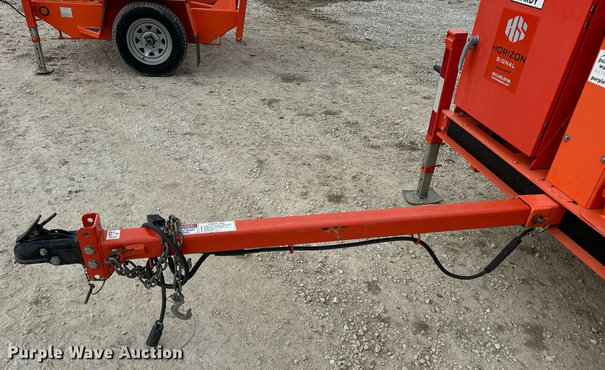2007 Horizon Signal SQ3TS traffic signal system. VIN: 16MPF0613AD057261, Unit #: 6007. Features Solar power, Batteries: 16. Trailer Hitch: 2 5/16" ball, GVWR: 3,000 lbs. Tires Size: ST205/75D15. Notes Tornado damage Antenna damaged, Control box damaged. This is worksite support equipment and will not come with a title. Transfer of ownership documentation will be a bill of sale. Hardy Holding Group. Boonville, MO 65233