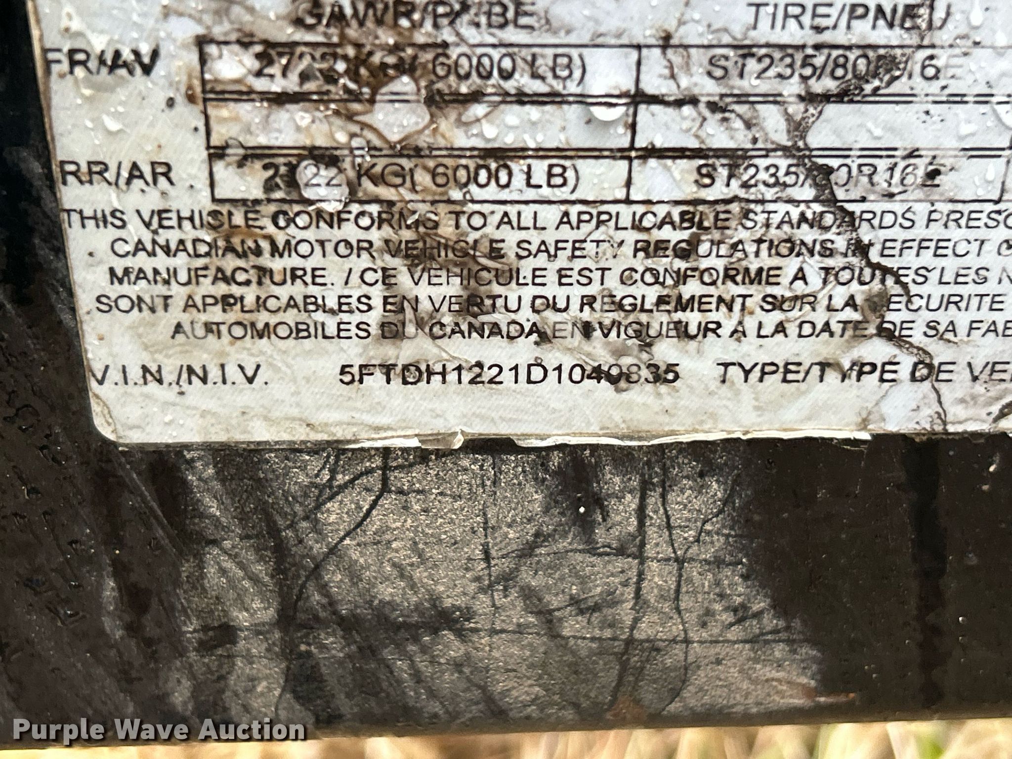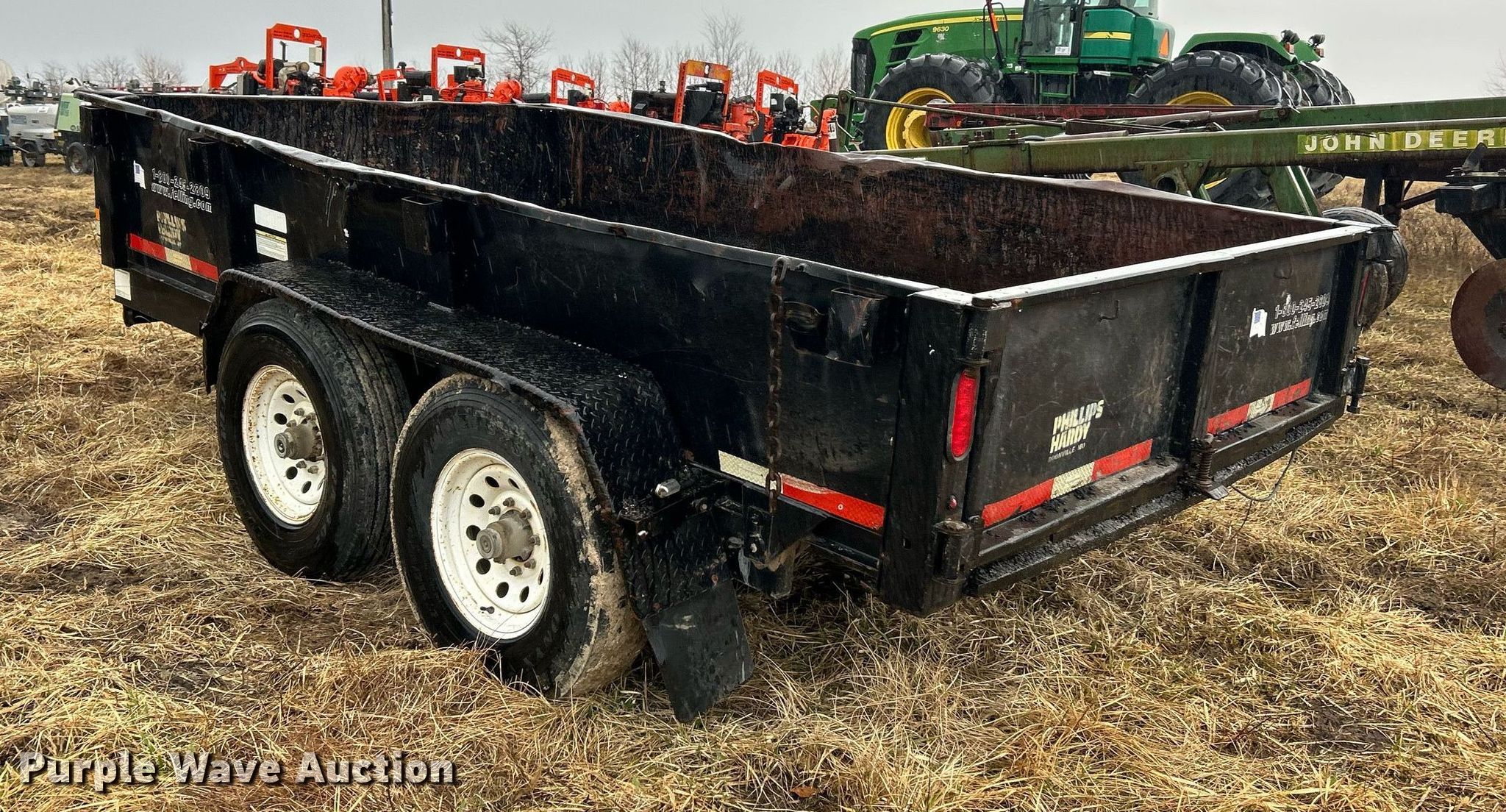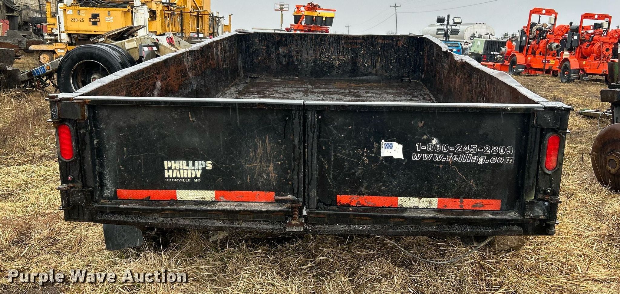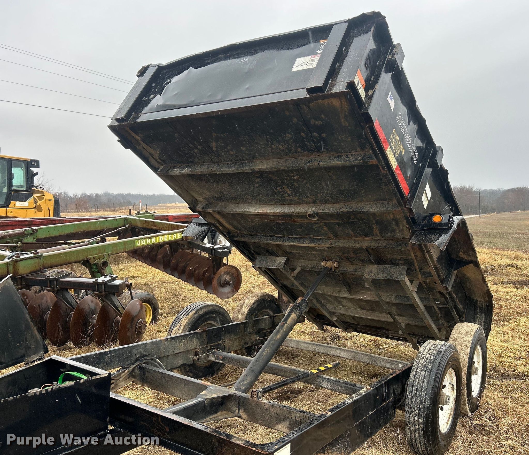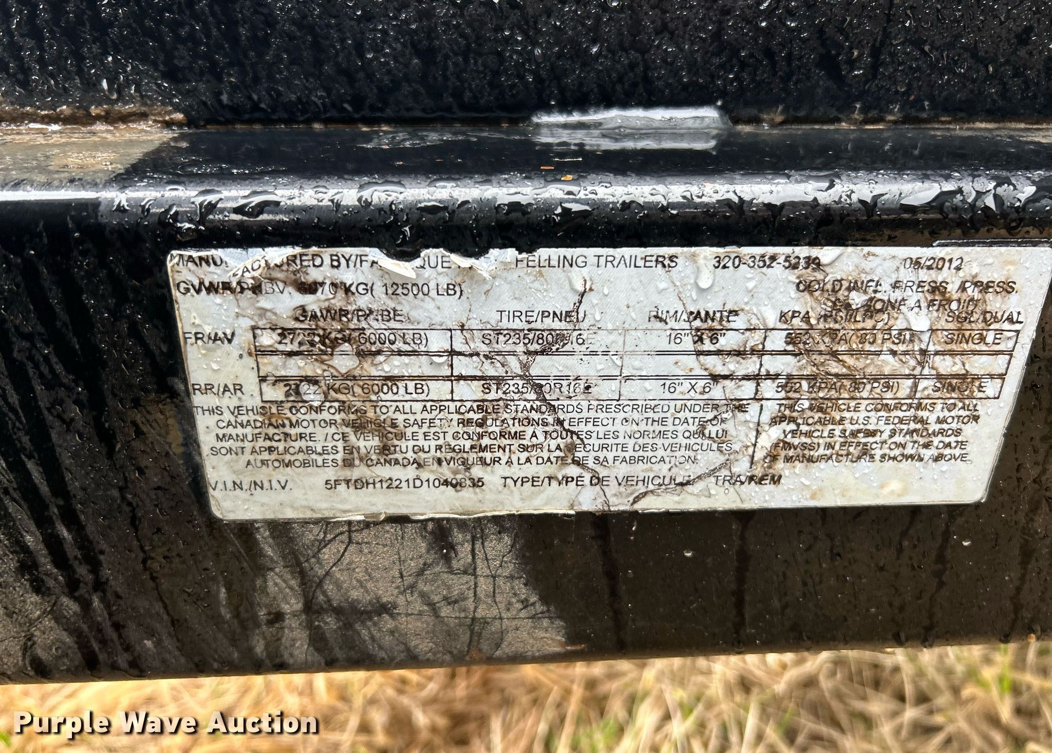 2012 Felling dump trailer. VIN: 5FTDH1221D1040835. Dimensions Overall: 18' L x 101" W, Body: 12' L x 80" W, Side height: 20". Features Body type: Steel, Ram: Single. Chassis Ball hitch: 2 5/16", Landing gear: Single, Brakes: Electric, Axles: Tandem, GVWR: 12,500 lbs, GAWR: 6,000 lbs. Tires Steel wheels, Size: 7.50R16LT. Missouri title. Title has a lien that will be released following the close of the auction. Title distribution may be delayed up to 30 days from verification of funds. Hardy Holding Group. Boonville, MO 65233