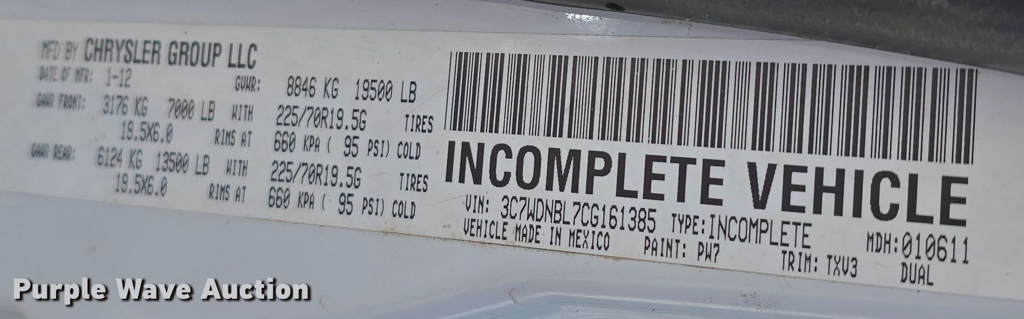 - VIN: 3C7WDNBL7CG161385