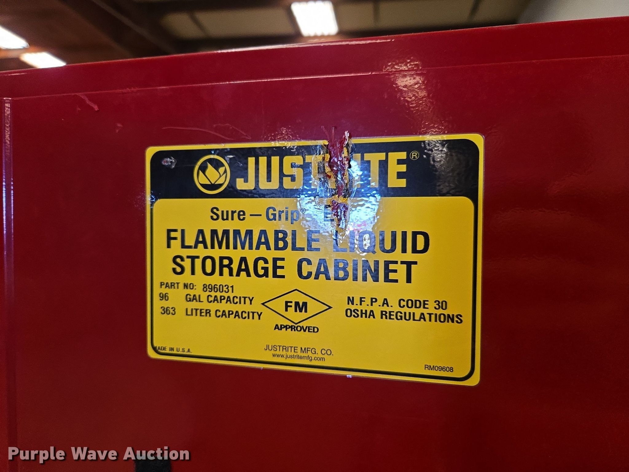 Purple Wave is selling a used Other Industrial or Business in Texas. This item is a (2) flammable storage cabinets with the following: Eagle, Capacity: 55 gallons, Justrite, Capacity: 96 gallons