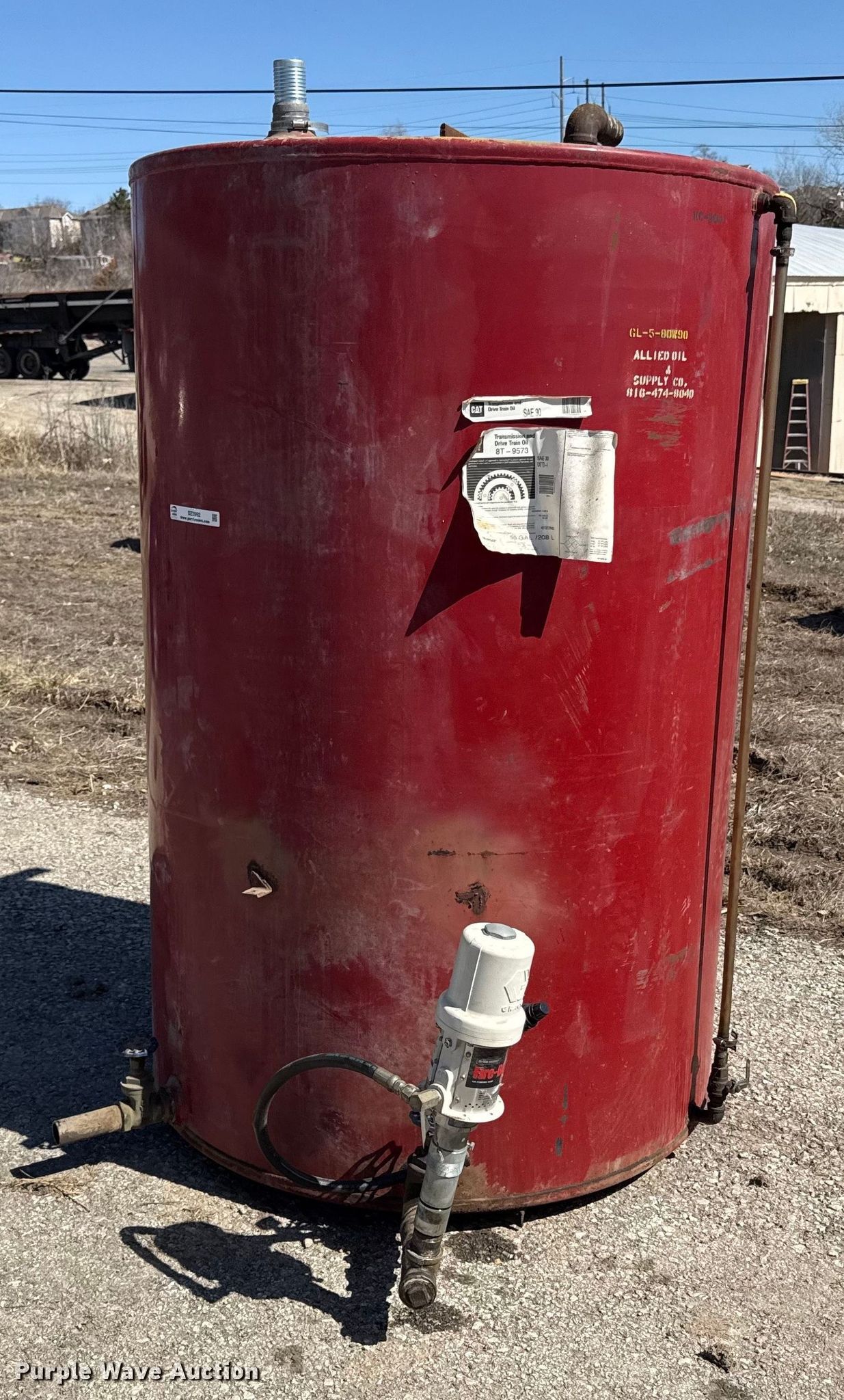 Purple Wave is selling a used Fuel and Lube in Kansas. This item is a Oil tank with the following: 48� W x 6� H, Graco Fire-Ball pump included