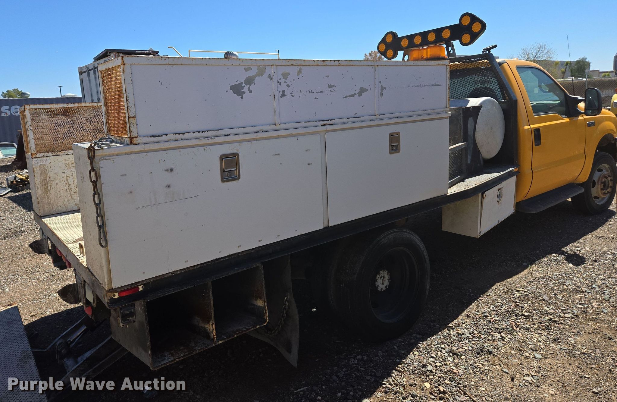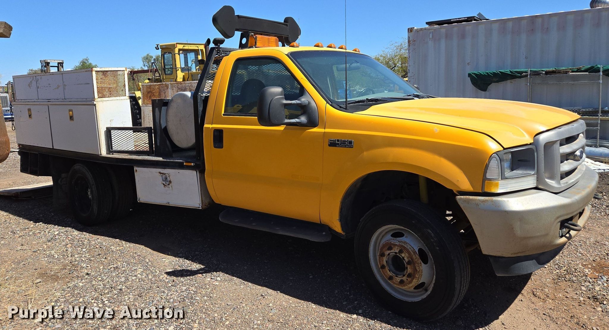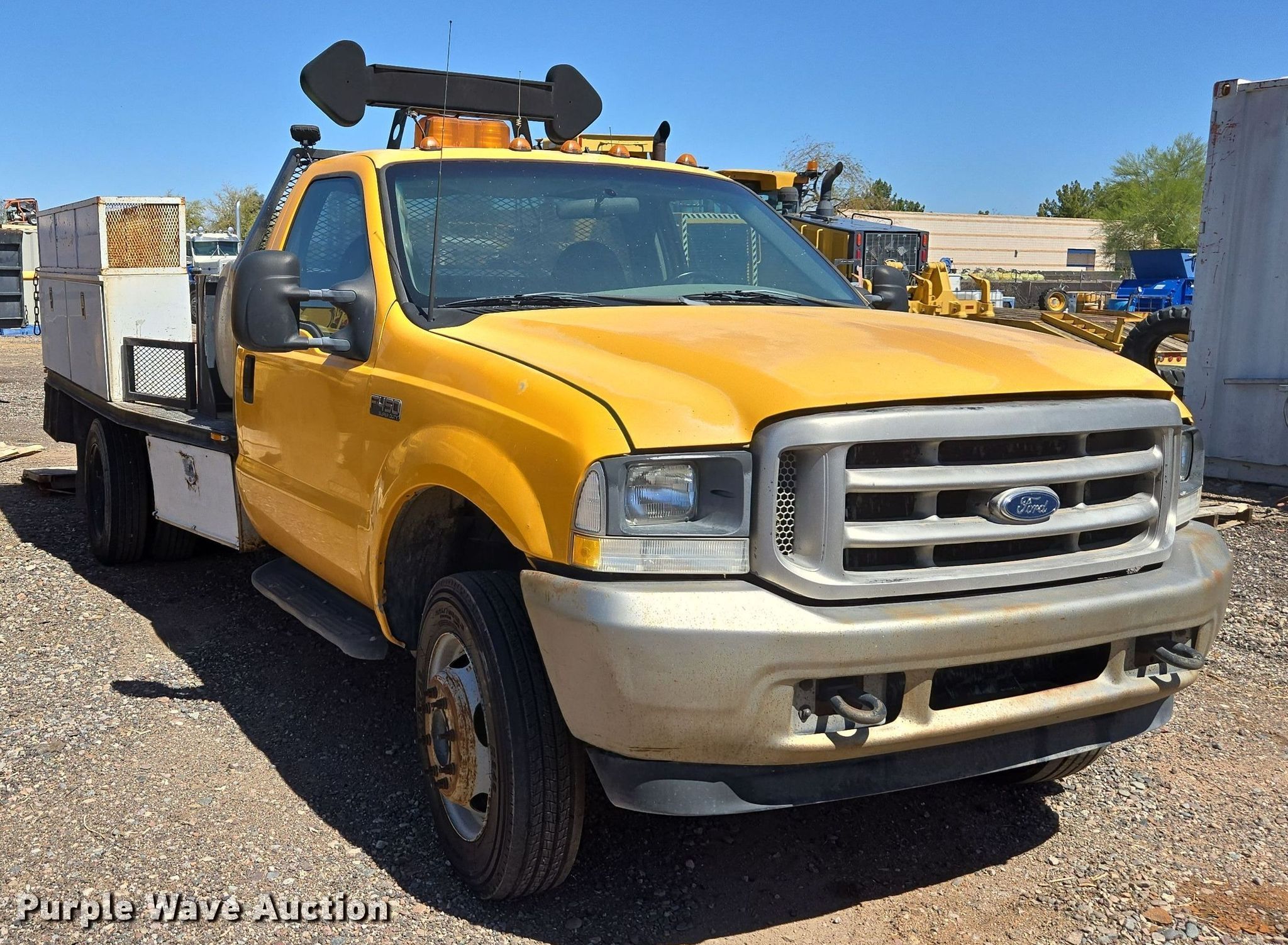 Purple Wave is selling a used Flat Bed Truck in Arizona. This item is a 2002 Ford F450 Super Duty XL flatbed truck with the following: Miles: Unknown, VIN: 1FDXF46F72EC83739