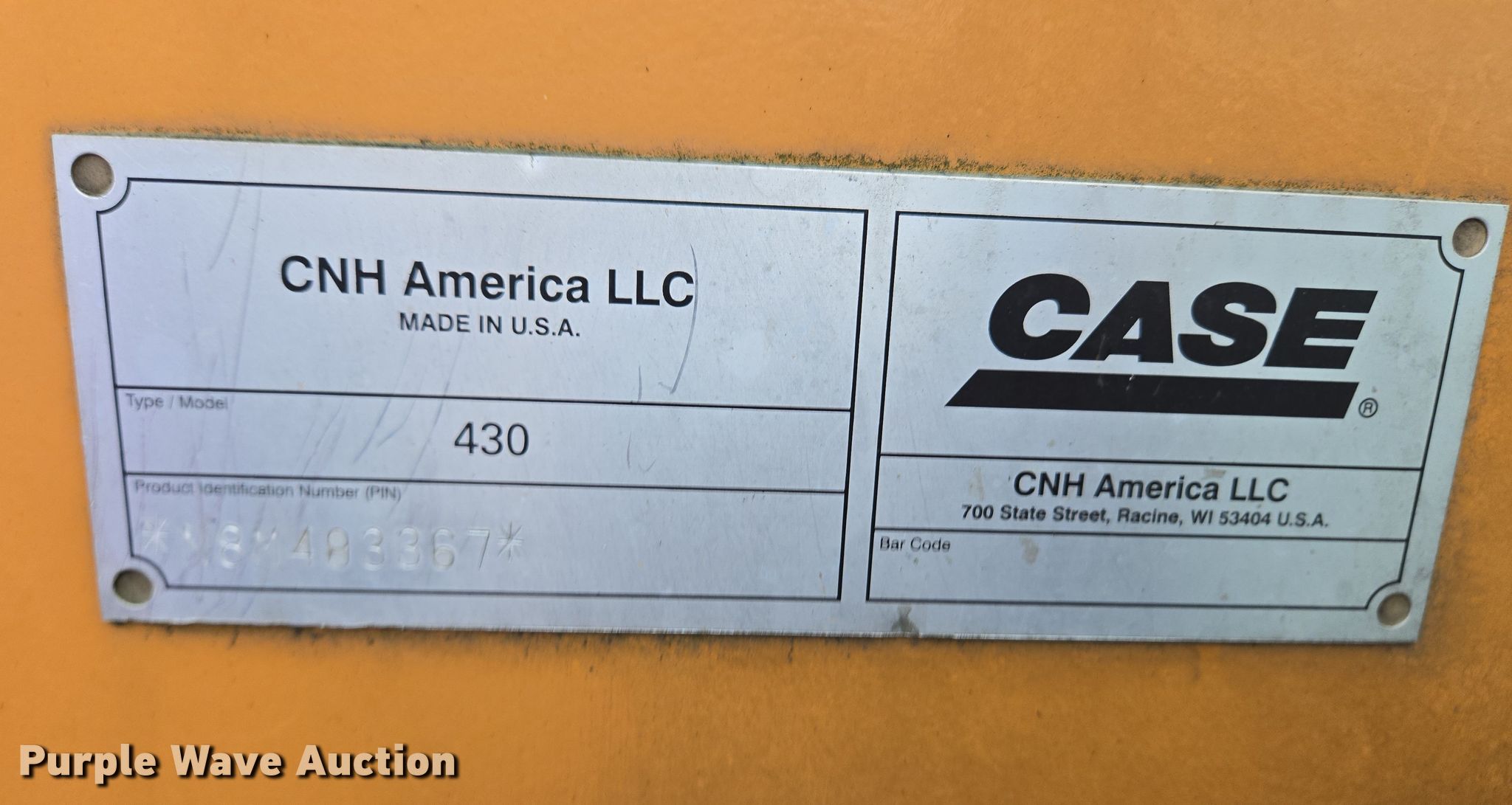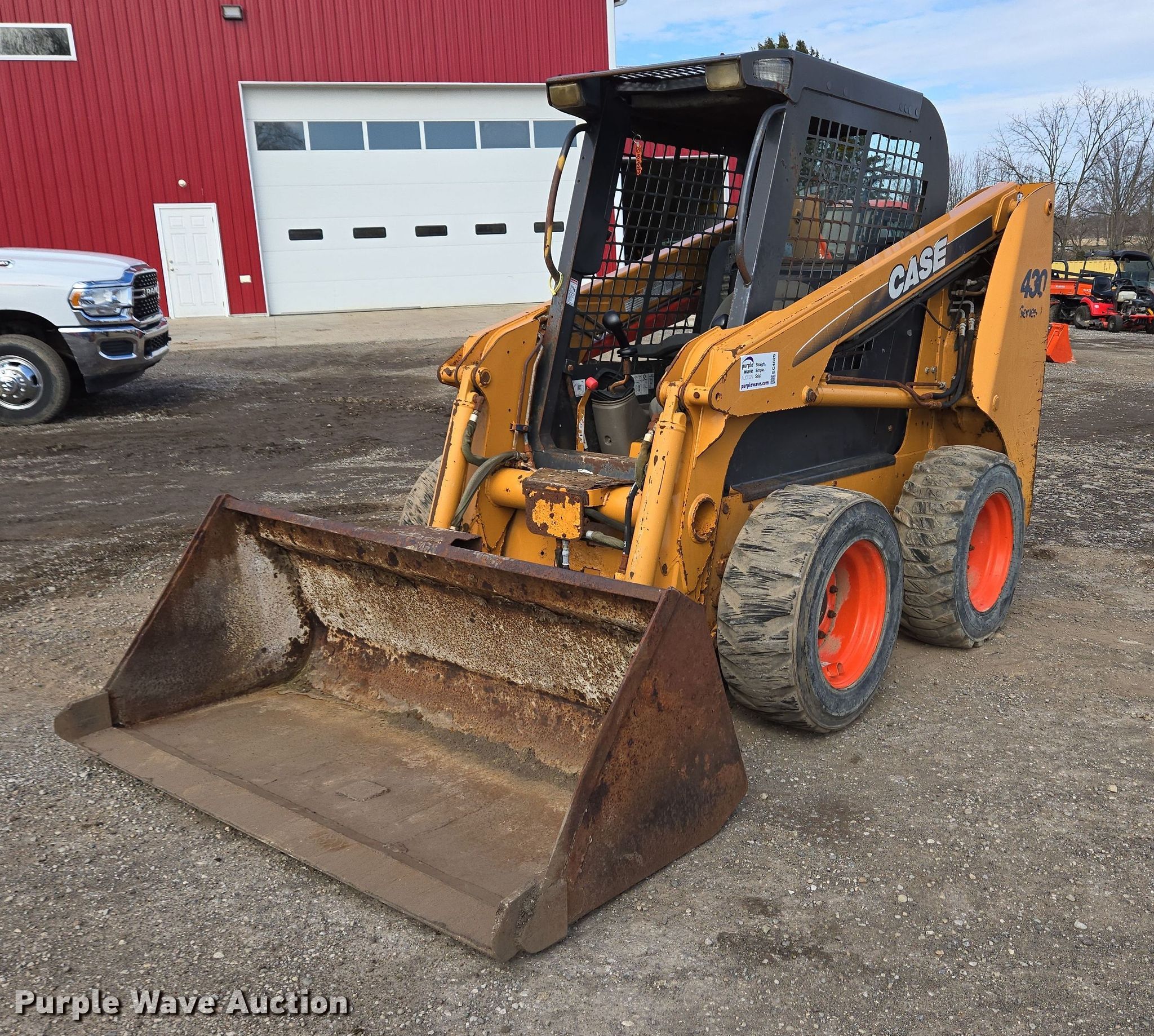 Purple Wave is selling a used Skid Steer Loader in Ohio. This item is a 2008 Case 430 skid steer loader with the following: Hours: 6,595 on meter, Serial: N8M493367