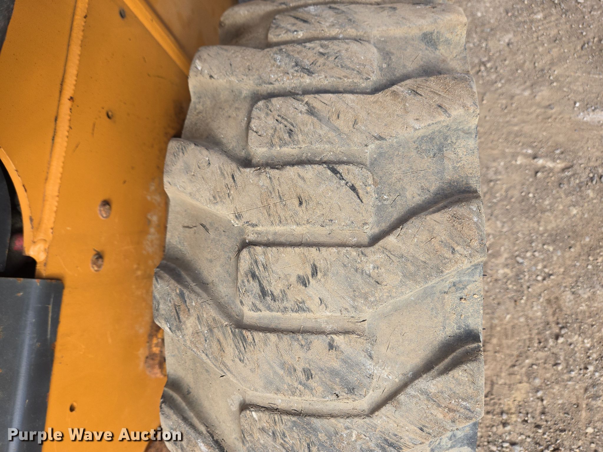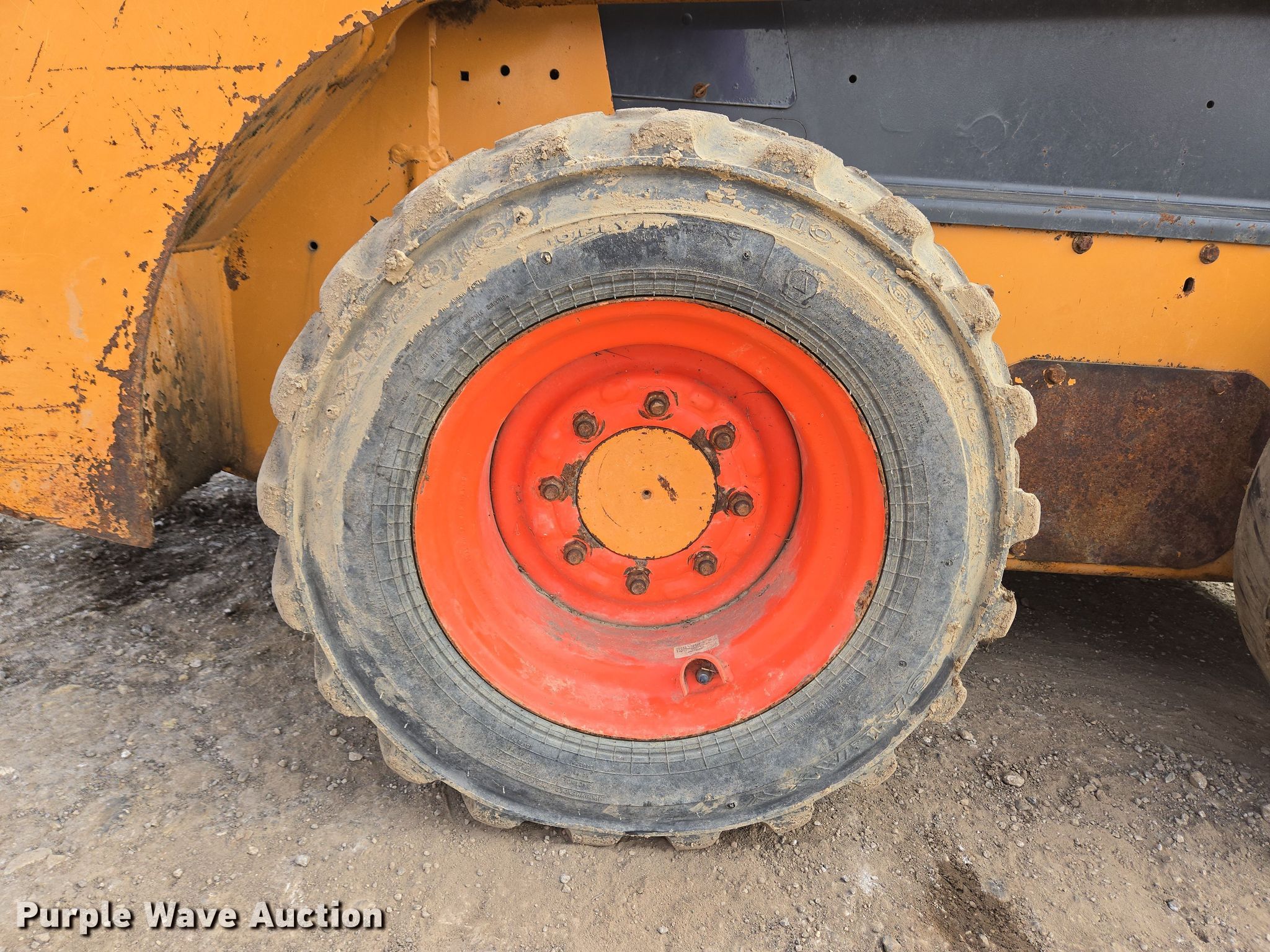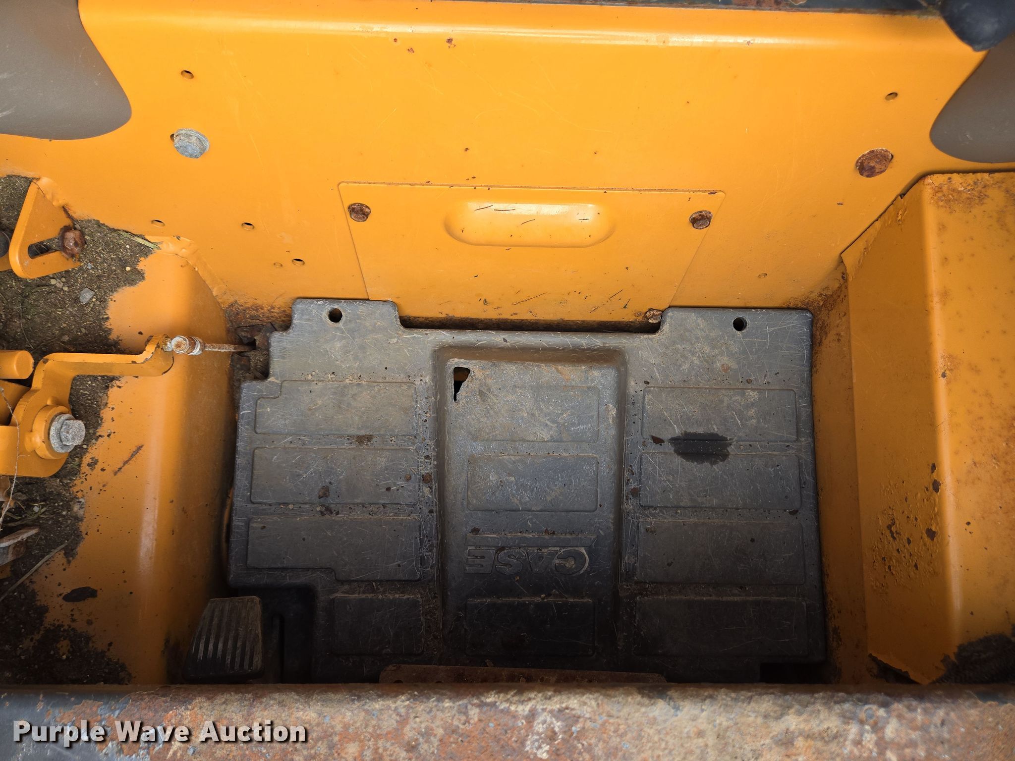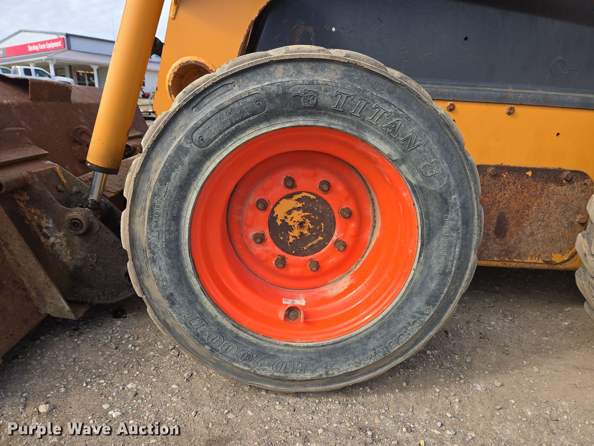 2008 Case 430 skid steer loader. Hours: 6,595 on meter, Serial: N8M493367. Engine Cylinders: 4, Fuel type: Diesel. Transmission Hydrostatic. Operators station Enclosed cab, Bucket control: Hand. Features Quick coupler: Hydraulic, Bucket Width: 66". Tires Size: 10-16.5. Notes Door missing, Possible hydraulic control issues, stiff, Non-operational bucket release, Bucket pin issues, heavy wear, Hydraulic tilt cylinder issues, leak, Front right tire issues, needs replaced. Sterling Farm Equipment. Wooster, OH 44691