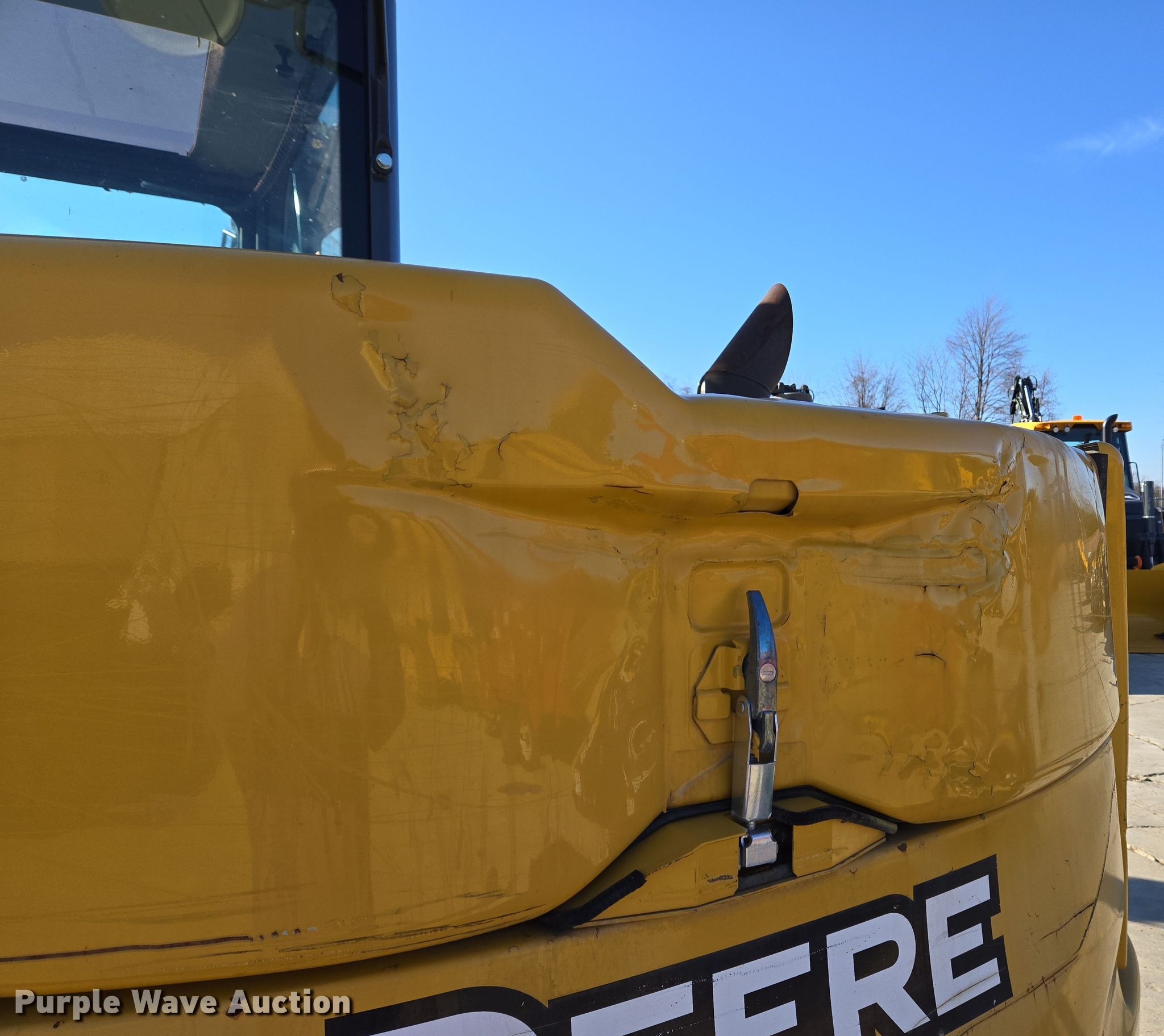 2020 John Deere 85G mini excavator. Hours: 3,269 on meter, Serial: 1FF085GXJKJ020723. Engine Yanmar 4TNV98C-WHBW, Serial: 88545, Displacement: 3.318L, Cylinders: 4, Fuel type: Diesel. Transmission Hydrostatic, Two speed travel. Operators station Enclosed cab, AC, Heat, Pattern changer. Features Auxiliary hydraulics Standard, Two-way, Backfill blade Width: 86", Boom Swing, Stick Stick length: 6' 10", Quick coupler: Hydraulic Miller, Thumb: Hydraulic Werk-Brau, Bucket Width: 49", Cutting edge: Bolt-on. Tracks Width: 17.5", Steel, Track pads: Rubber. Murphy Tractor & Equipment Co. Brunswick, OH 44212