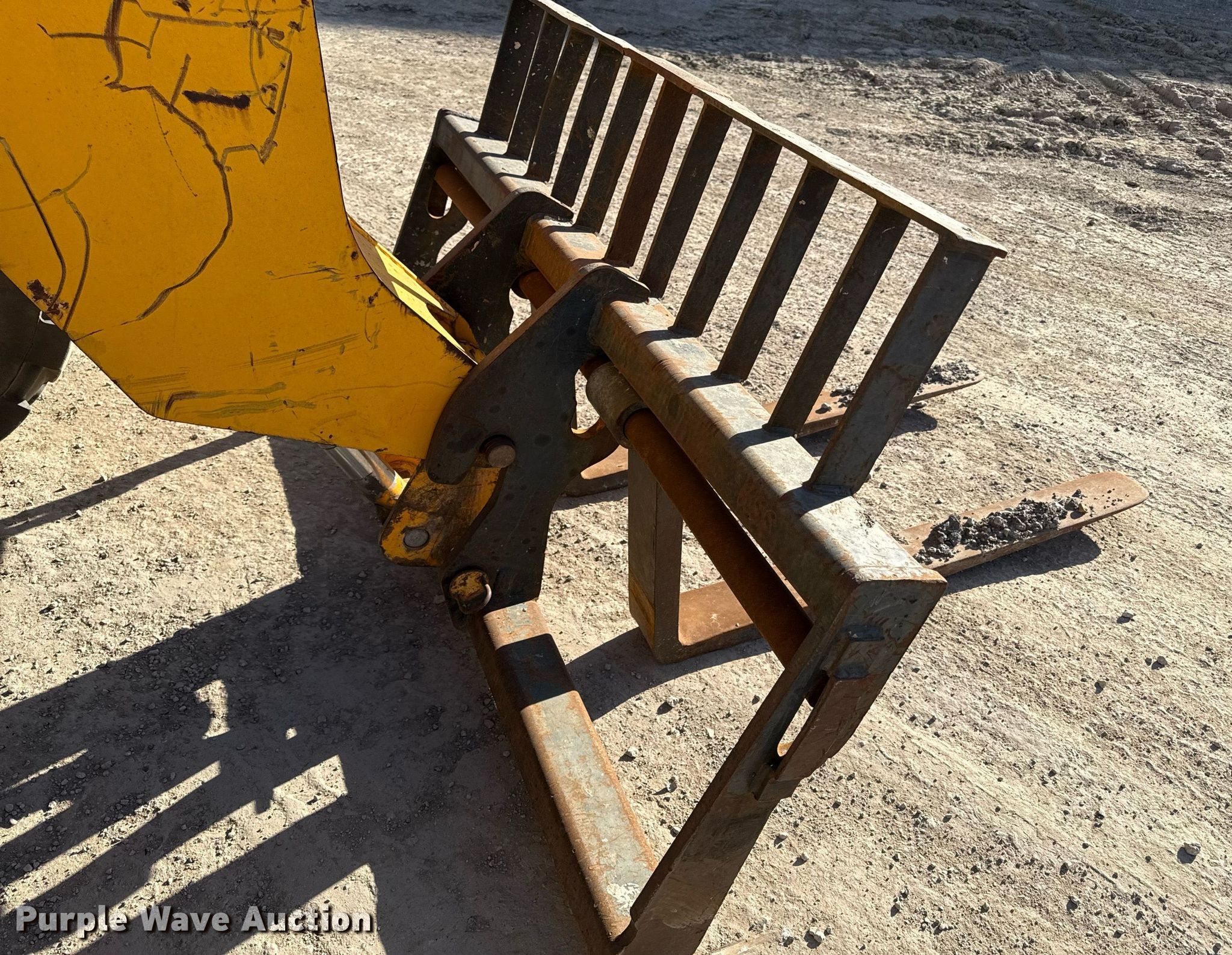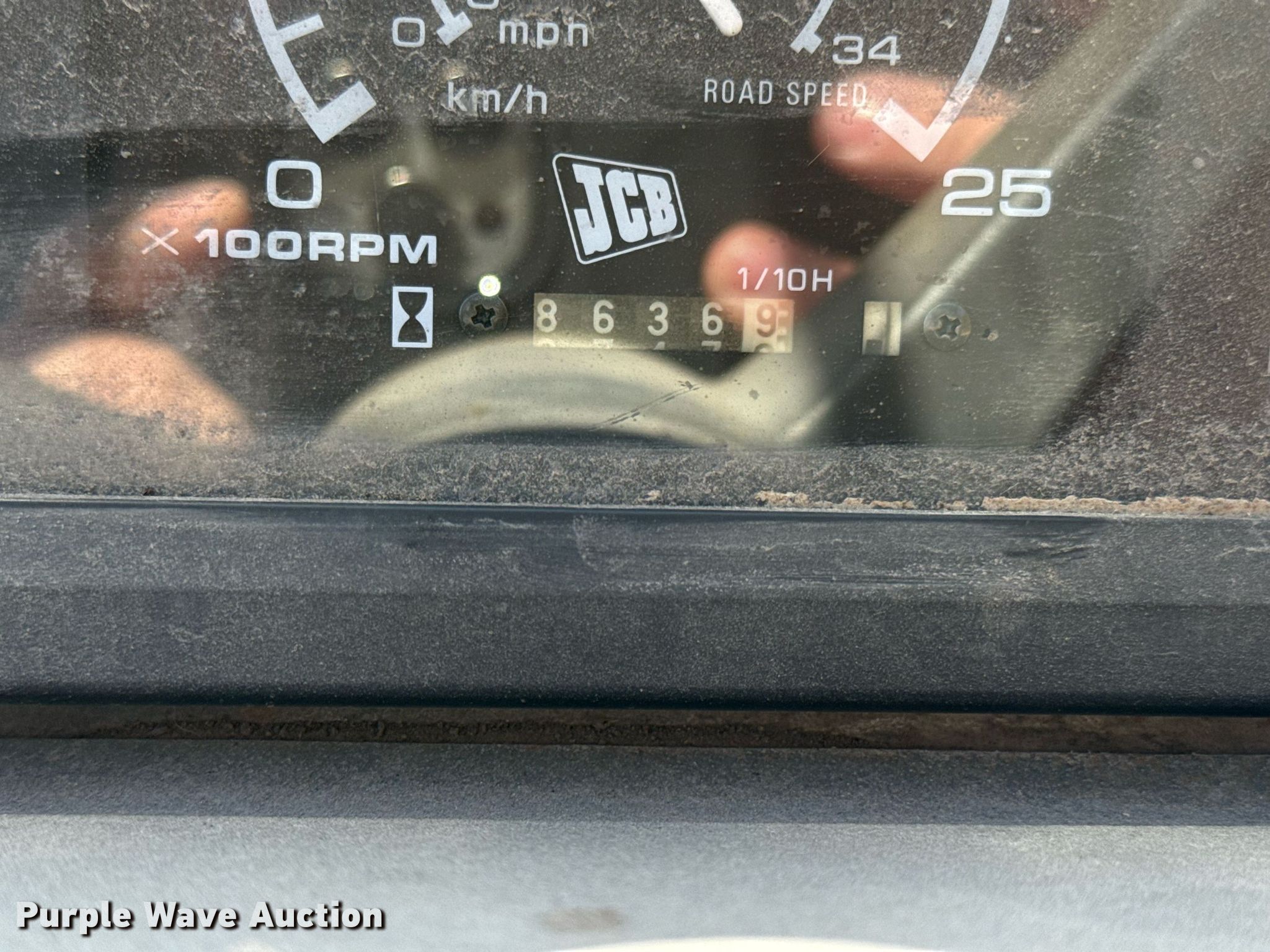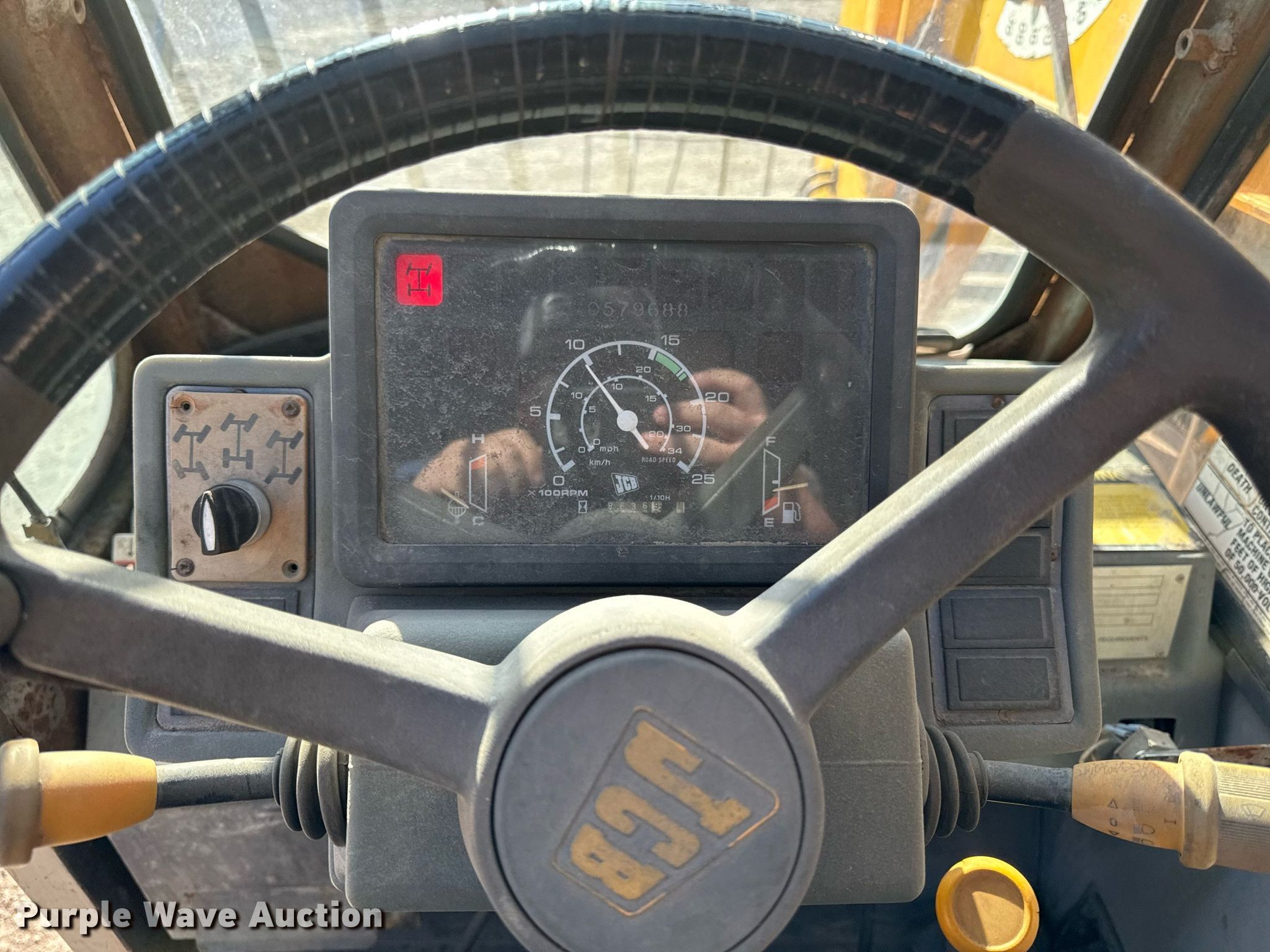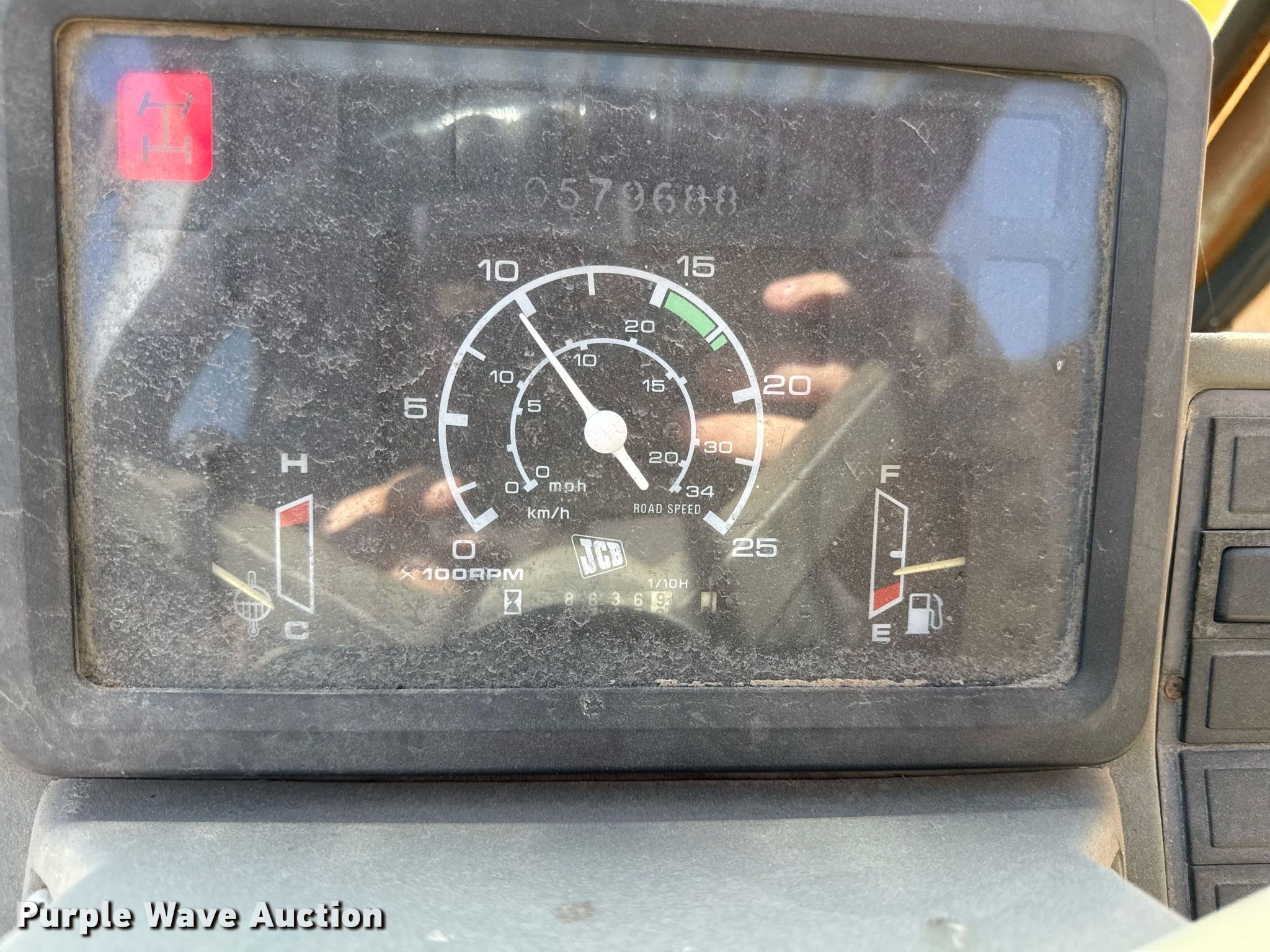 1997 JCB 506B telehandler. Hours: 8,637 on meter, Serial: 579688. Engine Cylinders: 4, Fuel type: Diesel. Transmission Shuttle shift, 4F - 4R, Four wheel drive. Operators station Enclosed cab, Steering: Crab, Four wheel. Features Maximum lift capacity: 6,000 lbs, Maximum lift height: 36', Boom stages: 3, Fork length: 47", Auxiliary hydraulics, Hydraulic leveling, Quick attach: Manual. Tires Size: 15.5-25, Foam filled. Kissick Construction Company. Kansas City, MO 64132