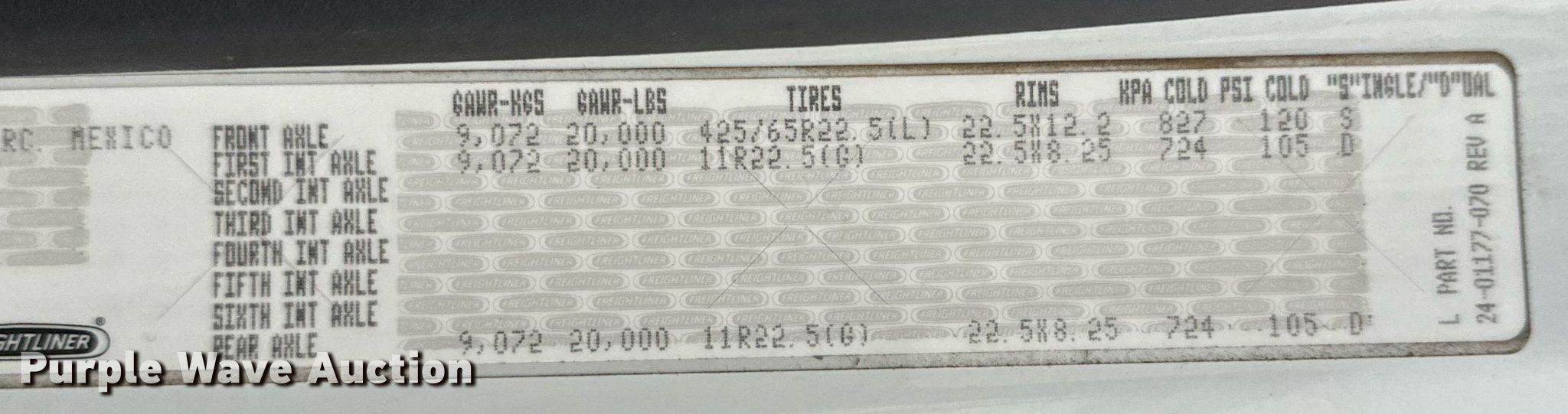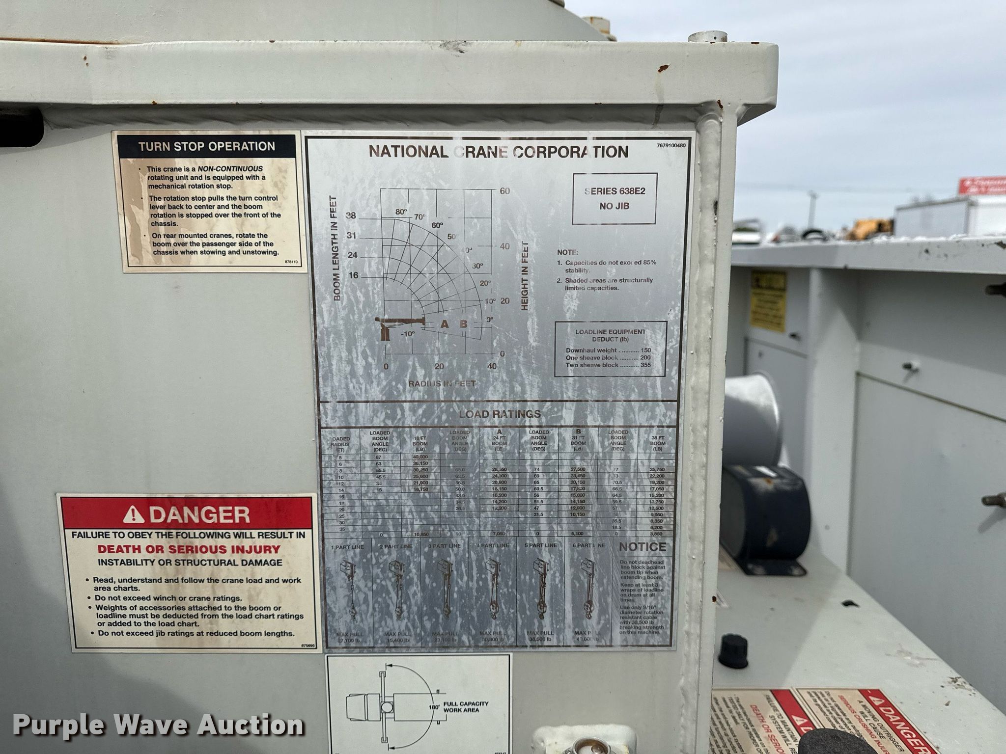 2012 Freightliner 114SD crane truck. Miles: 177,934 on odometer, Engine hours: 8,373 on meter, VIN: 1FVHG3DV5CDBU0460. Engine Detroit Diesel DD13, Displacement: 12.8L, Cylinders: 6, Fuel type: Diesel, Engine brake. Transmission Eaton Fuller 8LL, Manual, Speed: 10. Chassis Axles: Tandem, Suspension: Air, Brakes: Air, PTO, GVWR: 60,000 lbs FAWR: 20,000 lbs, IAWR: 20,000 lbs, RAWR: 20,000 lbs. Interior AC, Heat, Heated mirrors, Cruise control, Brake controller. Features Flatbed 20' 3" L x 96" W, Removable sides, Crane 2013 National Crane 600 Serial: 297776, Boom Telescopic, Maximum boom length: 50' Sections: 3, Maximum lift capacity: 40,000 lbs, Boom controls Ground, Crane block Sheaves: 1, Capacity: 12 tons, Certification valid through: 6/6/23, Lift chart, (2) hose reels. Tires Front: 425/65R22.5, Rear: 11R22.5. Oklahoma title. Seller is an Oklahoma licensed motor vehicle dealer. Title will be assigned and distributed by the dealer. Please contact the seller for distribution questions. Title distribution may be delayed up to 30 days from verification of funds. 15107 North 137th East Avenue. Collinsville, OK 74021