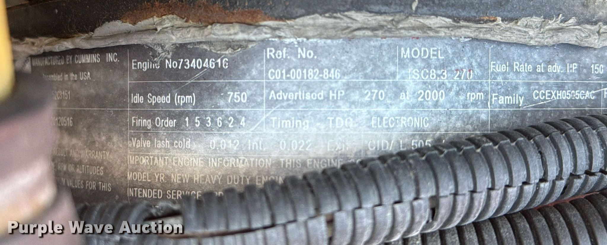 2013 Freightliner Business Class M2 Ext. Cab utility / service truck. Miles: 153,773 on odometer, Engine hours: 14,947 on meter, VIN: 1FVAC2BS3DHFA4901. Engine Cummins ISC, Serial: 73404616, Displacement: 8.3L, Cylinders: 6, Fuel type: Diesel, HP: 270. Transmission Eaton Fuller, Manual, Speed: 10. Chassis Axles: Single, Suspension: Spring, Brakes: Air, PTO. Interior AC, Heat, Heated mirrors, Cruise control. Features Bed 14' L x 96" W, Oil/lube system Hose reels, Crane IMT 2820, Maximum boom length: 22' Maximum lift capacity: 5,000 lbs, End gate lift Waltco SB12, Capacity: 1,250 lbs. Tires Size: 11R22.5. Notes Dash warning indicator: ABS, Windshield chipped or cracked, Utility bed door missing. Oklahoma title. Seller is an Oklahoma licensed motor vehicle dealer. Title will be assigned and distributed by the dealer. Please contact the seller for distribution questions. Title distribution may be delayed up to 30 days from verification of funds. 15107 North 137th East Avenue. Collinsville, OK 74021