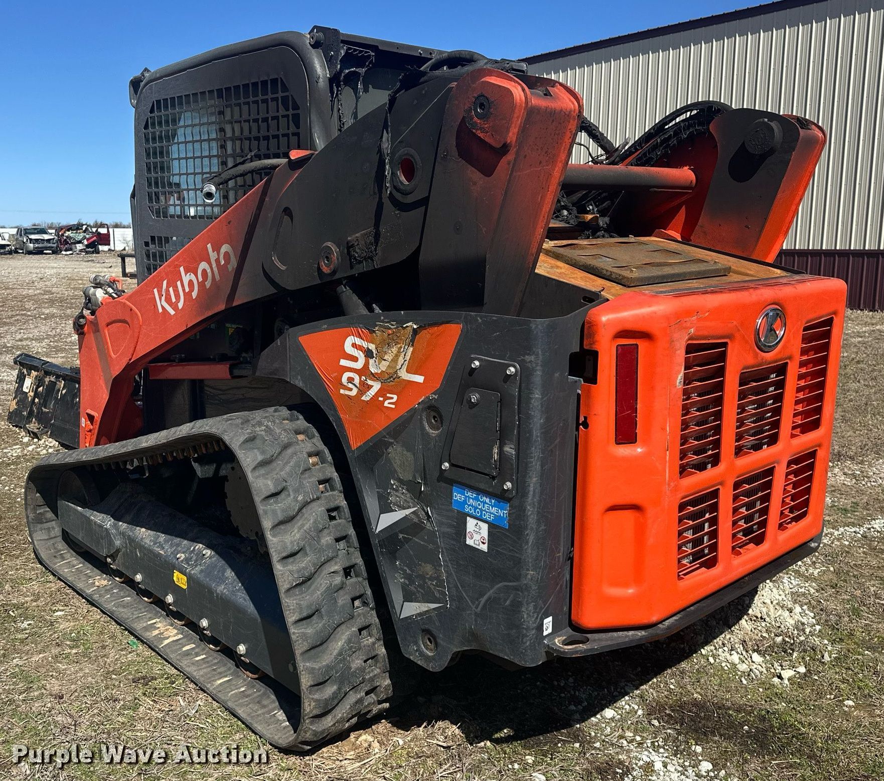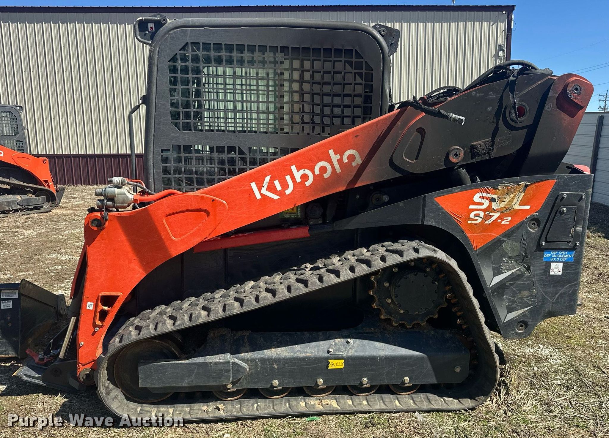 Purple Wave is selling a used Tracked Skid Steer Loader in Oklahoma. This item is a Kubota SVL97-2 tracked skid steer loader with the following: Hours: Unknown, Insurance salvage unit claim #: 5-800046