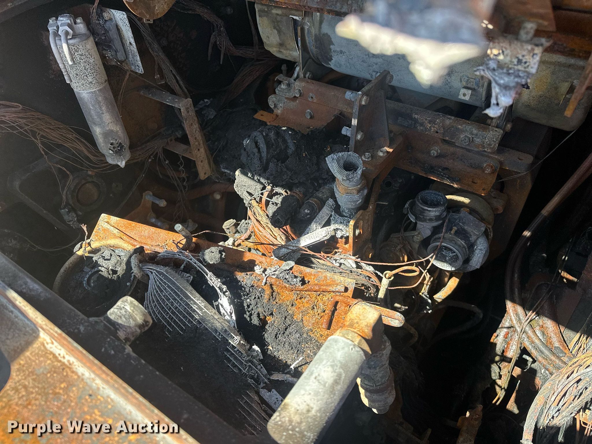 Kubota SVL97-2 tracked skid steer loader. Hours: Unknown, Insurance salvage unit claim #: 5-800046. Engine Kubota V3800-CR-TI-DV13, Displacement: 3.8L, Cylinders: 4, Fuel type: Diesel. Transmission Hydrostatic, Two speed travel. Operators station Enclosed cab, Heat, Backup camera, Bucket control: Hand. Features Auxiliary hydraulics, Auxiliary electrical outlet, Quick coupler: Hydraulic, Bucket Land Pride AP-HD80LLC, Width: 80", Low profile, Cutting edge: Bolt-on. Tracks Brand: Bridgestone, Width: 18". Notes Dead battery, Non-operational unit. Oklahoma Farm Bureau. Seminole, OK 74868