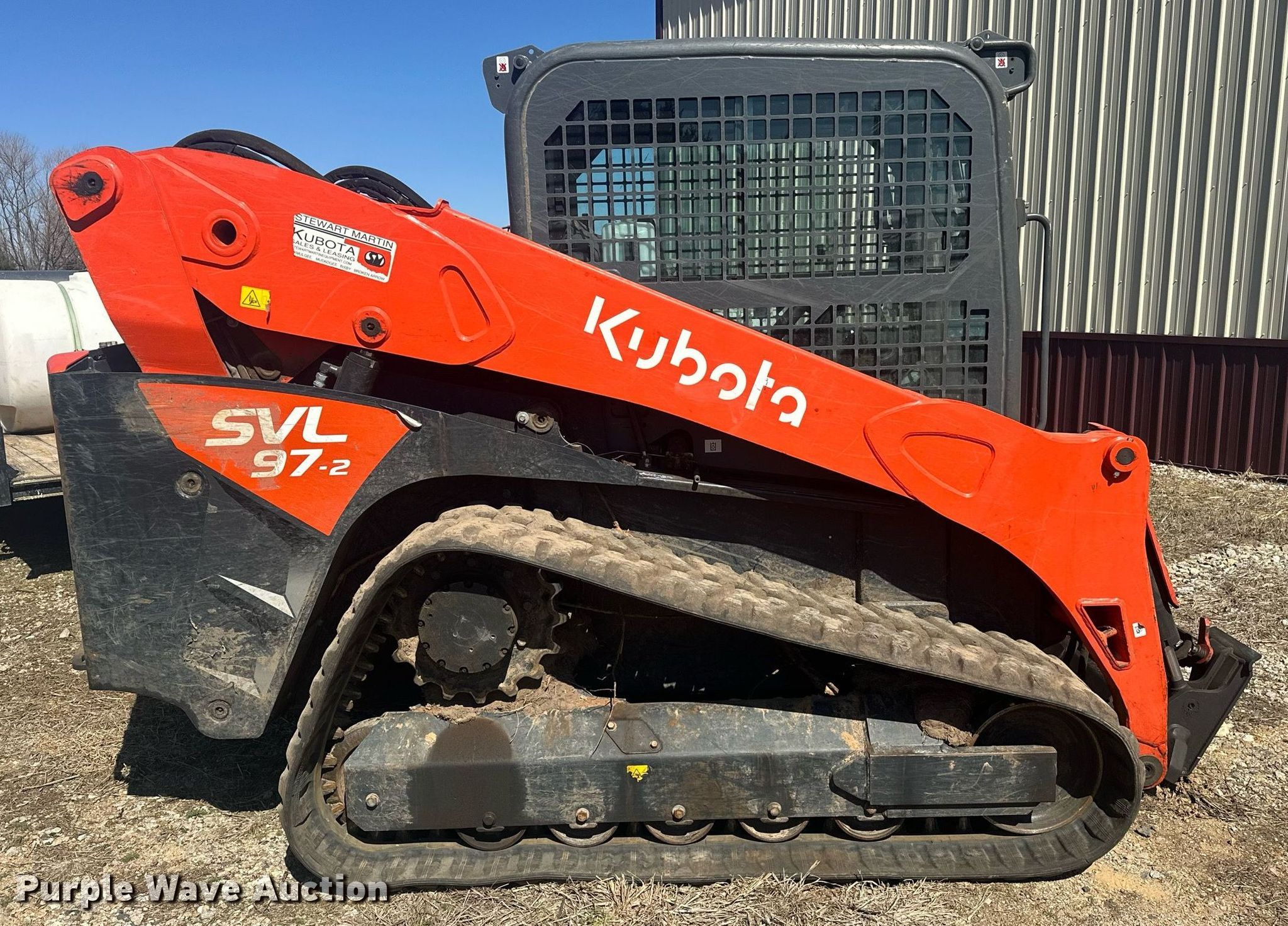 Purple Wave is selling a used Tracked Skid Steer Loader in Oklahoma. This item is a 2023 Kubota SVL97-2 tracked skid steer loader with the following: Hours: 428 on meter, Serial: KBCZ064CVP1H78883, Insurance salvage unit claim #: 5-801200