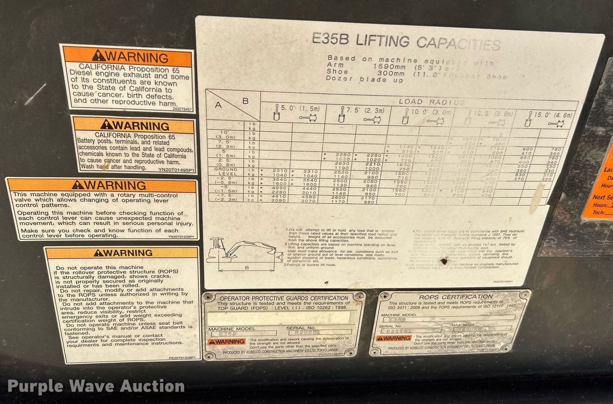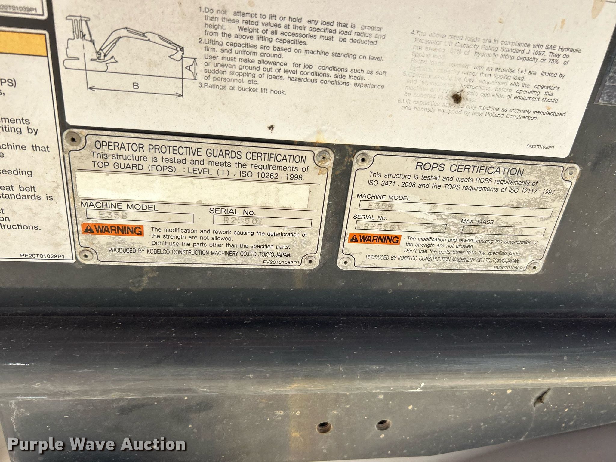 Purple Wave is selling a used Mini Excavator in Missouri. This item is a 2012 New Holland E35B mini excavator with the following: Hours: 5,028 on meter, Serial: NCTN63414