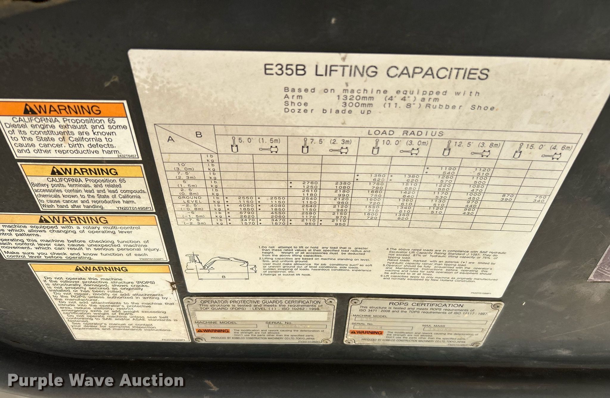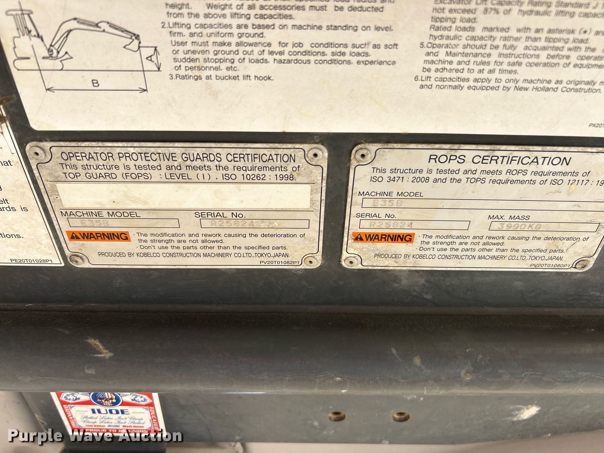 Purple Wave is selling a used Mini Excavator in Missouri. This item is a 2013 New Holland E35B mini excavator with the following: Hours: 4,205 on meter, Serial: NDTN63886
