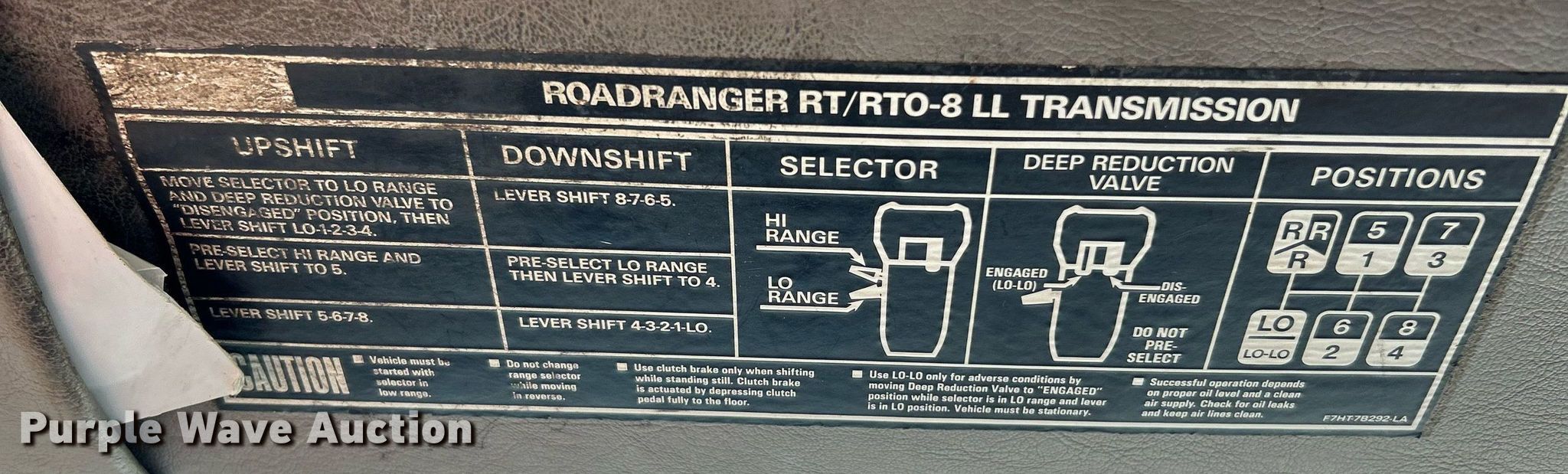 1999 Sterling L8511 dump truck. Miles: 871,626 on odometer, VIN: 2FZNDJBB8XAB15738. Engine Caterpillar, Displacement: 7.2L, Cylinders: 6, Fuel type: Diesel. Transmission Eaton Fuller 8LL, Manual, Speed: 10. Chassis Axles: Tandem, Differential lock: Inter-axle, Suspension: Spring over walking beam, Brakes: Air, PTO. Interior AC, Heat, Heated mirrors, Cruise control. Features Dump bed 15' 6" L x 96" W, Side height: 36", Side board height: 7", Bed type: Steel, Roll tarp, Ram: Single, End gate: Air operated. Tires Front: 315/80R22.5, Rear: 11R22.5. Notes Engine issues, oil leak. Illinois title. Title distribution may be delayed up to 14 days from verification of funds. Big Wheel National Trucking Inc. East St. Louis, IL 62205