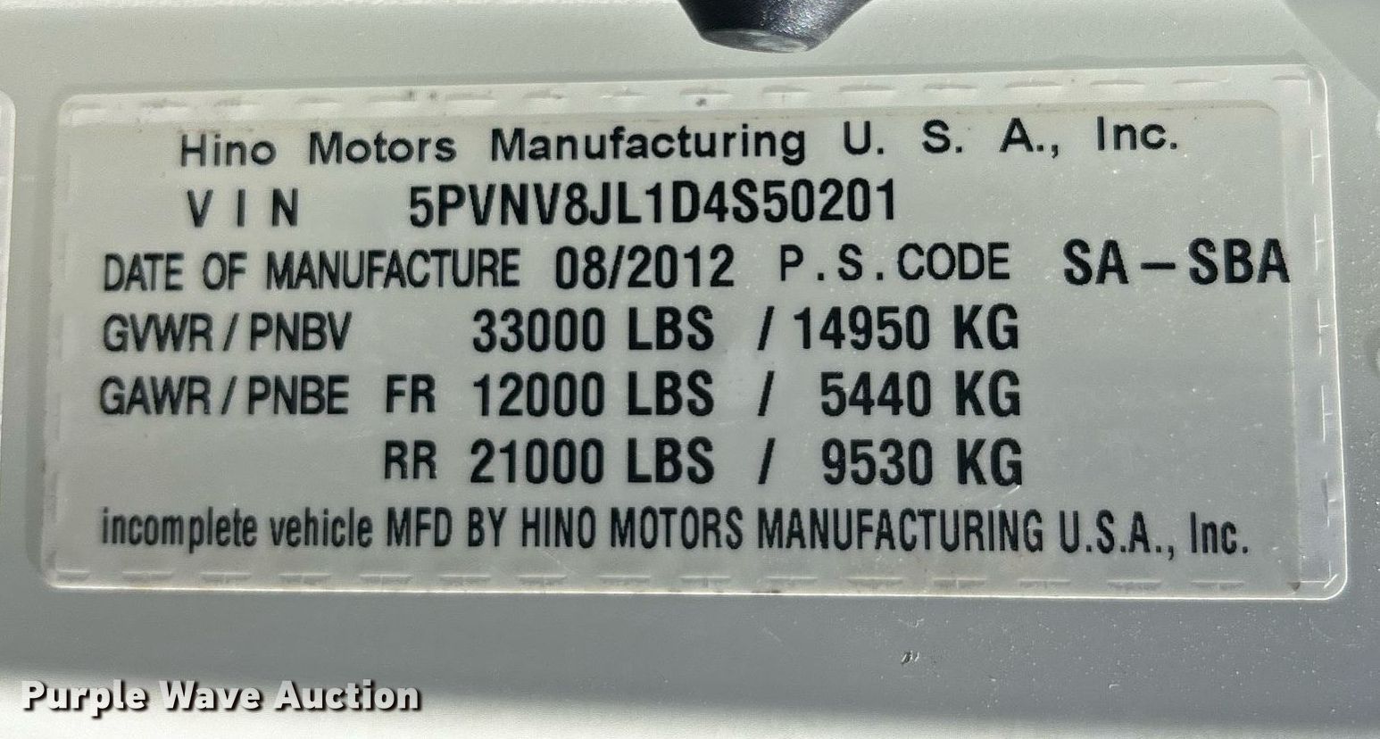 Purple Wave is selling a used Service Truck in Missouri. This item is a 2013 Hino 338 utility / service truck with the following: Miles: 52,345 on odometer, VIN: 5PVNV8JL1D4S50201