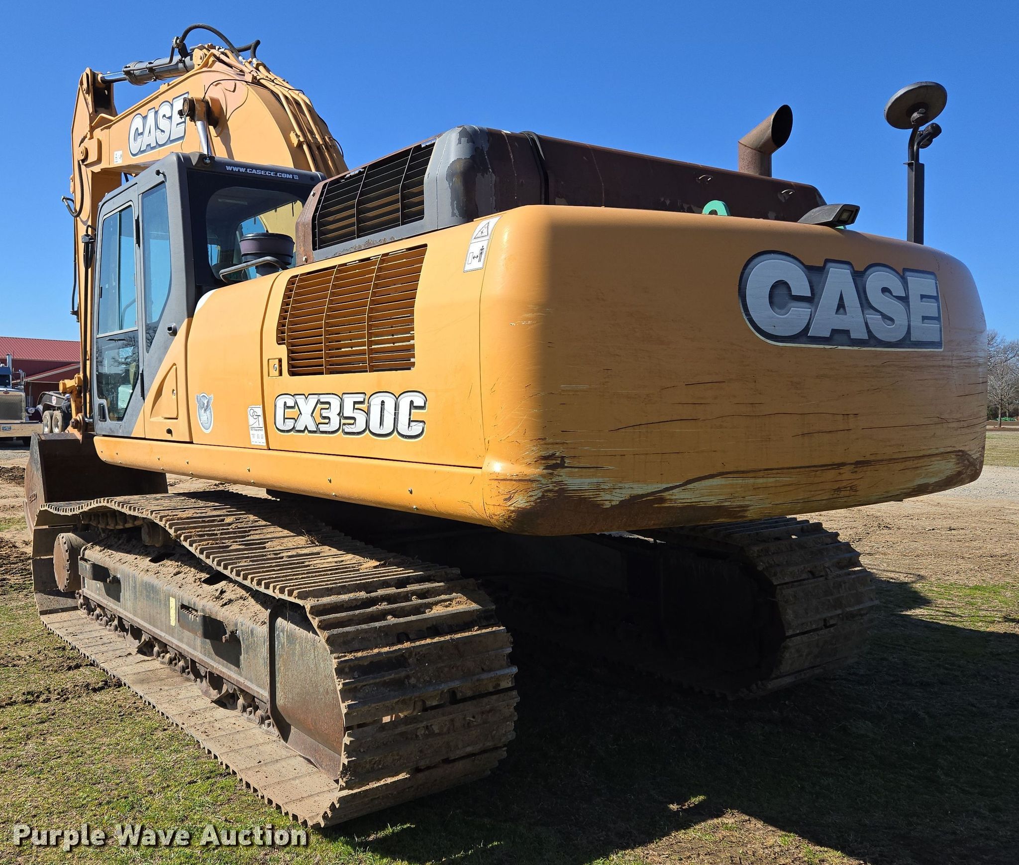 Purple Wave is selling a used Hydraulic Excavator in Oklahoma. This item is a 2012 Case CX350C excavator with the following: Hours: 15,649 on meter, Serial: DAC350K6NCSAP1233