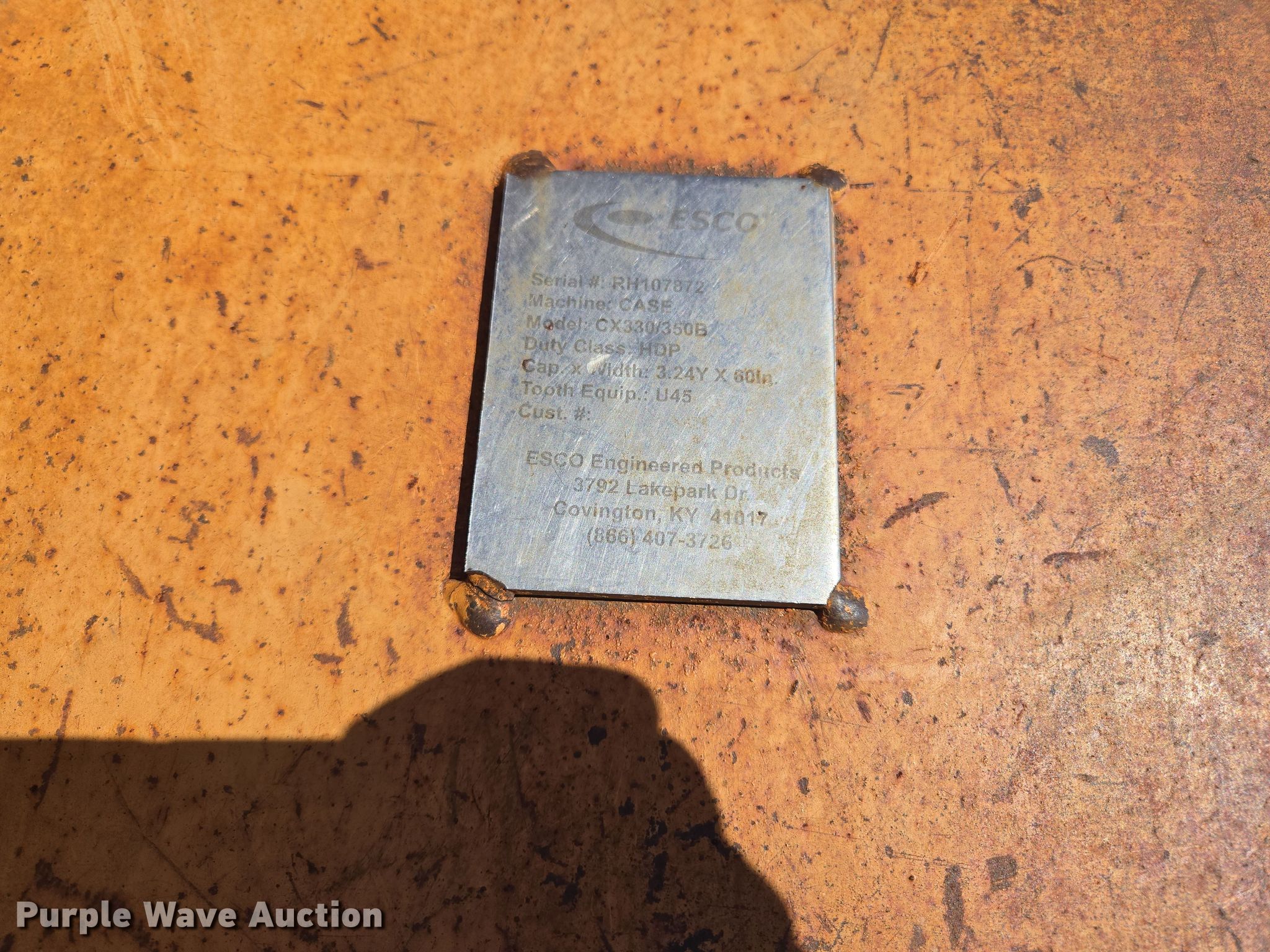 2012 Case CX350C excavator. Hours: 15,649 on meter, Serial: DAC350K6NCSAP1233. Engine Isuzu AL-6HK1X, Displacement: 7.790L, Cylinders: 6, Fuel type: Diesel. Transmission Hydrostatic, Two speed travel. Operators station Enclosed cab, AC, Heat, Backup camera. Features Counter weights, Boom Standard, Stick Stick length: 12' 8", Bucket Esco, Width: 60", Teeth: 6. Tracks Width: 32", Steel, Grouser pads: Triple. Notes DPF deleted. S&P Clearing and Energy Services. Bennington, OK 74723