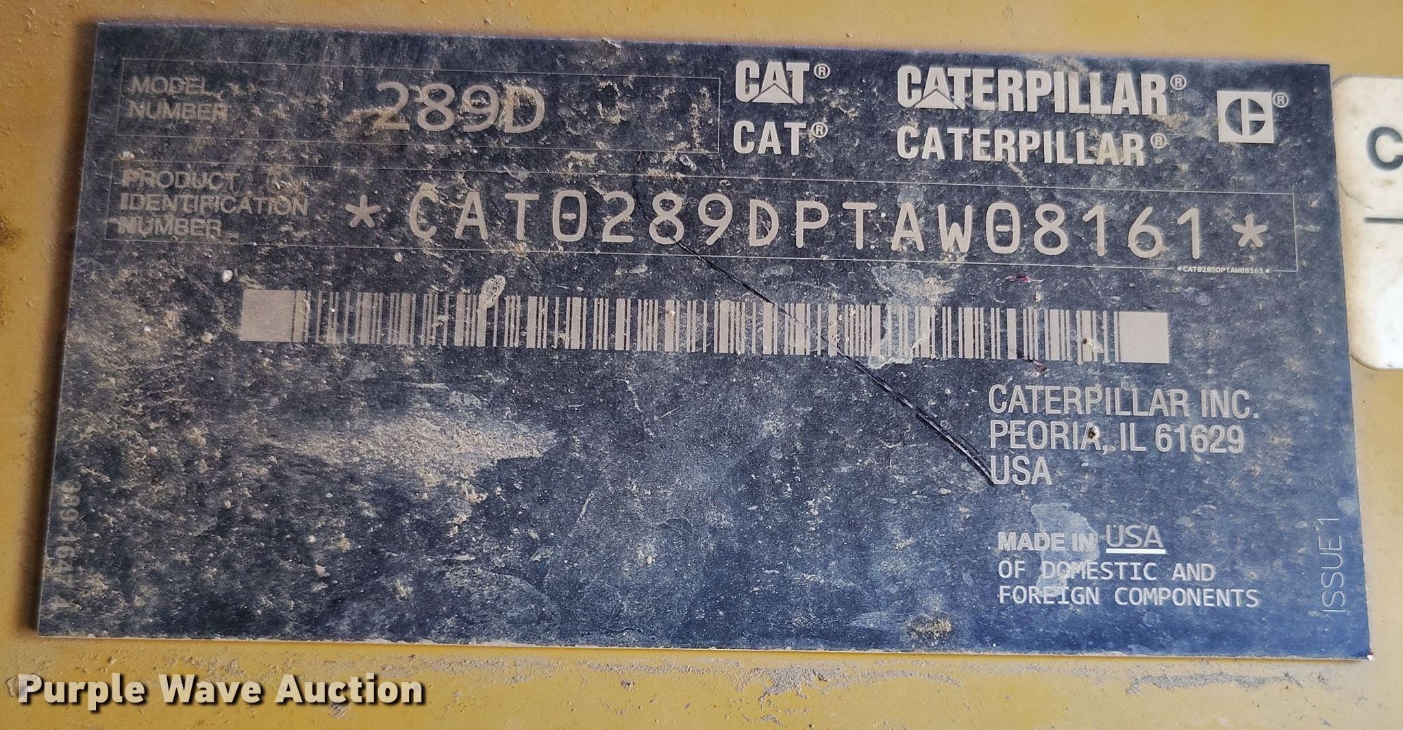 Purple Wave is selling a used Tracked Skid Steer Loader in Colorado. This item is a 2017 Caterpillar 289D tracked skid steer loader with the following: Hours: 6,998 on meter, Serial: CAT0289DPTAW08161, Unit #: 53.134L