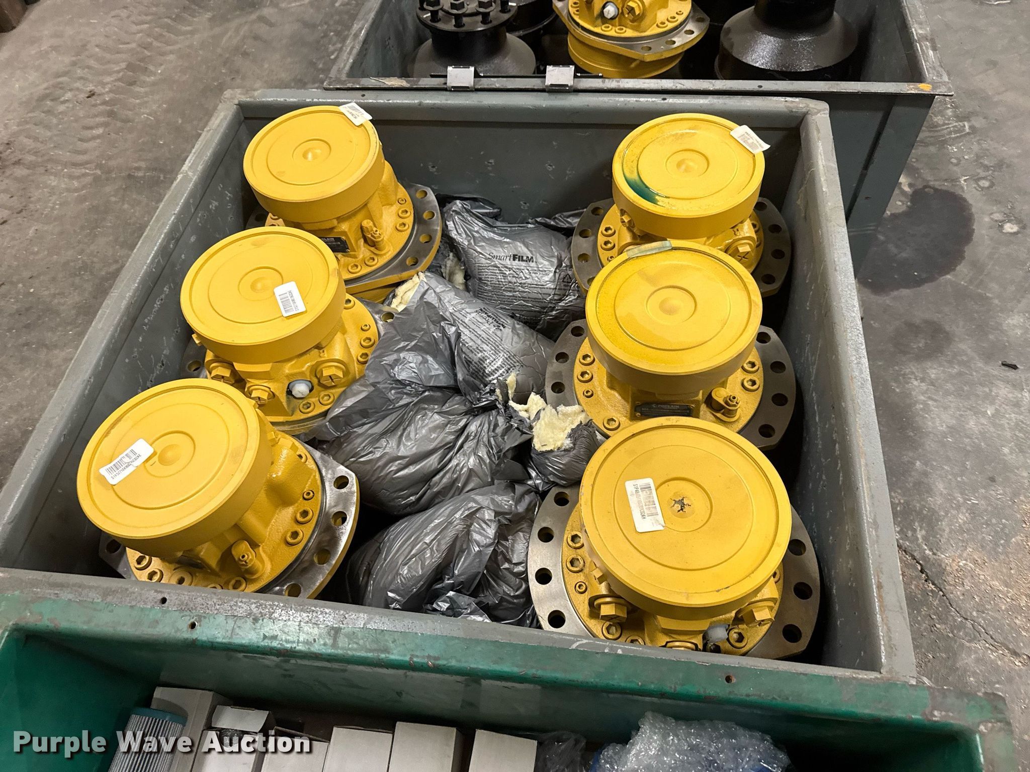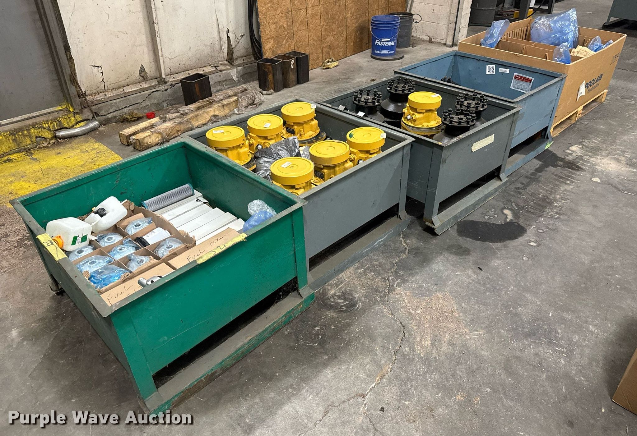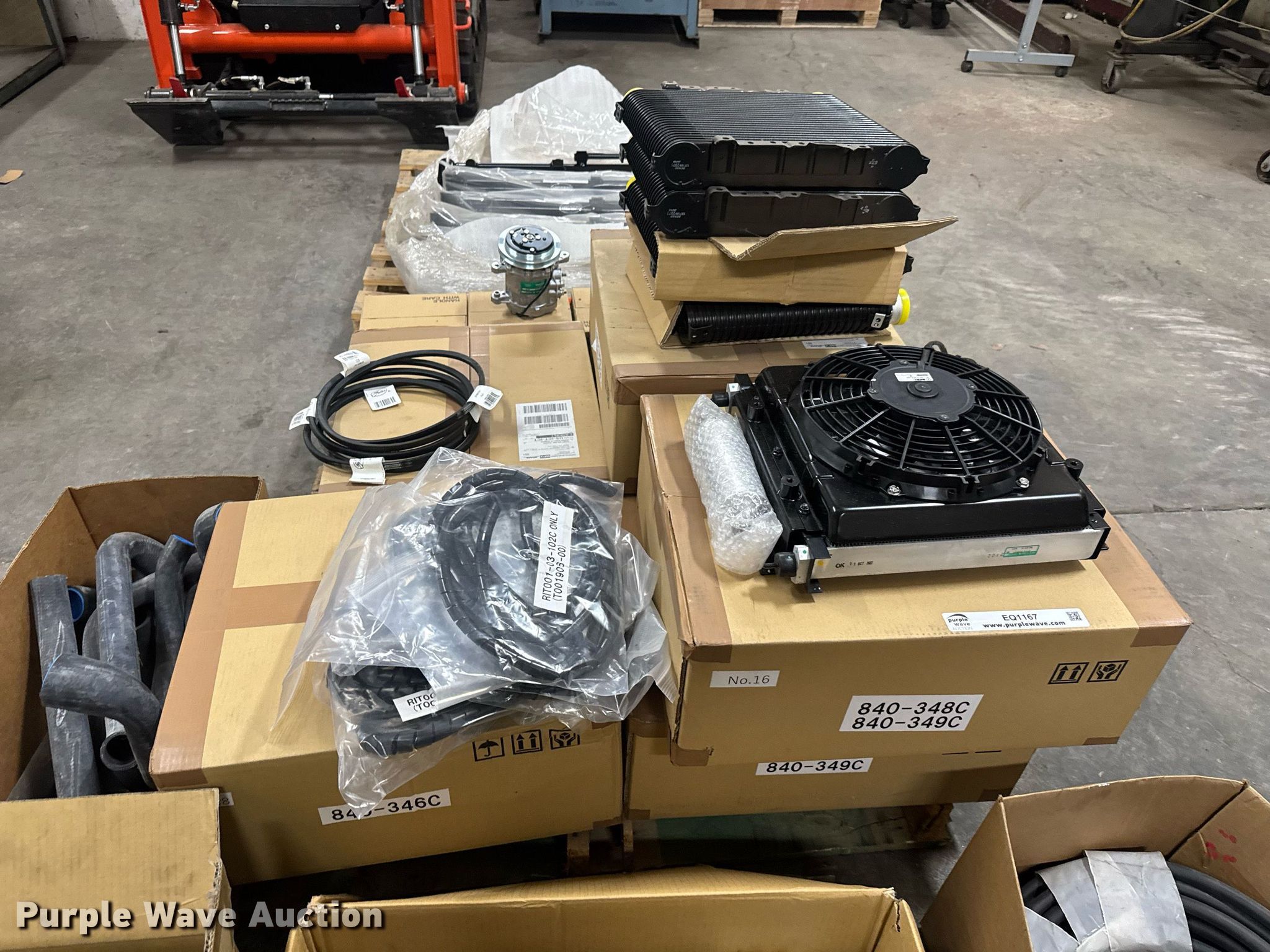 Purple Wave is selling a used Skid Steer Attach. in Kansas. This item is a Skid steer parts with the following: (11) two speed drive motors, (5) hydrostat pumps, (6) condensers, (4) compressors, (4) intercoolers, Box of AC lines, Weather seal, Radiator hoses, Belts, (6) hydraulic lift cylinders, Fuel filters and more