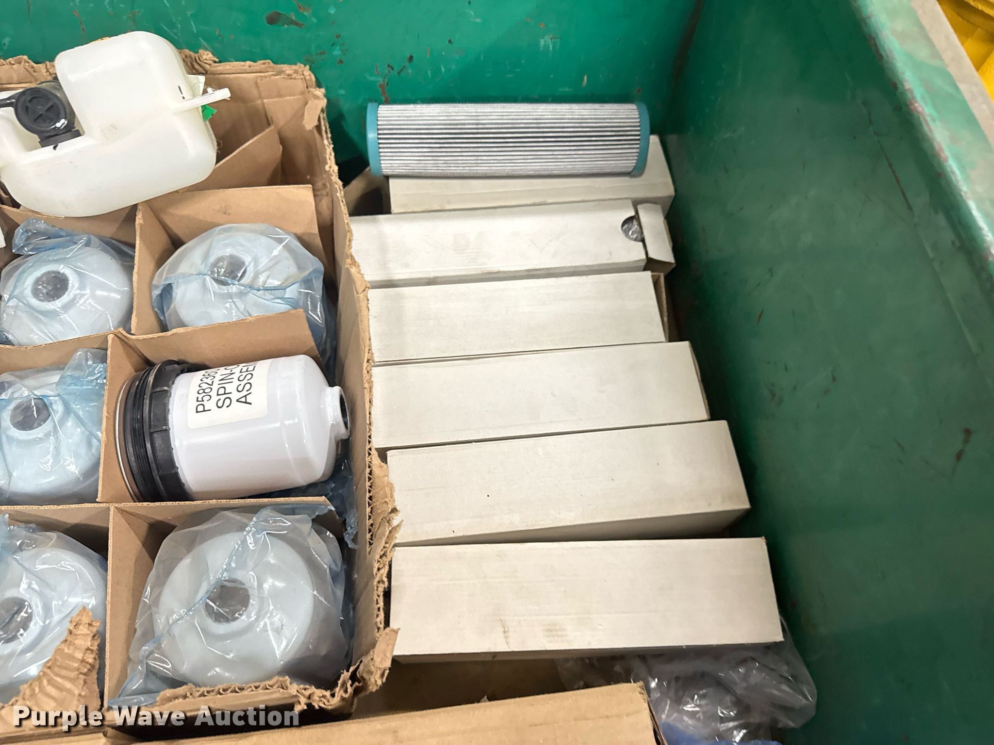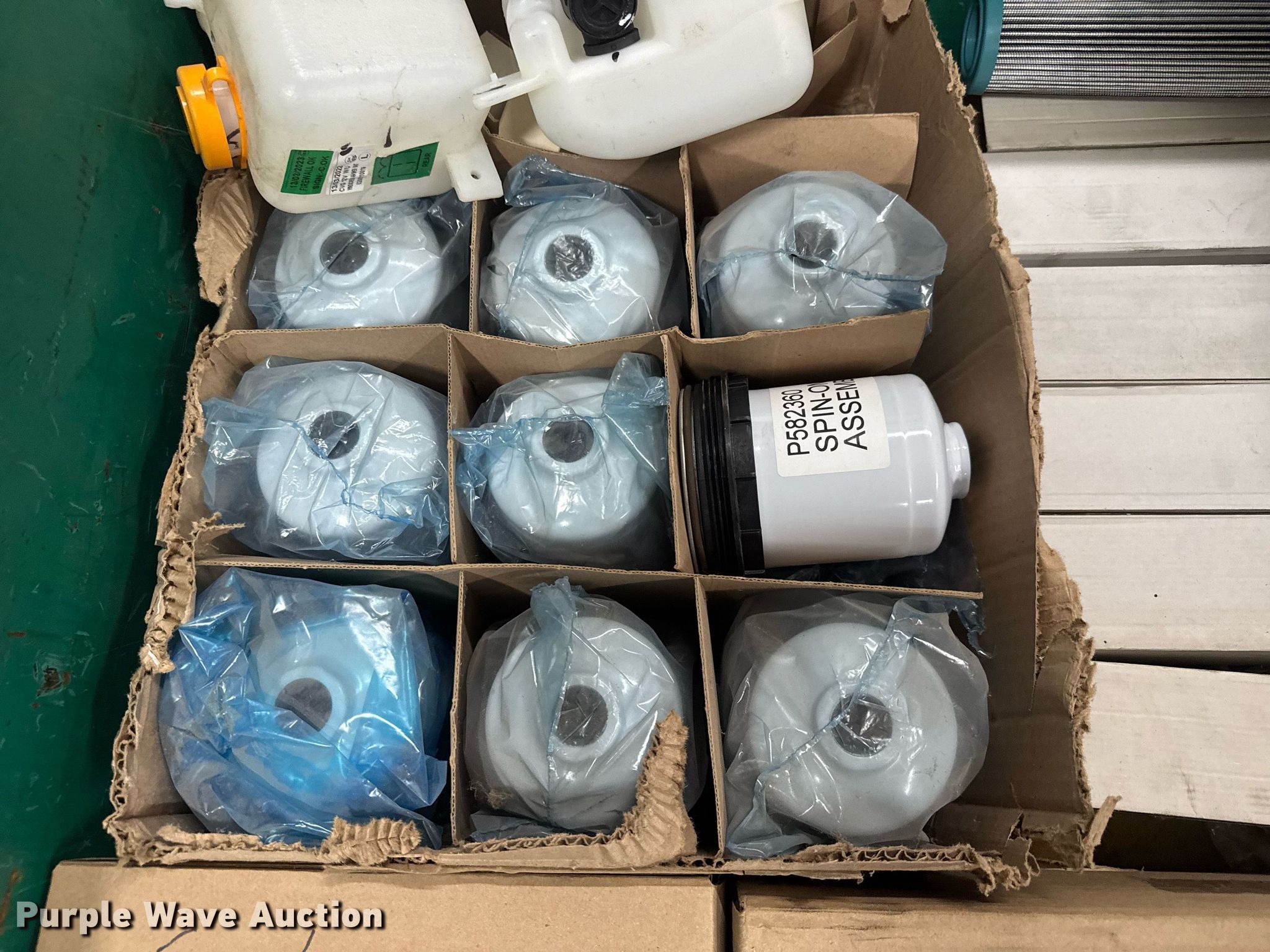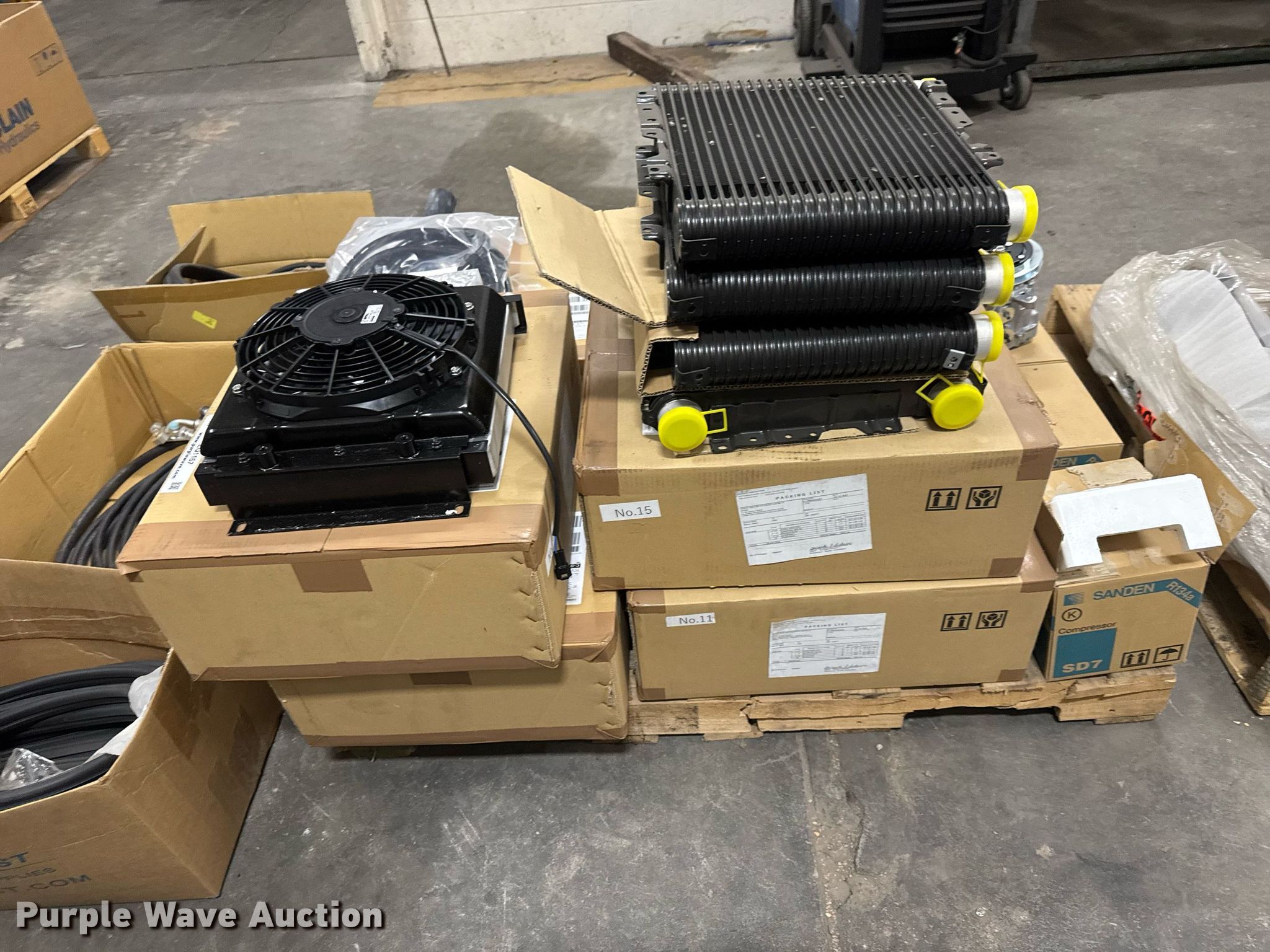 Purple Wave is selling a used Skid Steer Attach. in Kansas. This item is a Skid steer parts with the following: (11) two speed drive motors, (5) hydrostat pumps, (6) condensers, (4) compressors, (4) intercoolers, Box of AC lines, Weather seal, Radiator hoses, Belts, (6) hydraulic lift cylinders, Fuel filters and more