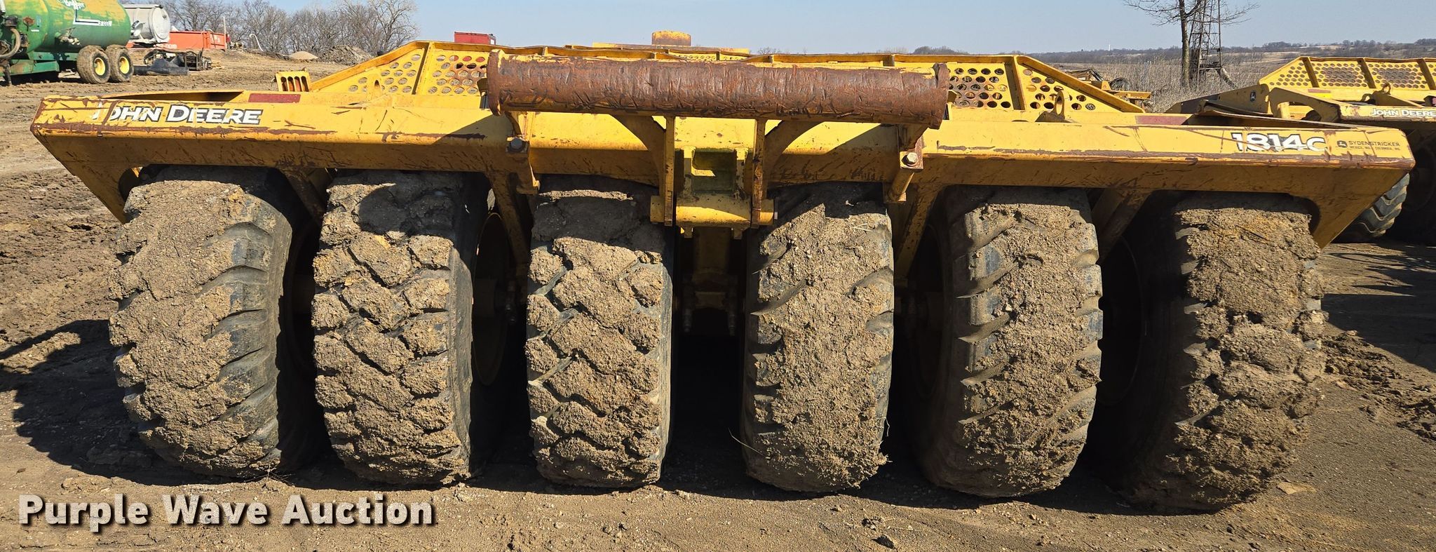 2006 John Deere 1814C scraper. Serial: T81814C060228. Features Bowl capacity: 18 cu.yd., Reversible cutting edge, Hydraulic lift, Rear push block, Hitch: Scraper. Tires Size: 20.5-25. Hardy Holding Group. Hamilton, MO 64644
