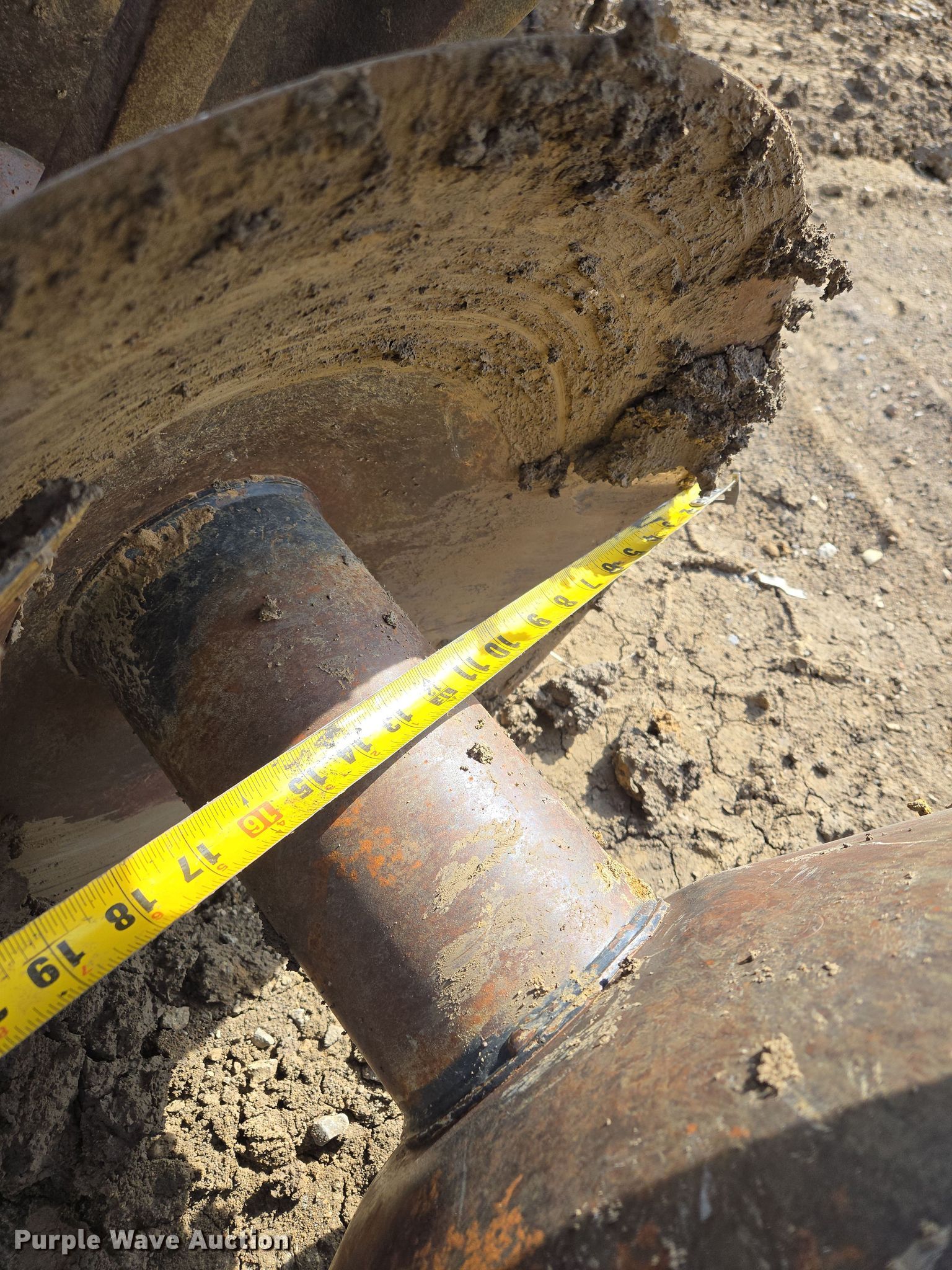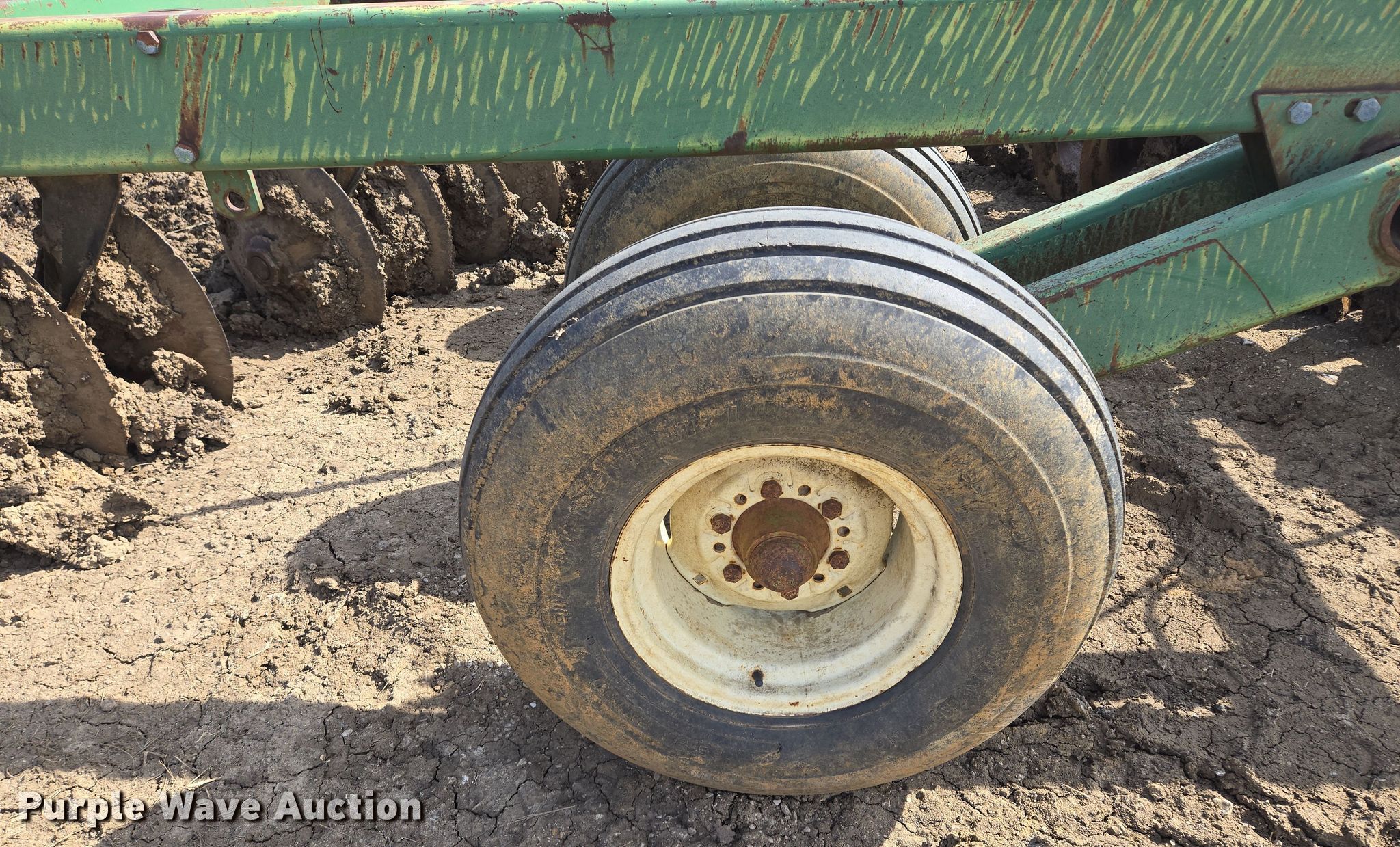 John Deere 355 off-set disk. Overall width: 13', Unit #: 612. Features Front blades Diameter: 24", Spacing: 11", Rear blades Diameter: 22", Spacing: 10", Disk scrapers, Operation Hydraulic lift. Tires Tire size: 11L-14. Hardy Holding Group. Hamilton, MO 64644