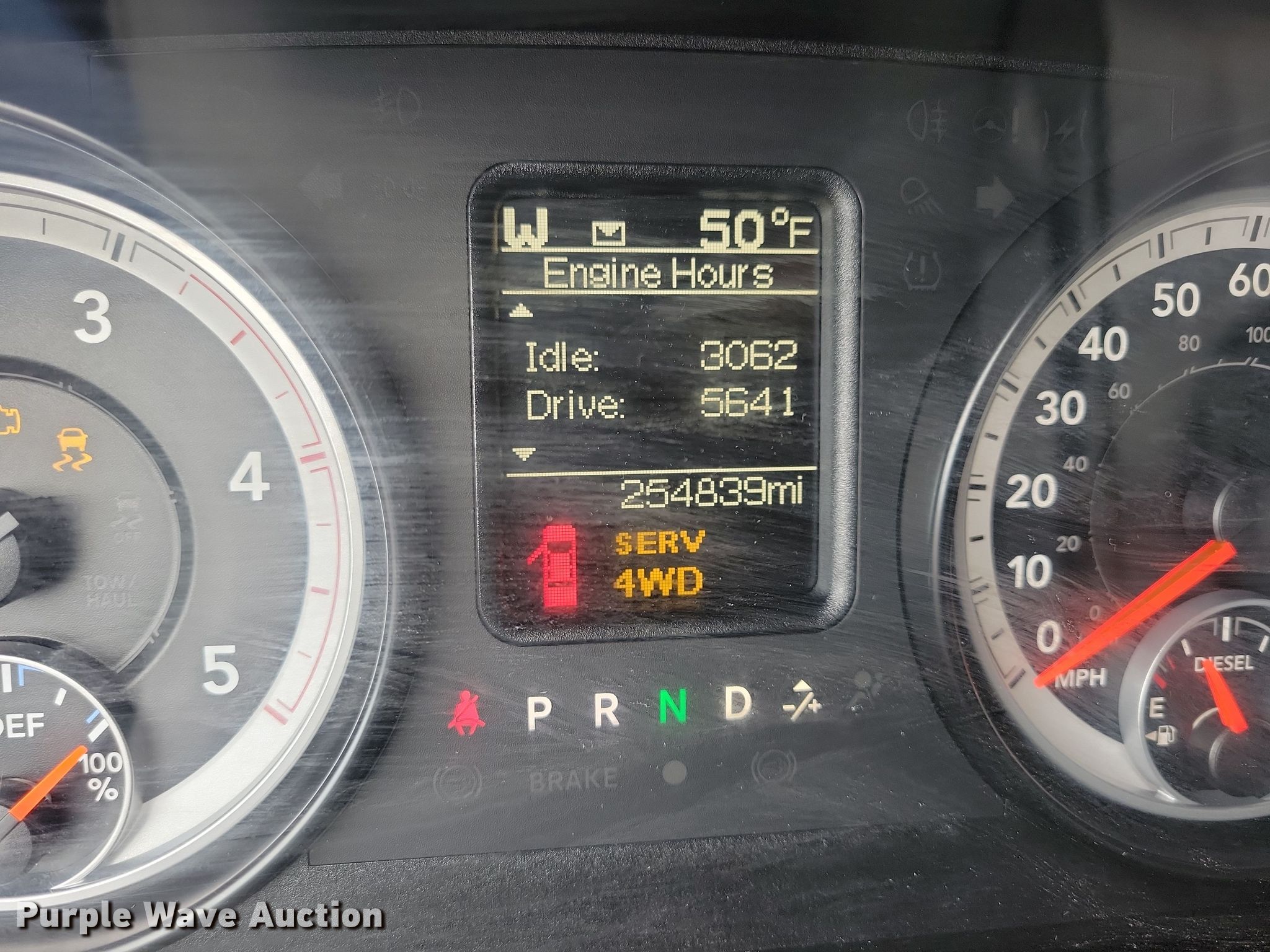 2015 Dodge Ram 5500 Crew Cab dump flatbed truck. Miles: 254,839 on odometer, Hours: 8,703 on meter, Miles: Unknown, VIN: 3C7WRNFL5FG539350. Engine Cummins, Displacement: 6.7L, Cylinders: 6, Fuel type: Diesel. Transmission Automatic. Chassis Four wheel drive, Axles: Single, Suspension: Spring, Brakes: Hydraulic, PTO, GVWR: 19,500 lbs. Interior AC, Heat, Heated mirrors, Power windows, Power locks, Cruise control, Auxiliary controls, Brake controller. Features Dump flatbed Knapheide PVMX-113C, Serial: 20150618-0416592, 11' 3" L x 96" W, Ram: Single, Gooseneck. Tires Size: 225/70R19.5. Notes Engine has been replaced, Dash warning indicator: Check engine, Traction control, Service four wheel drive, Drive shaft disconnected, Transfer case issues, blown , Non-operational unit Unit must be towed or hauled. Iowa title. Title distribution may be delayed up to 14 days from verification of funds. Country Landscapes, Inc.. Ames, IA 50010